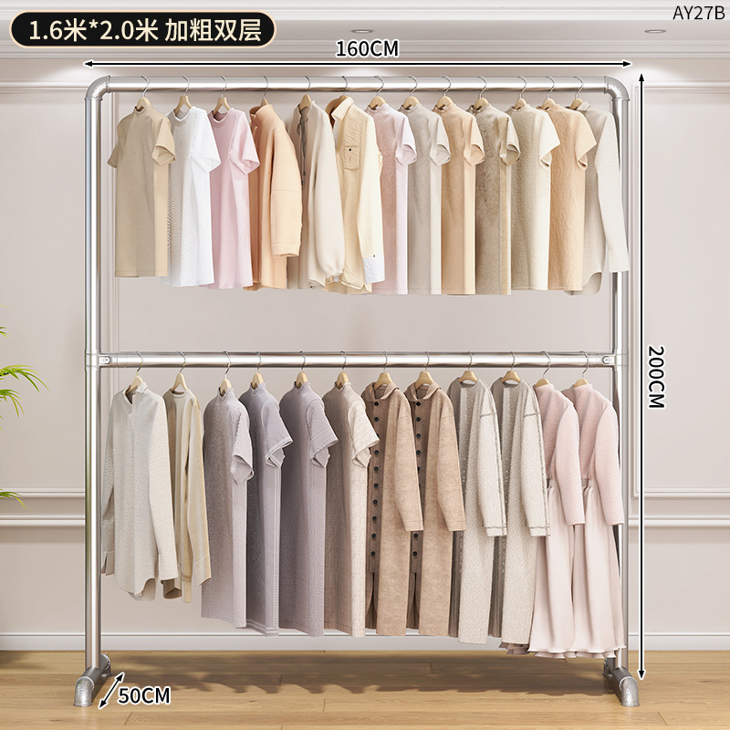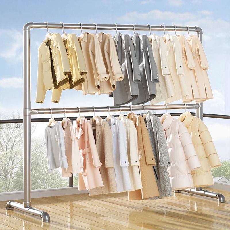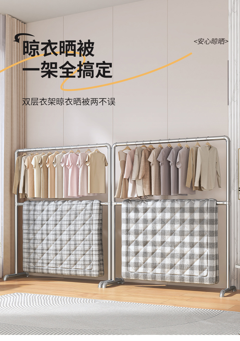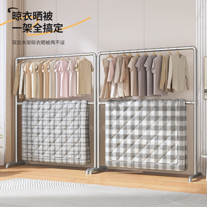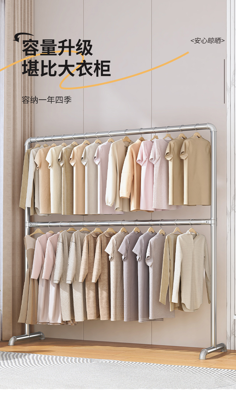 晾衣架双层双杆落地简易落地立式衣架室内宿舍家用阳台卧室挂衣架