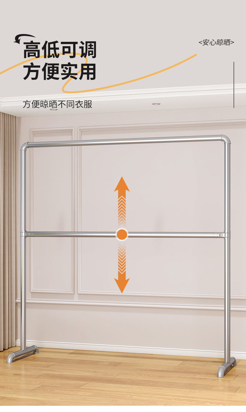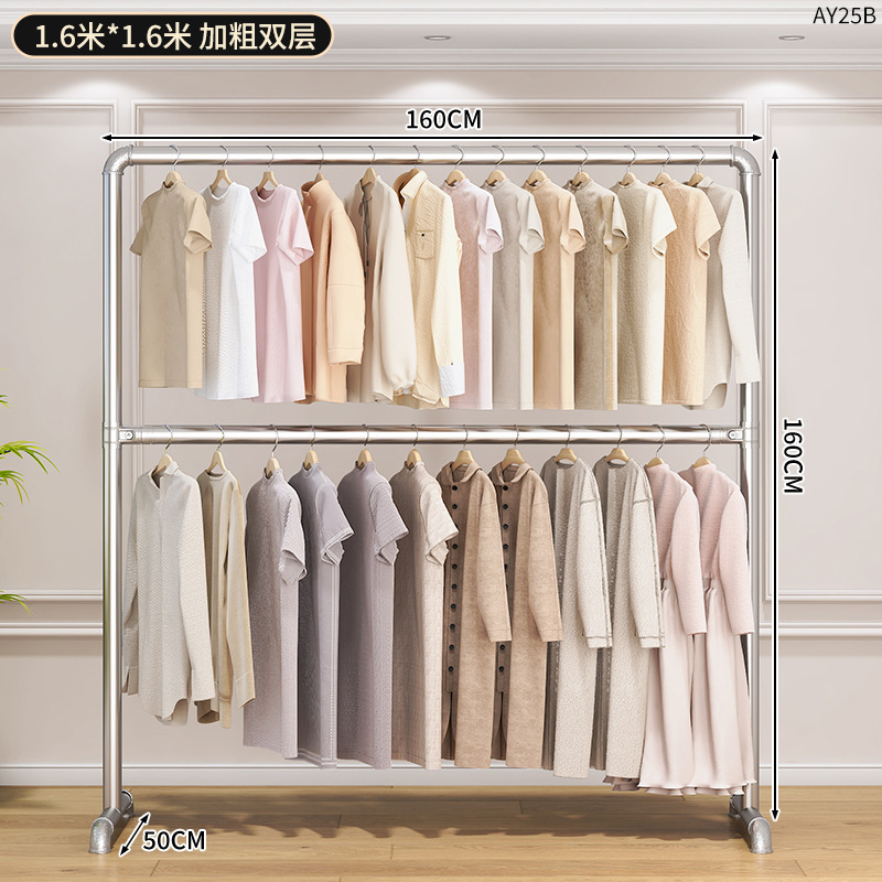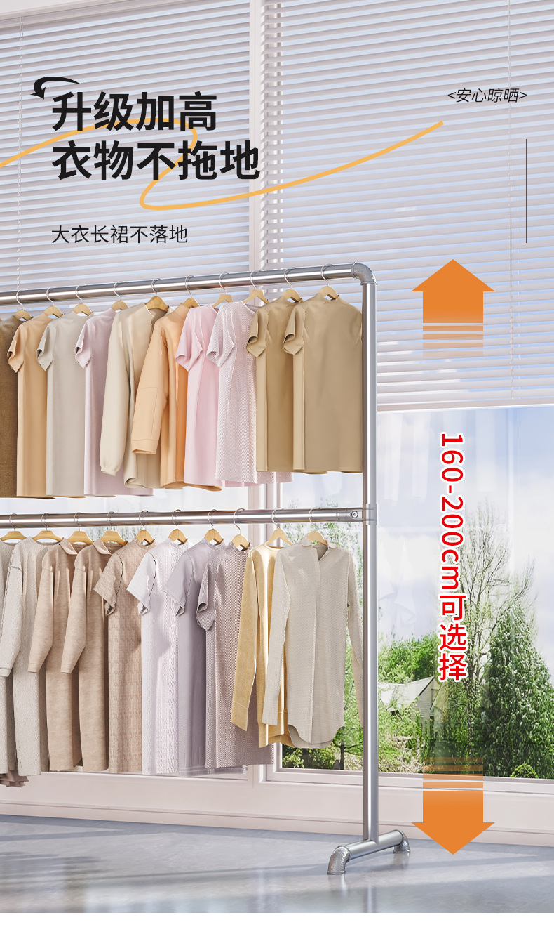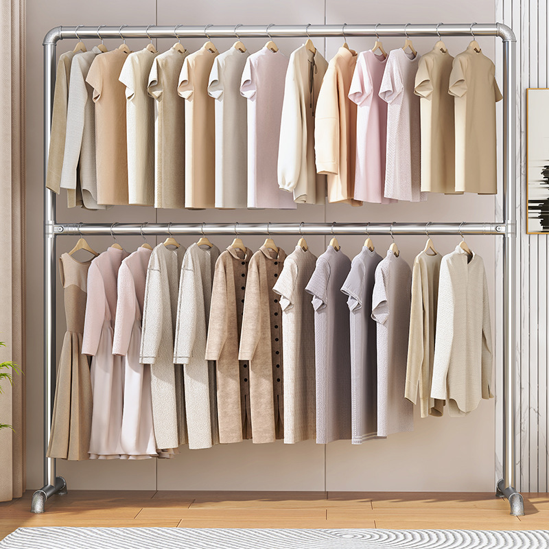 晾衣架双层双杆落地简易落地立式衣架室内宿舍家用阳台卧室挂衣架