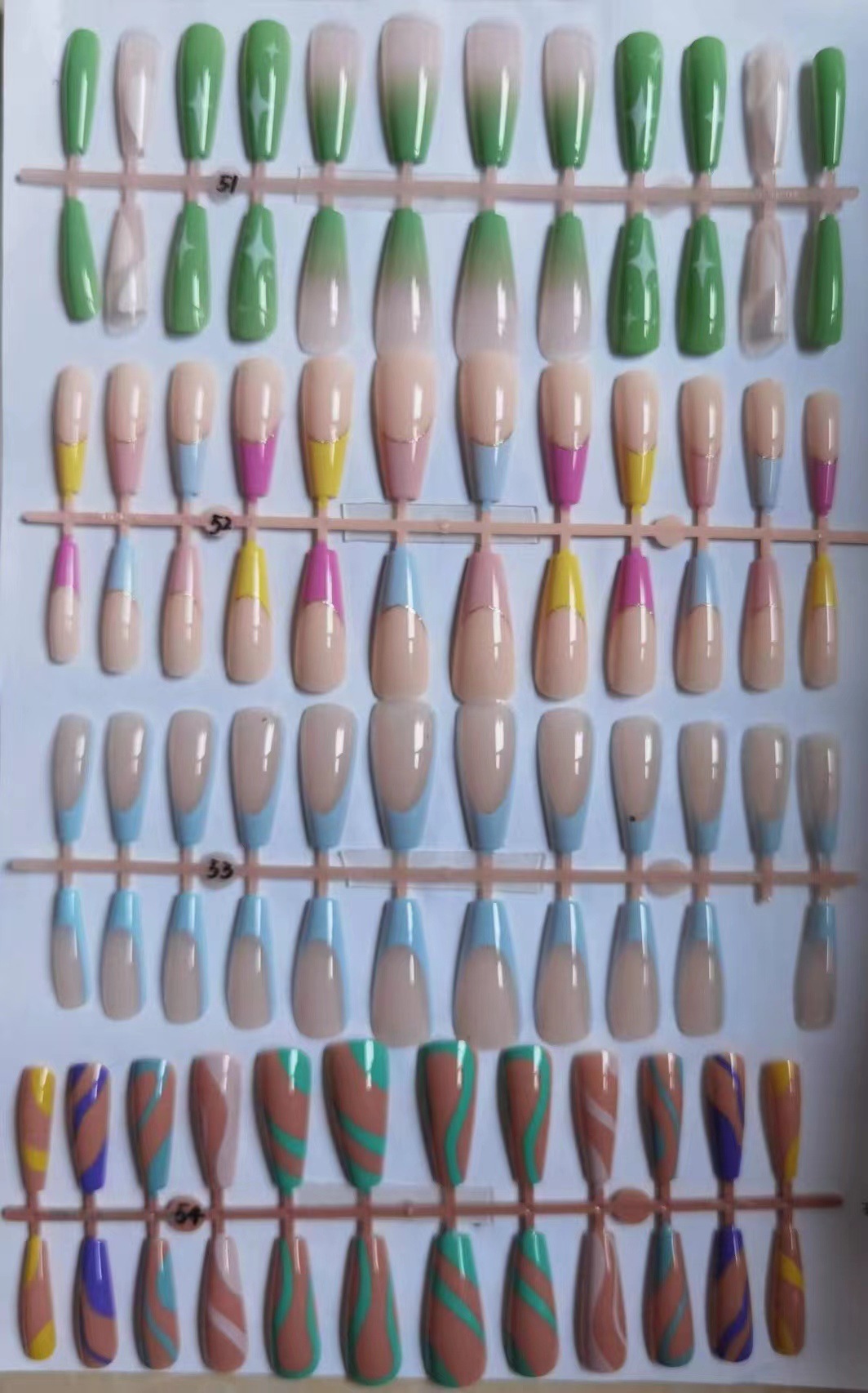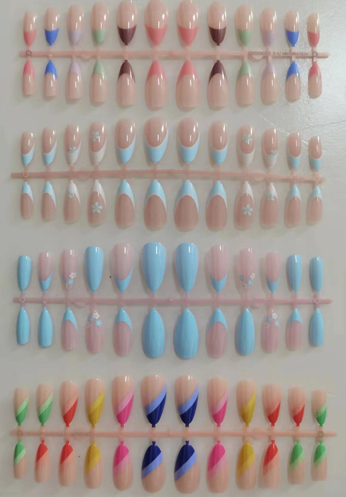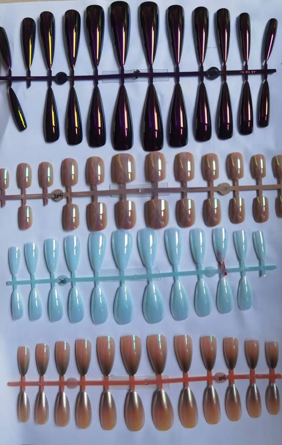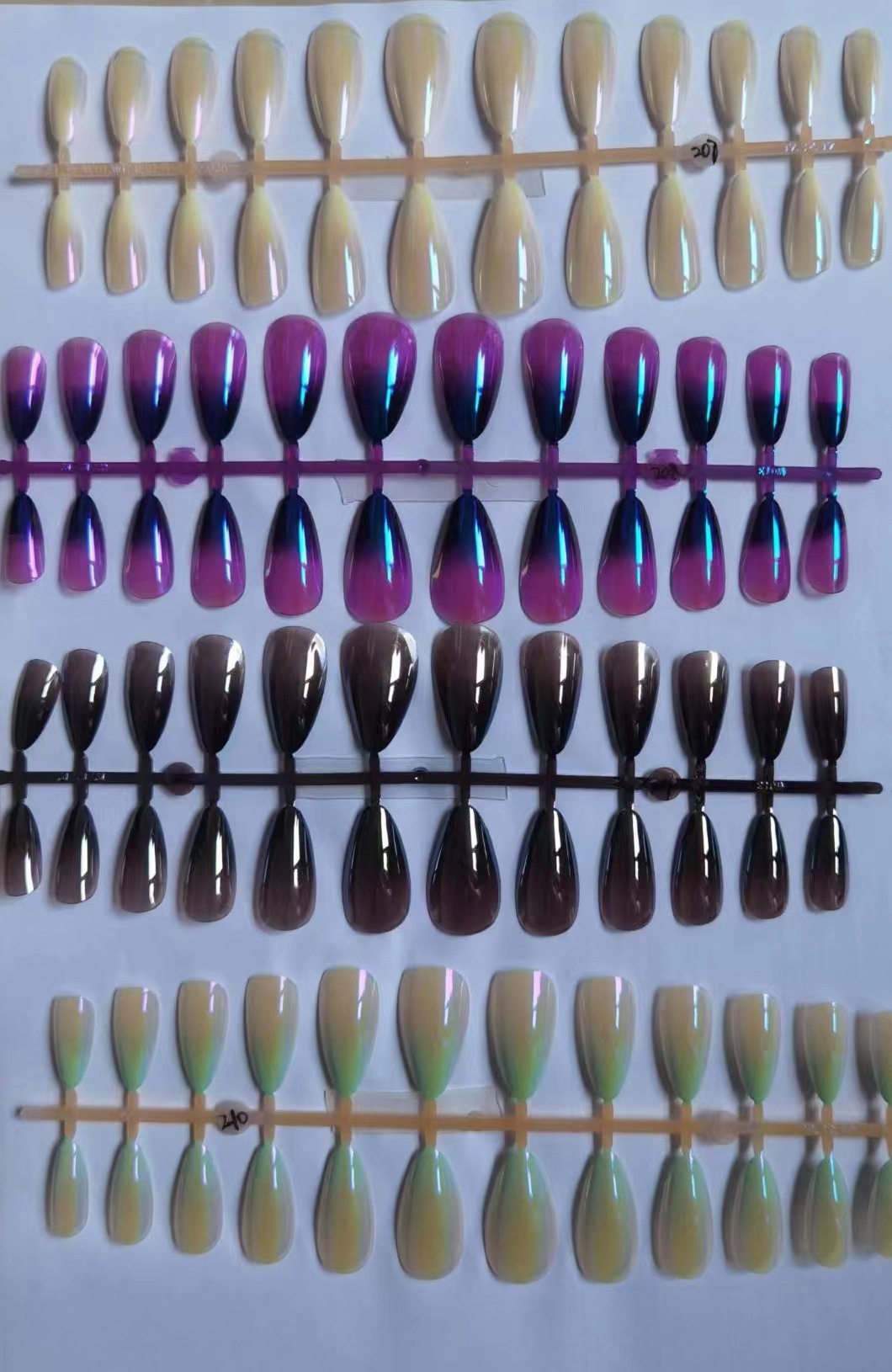 彩色甲片穿戴甲美甲甲片 定制批发蝴蝶印花贴钻渐变七彩甲片