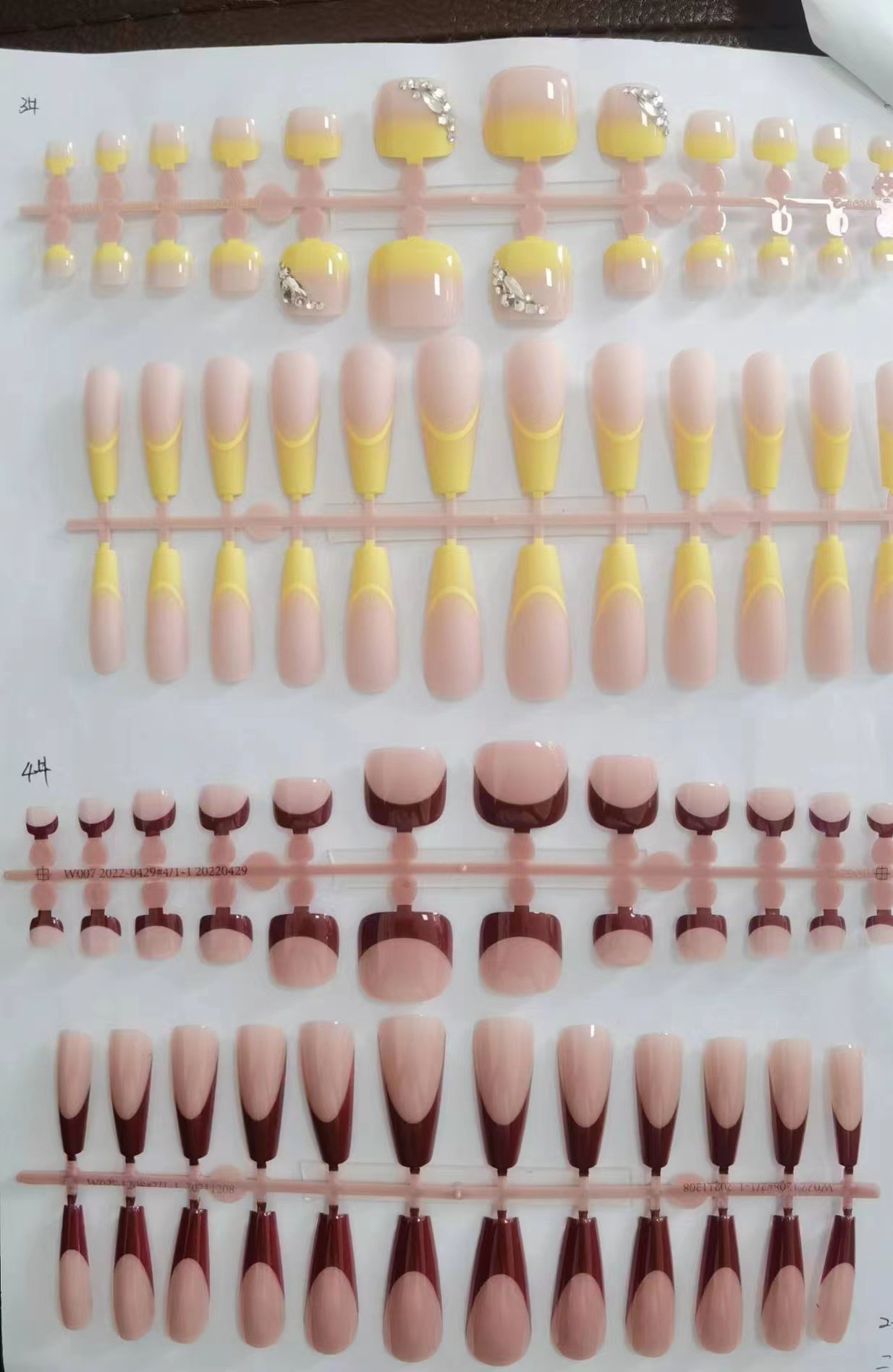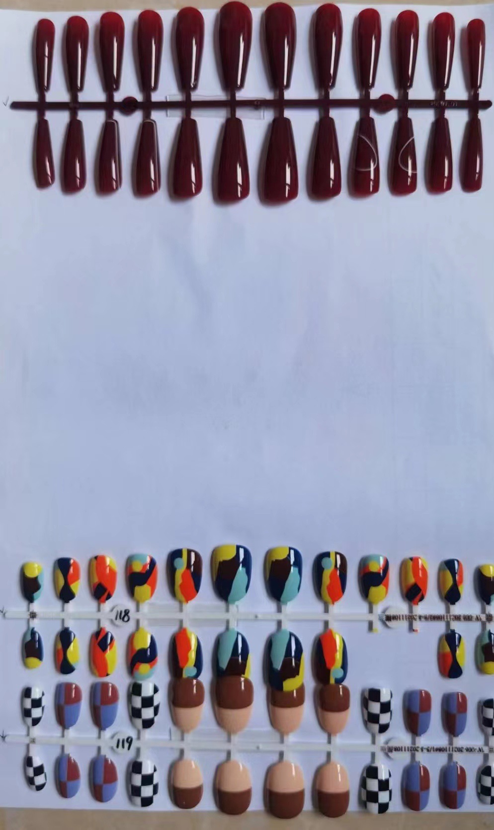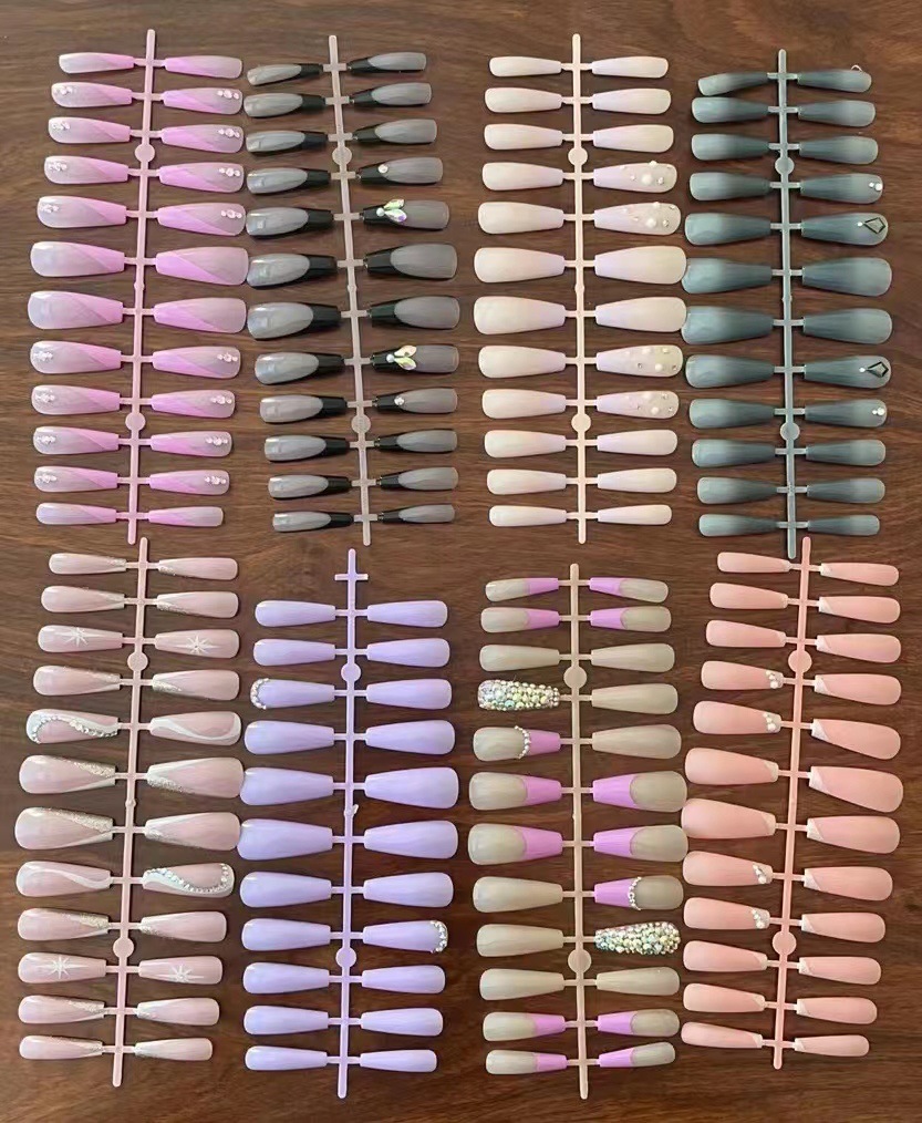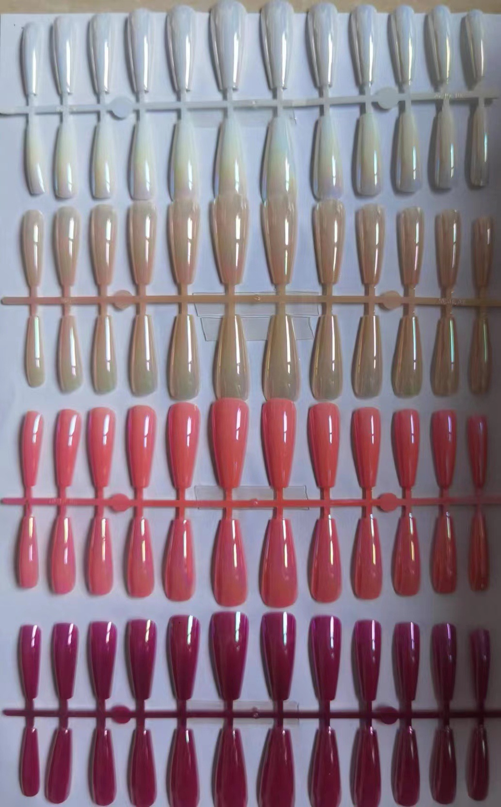 彩色甲片穿戴甲美甲甲片 定制批发蝴蝶印花贴钻渐变七彩甲片