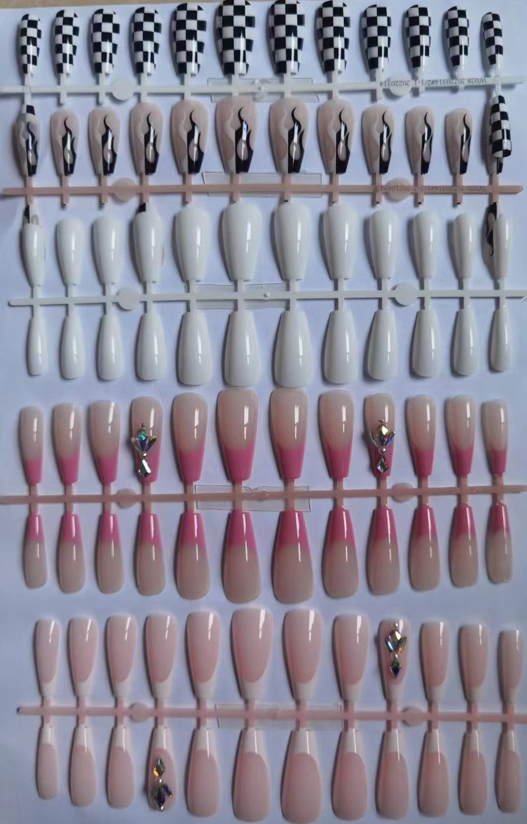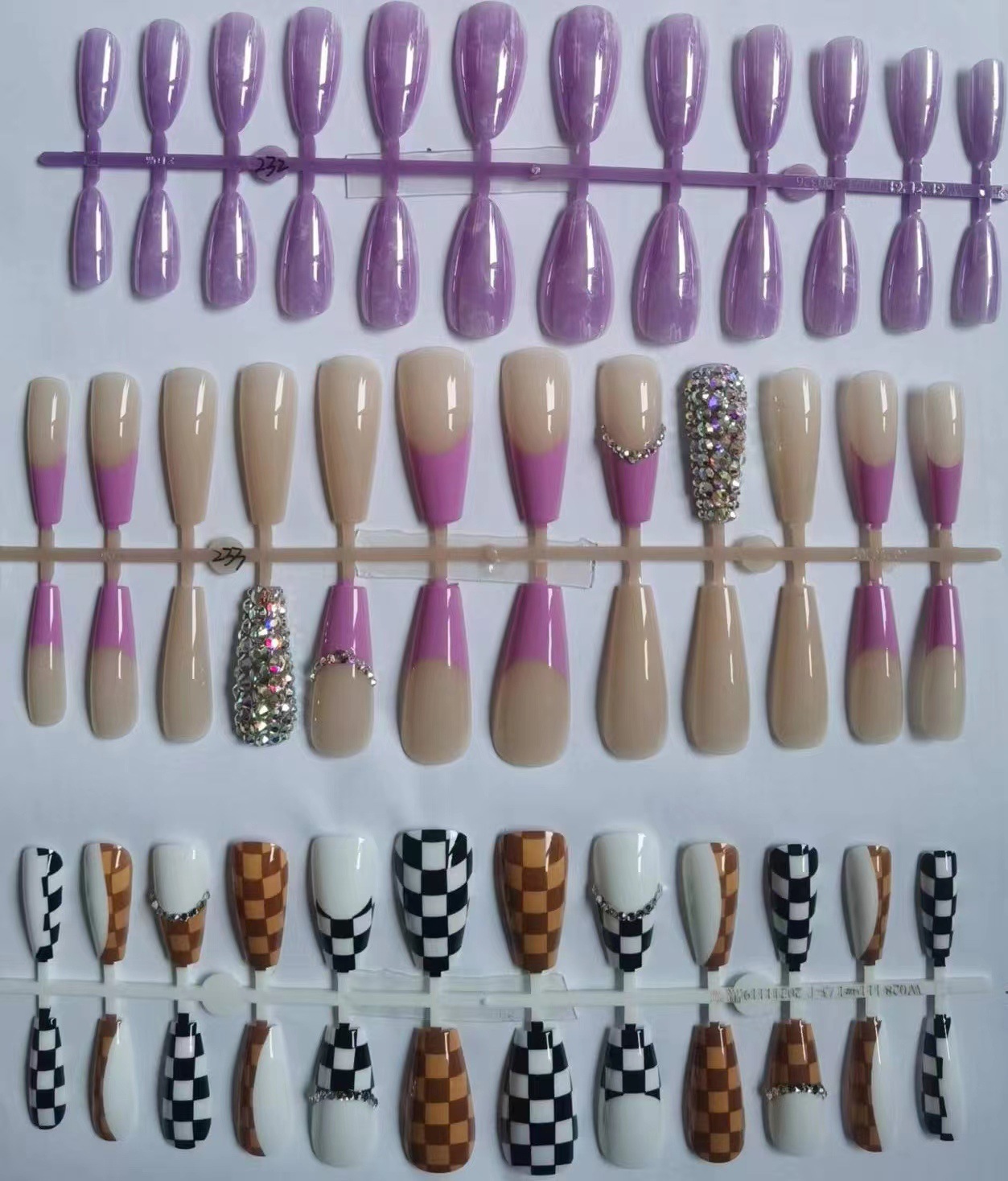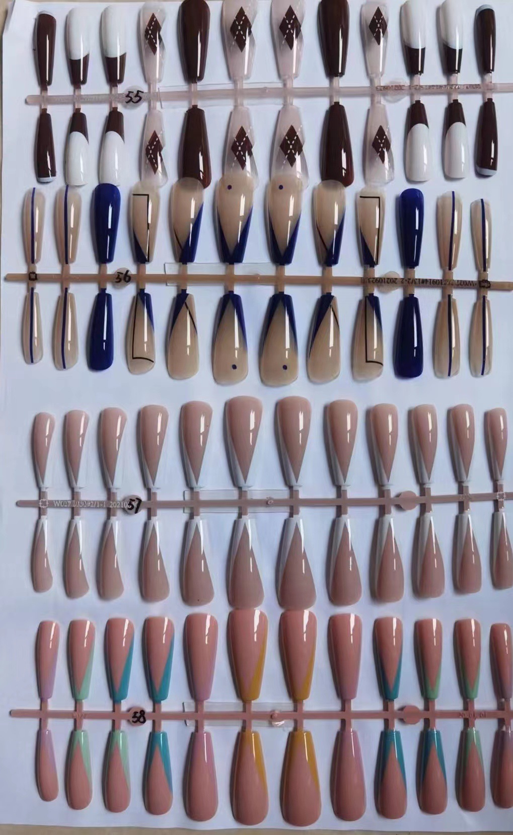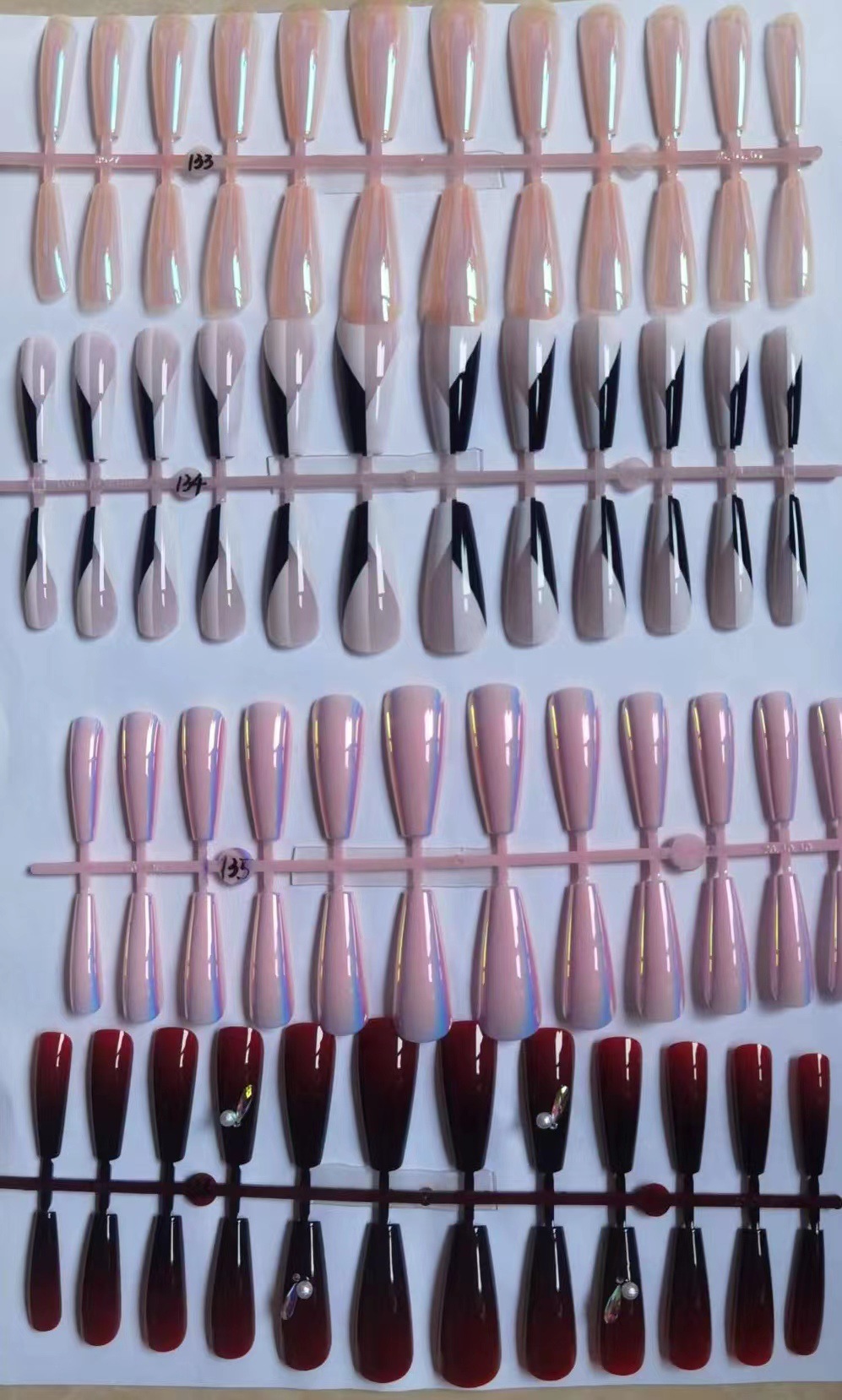 彩色甲片穿戴甲美甲甲片 定制批发蝴蝶印花贴钻渐变七彩甲片