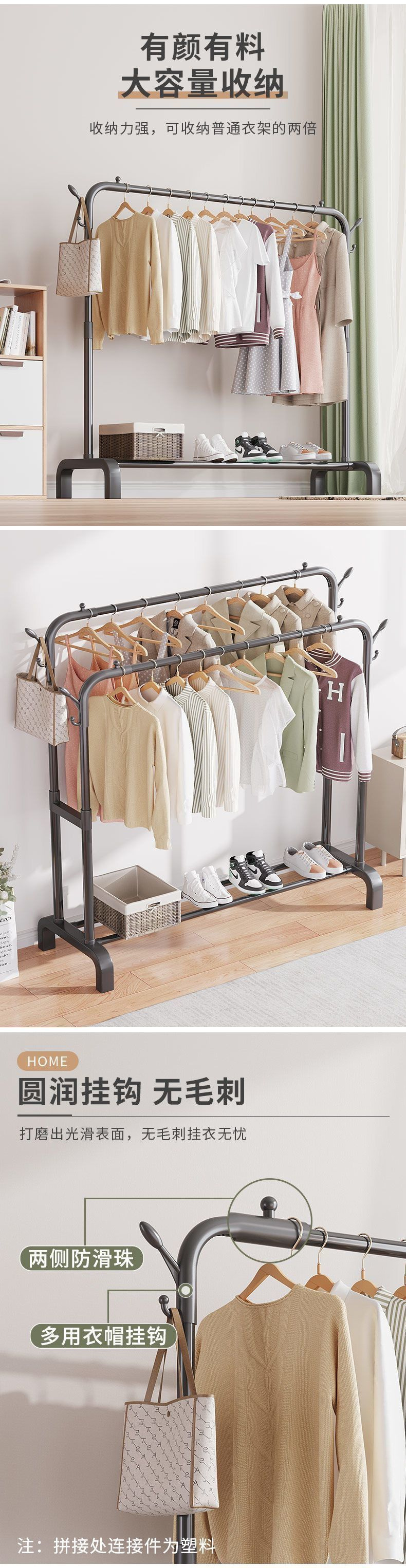 衣帽架落地家用简易晾衣架立式宿舍学生挂衣结实卧室阳台鞋架一好