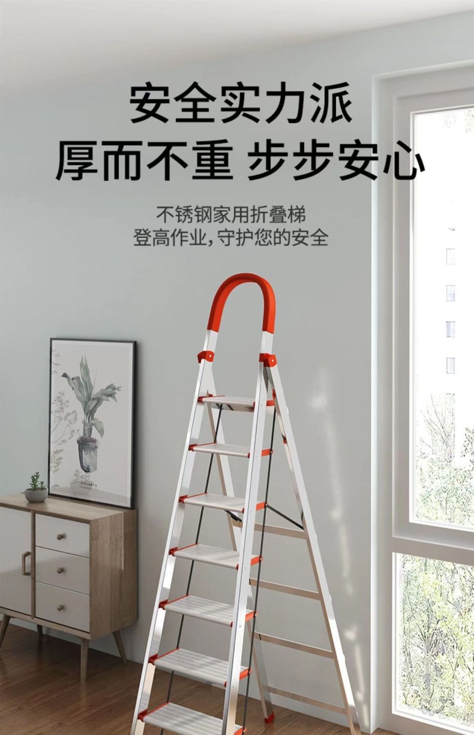 室内人字梯多功能加厚工程碳钢七八步梯子家用折叠2米万能阅之宅