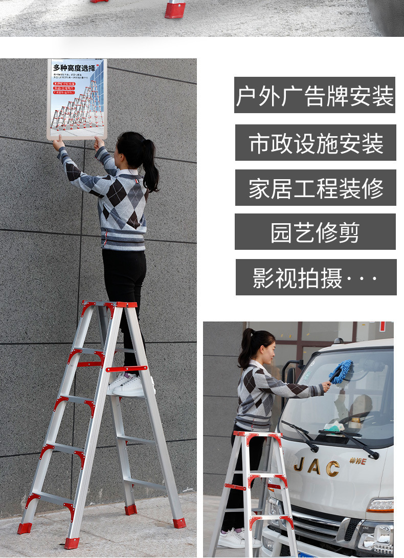 人字楼梯家用加厚多功能铝合金梯户外园林折叠便携人字梯一件批发