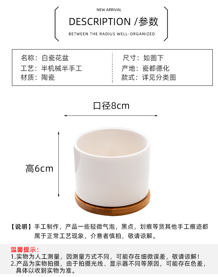 亚马逊白瓷多肉花盆现代家居园艺文案陶瓷小盆跨境简约多肉种植盆