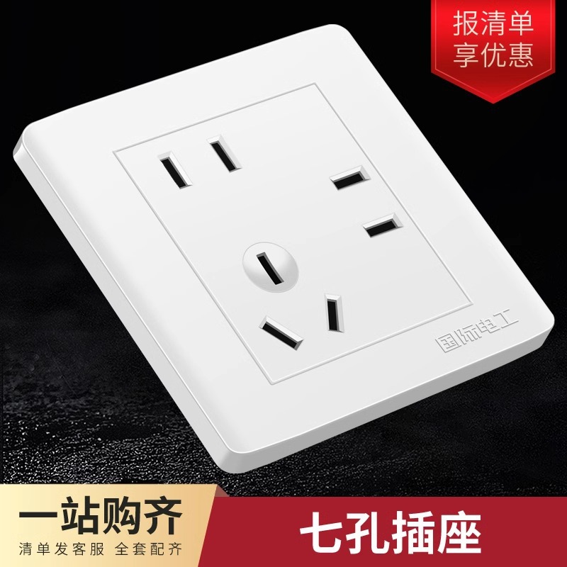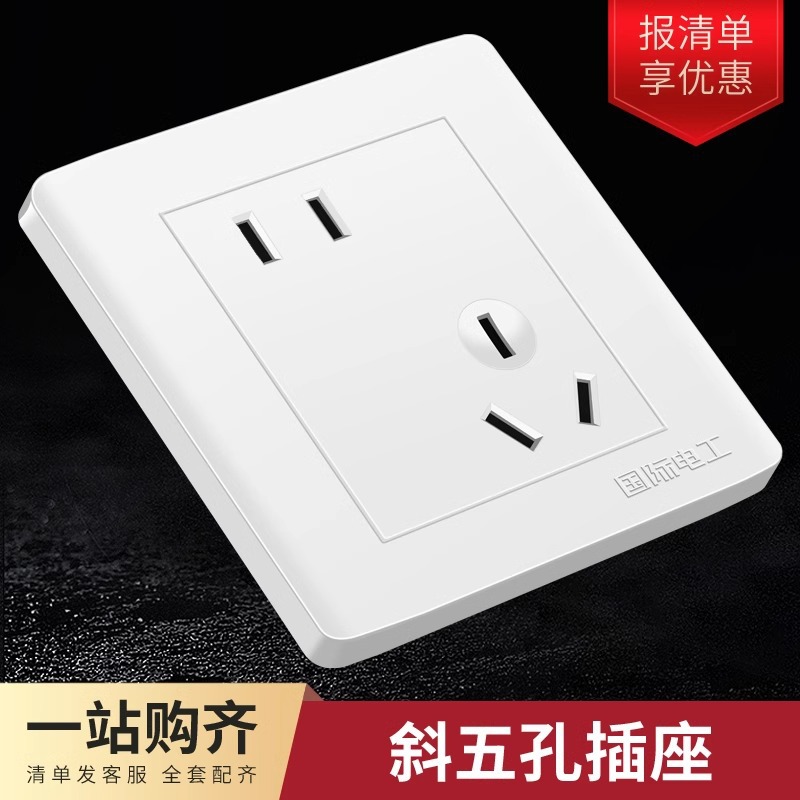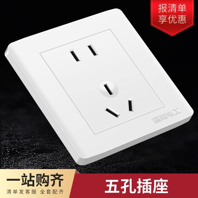 国际电工白色墙壁工程开关插座面板 一开5孔16A电源插座开关面板