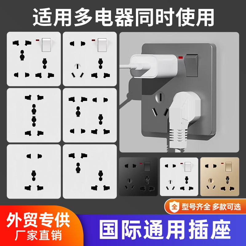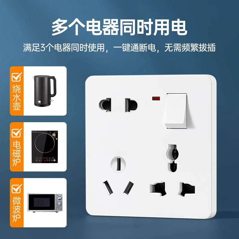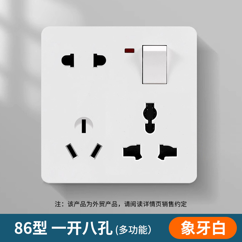 际电工暗装86一开八孔插座面板明装多功能1开8孔带开关六孔十孔