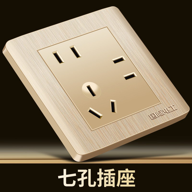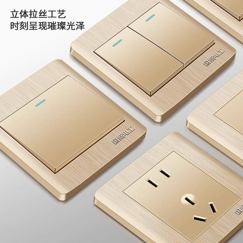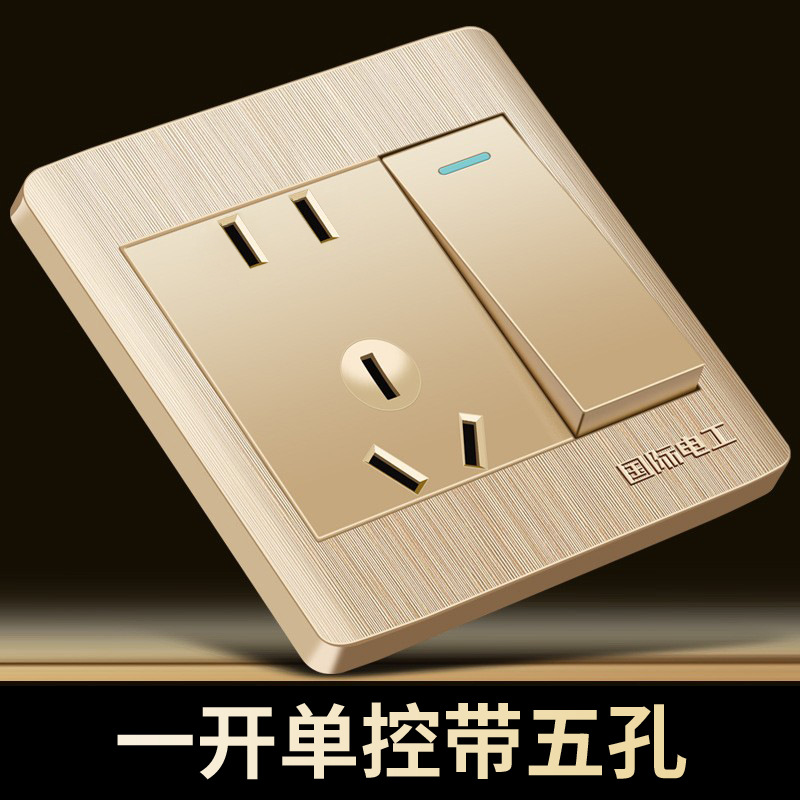 国际电工香槟金墙壁开关插座面板SUB五孔一开家用5孔插座开关面板