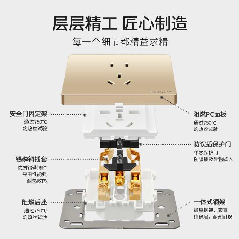 国际电工开关插座面板86型暗装墙壁家用一开带5五孔多孔USB玫瑰金