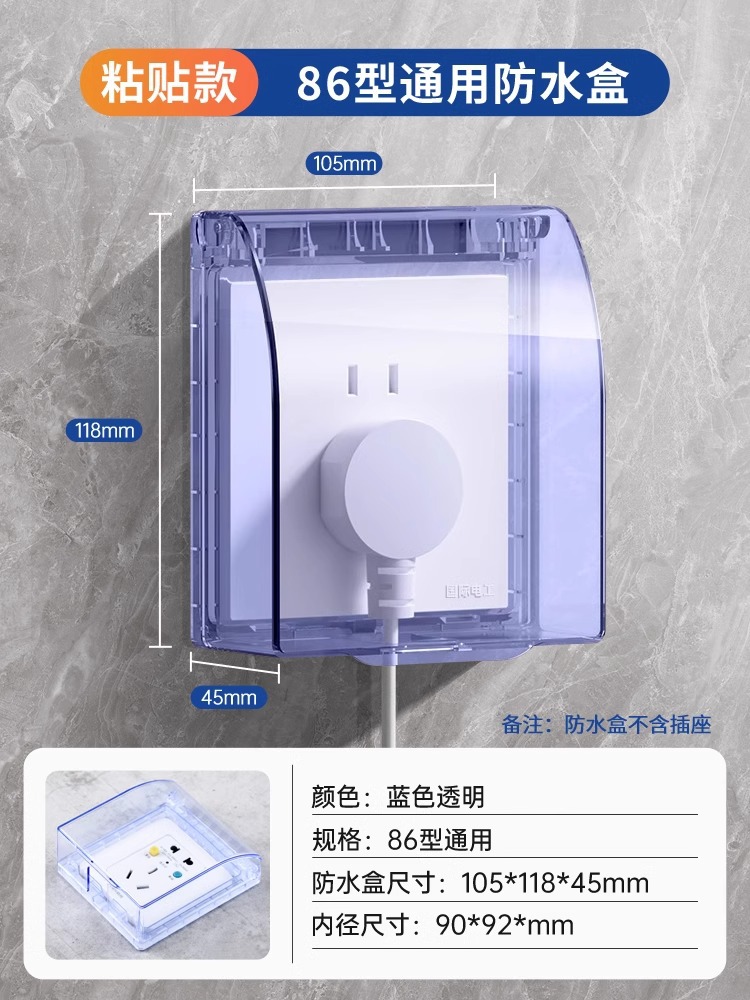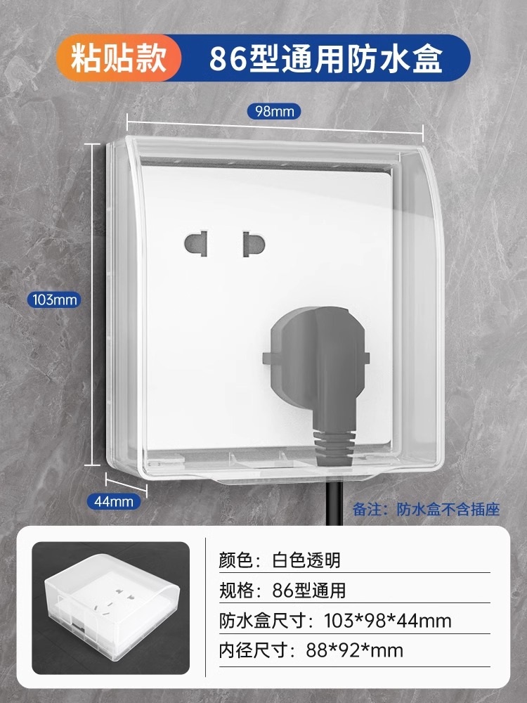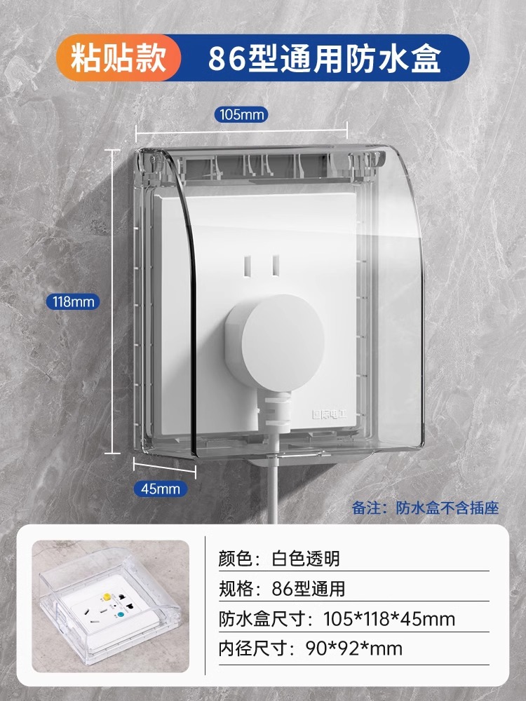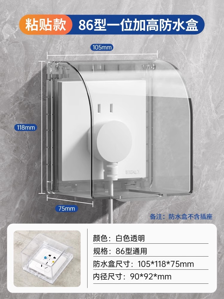 86型开关插座防水罩卫生间防溅盒浴室防水盒透明粘贴式电源保护罩