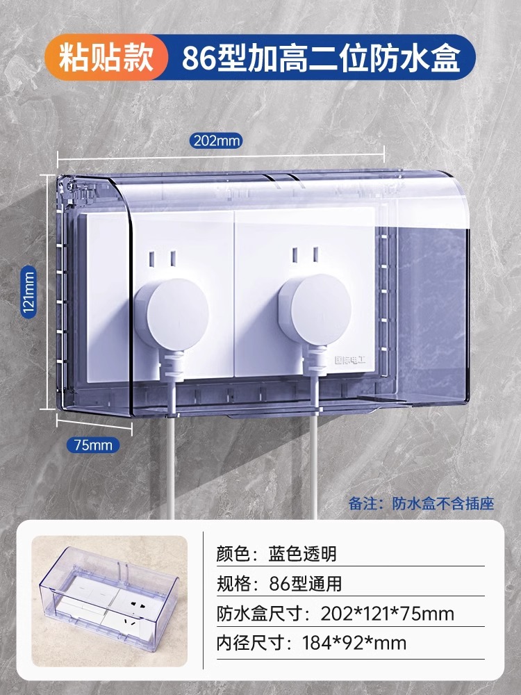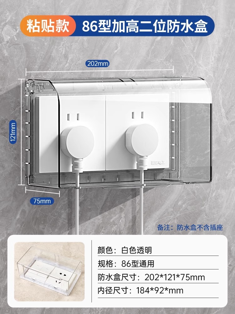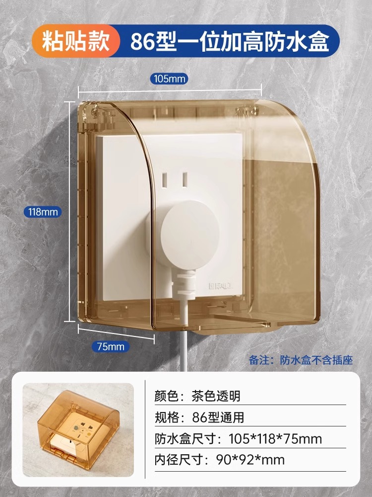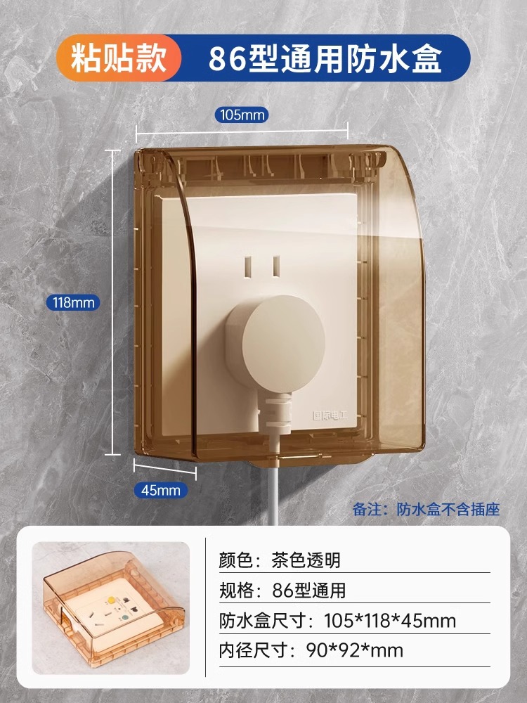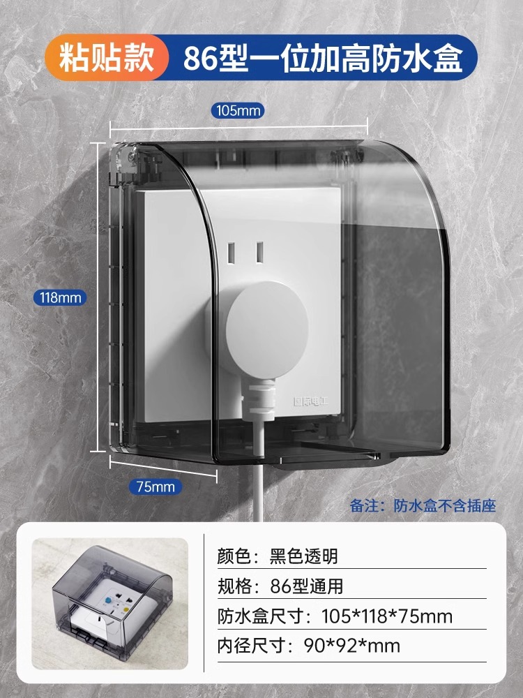 86型开关插座防水罩卫生间防溅盒浴室防水盒透明粘贴式电源保护罩