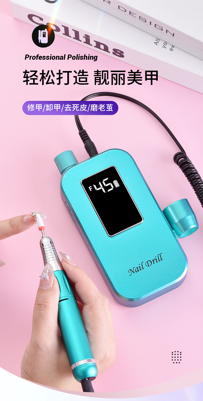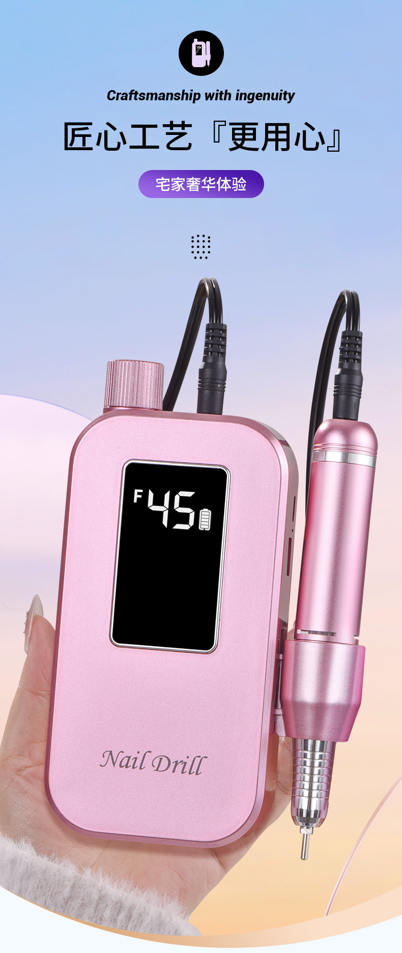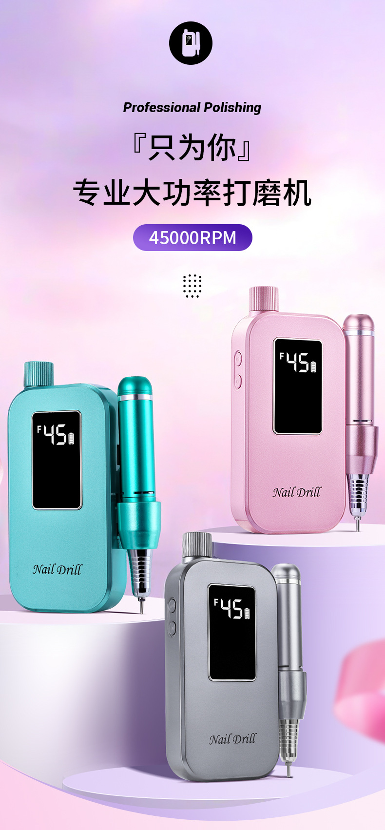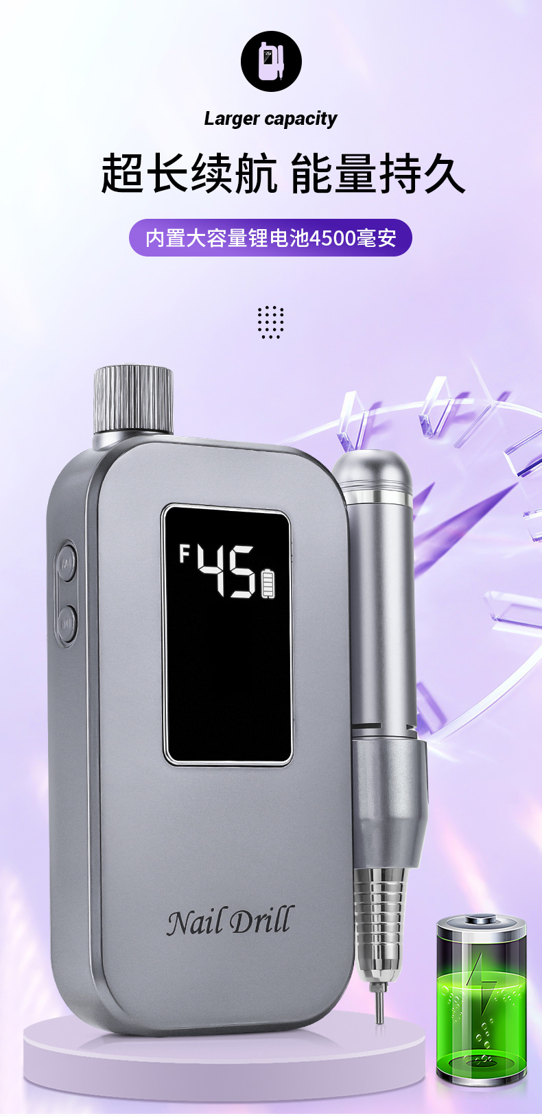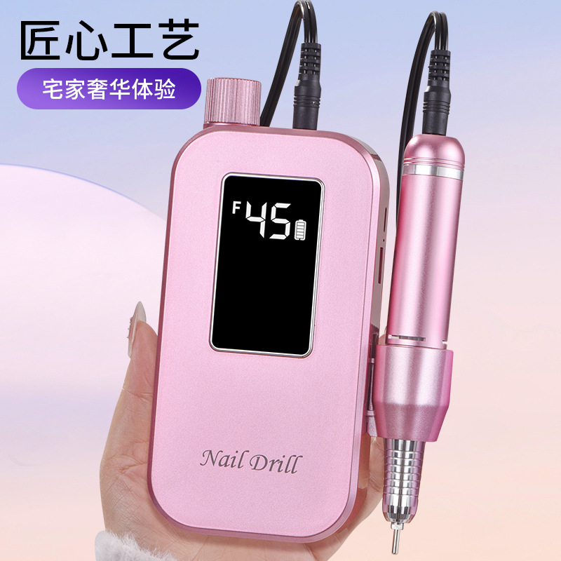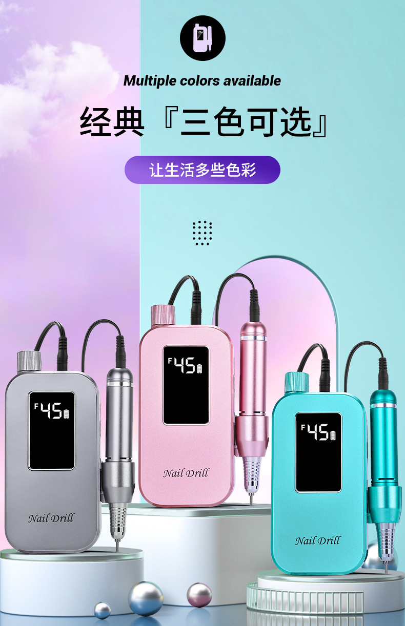 跨境新款专业美甲打磨机45000转电动卸甲笔大屏打磨机蓄电静音