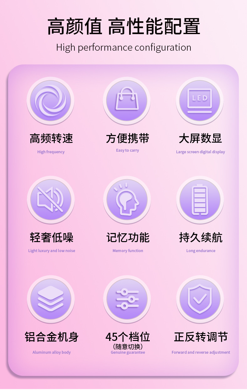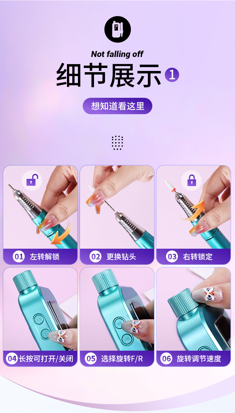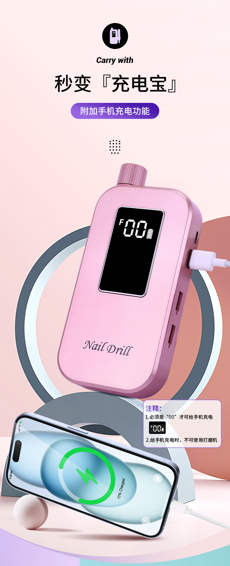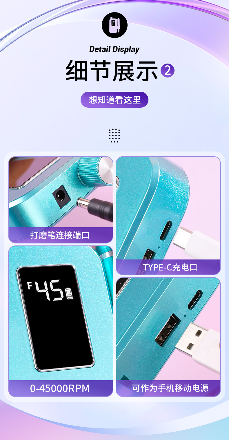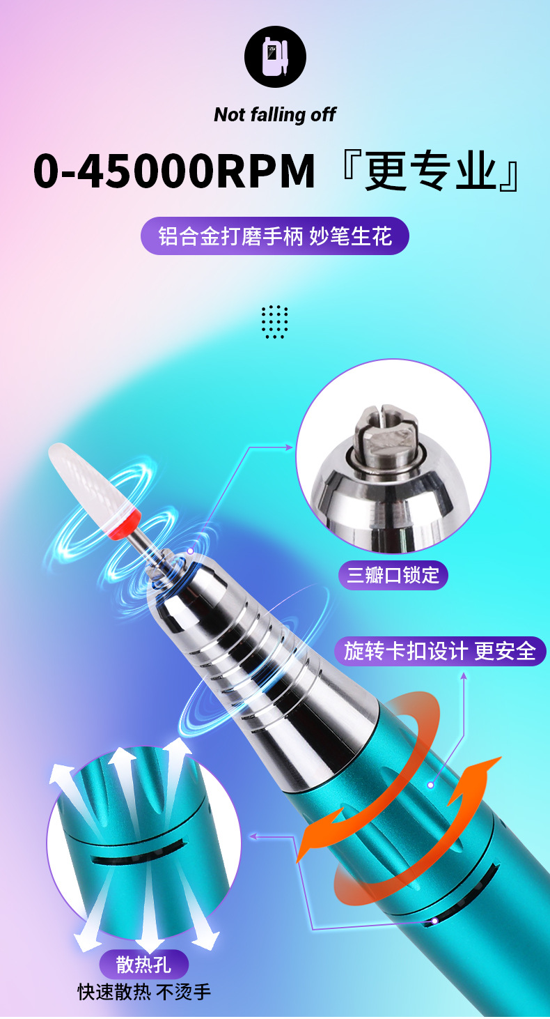 跨境新款专业美甲打磨机45000转电动卸甲笔大屏打磨机蓄电静音