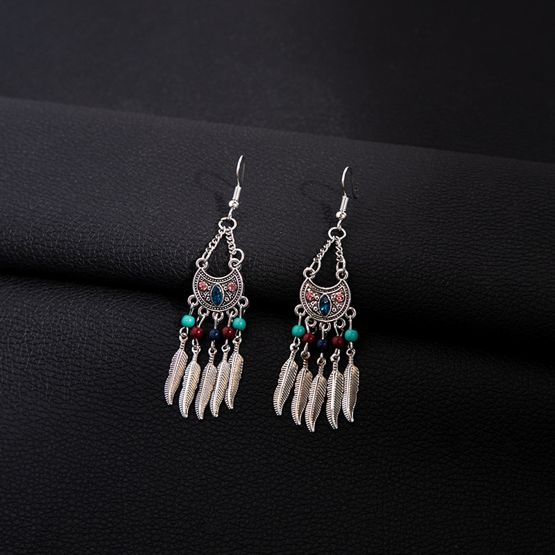 欧美波西米亚民族风耳钉 长款流苏金属耳坠时尚异族风情耳饰批发