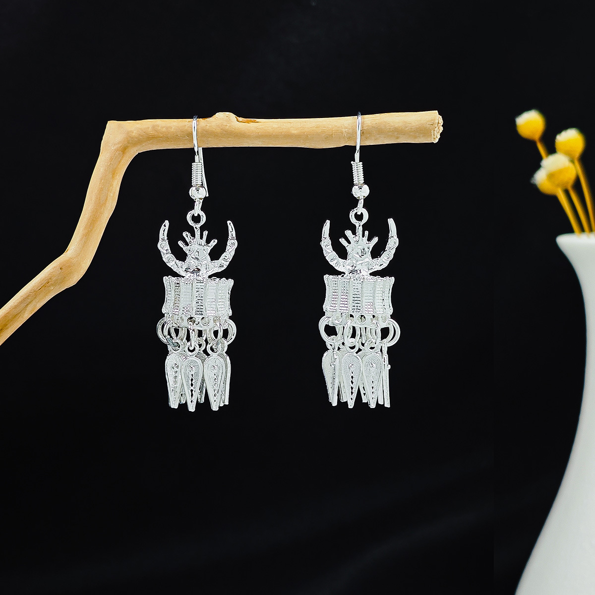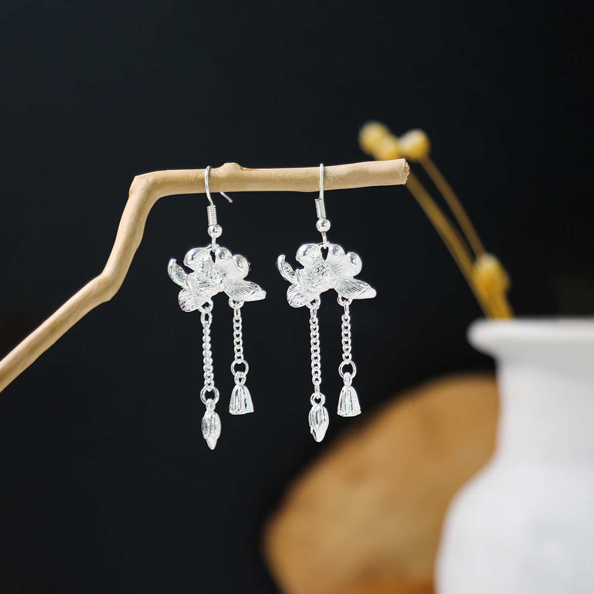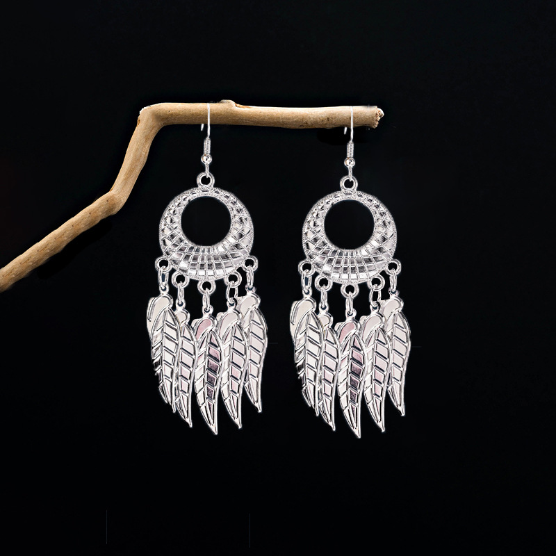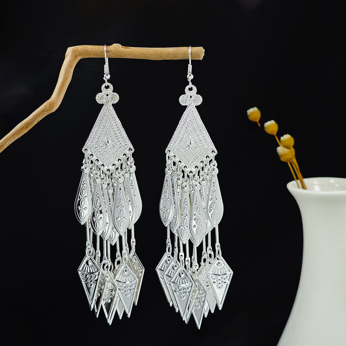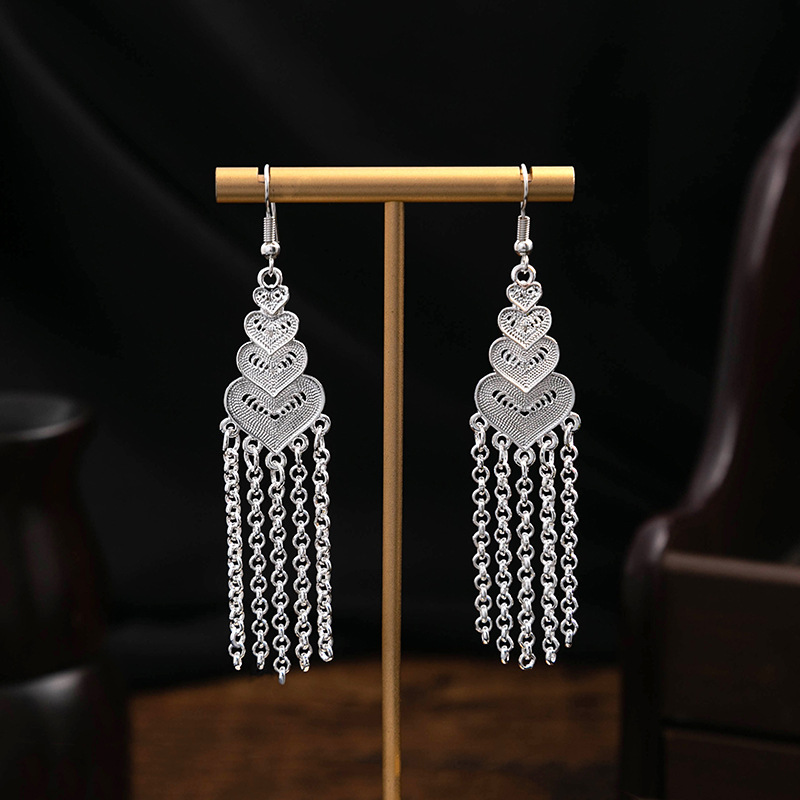 复古苗银少数民族风耳环 个性波西米亚风花朵耳坠长款流苏耳饰