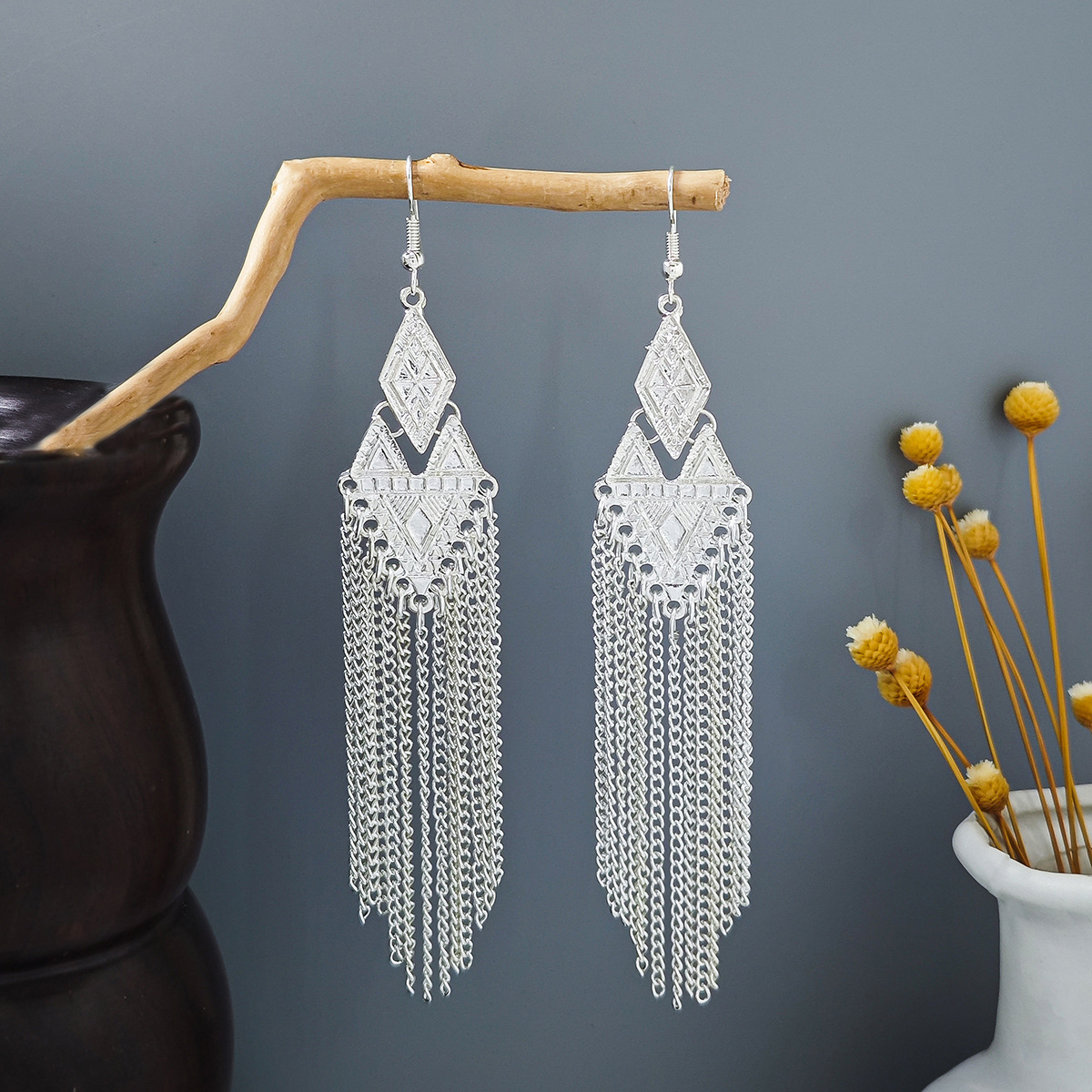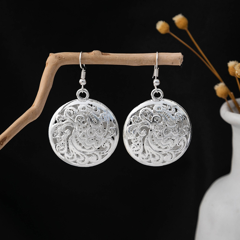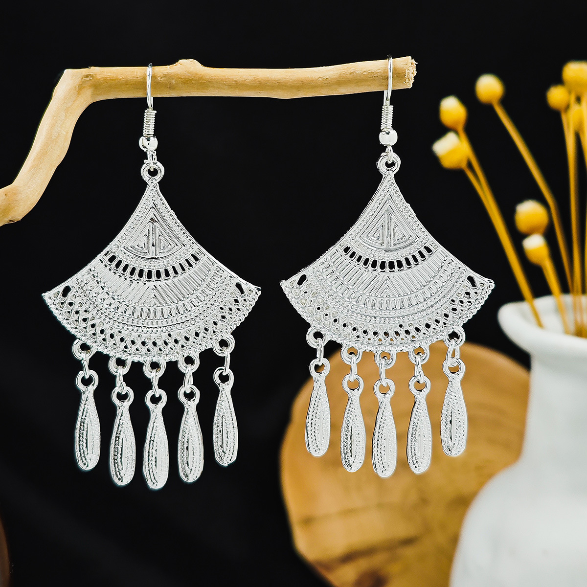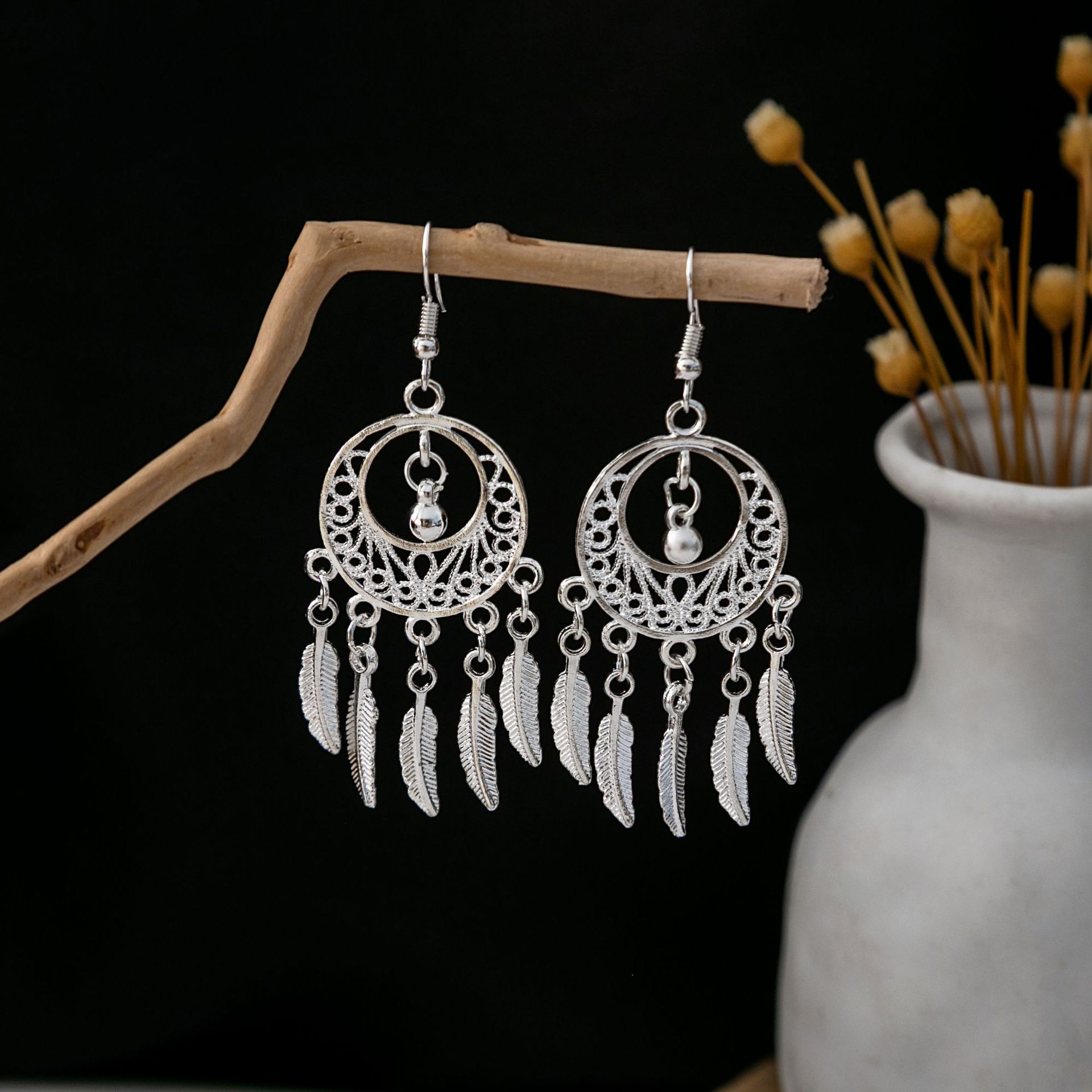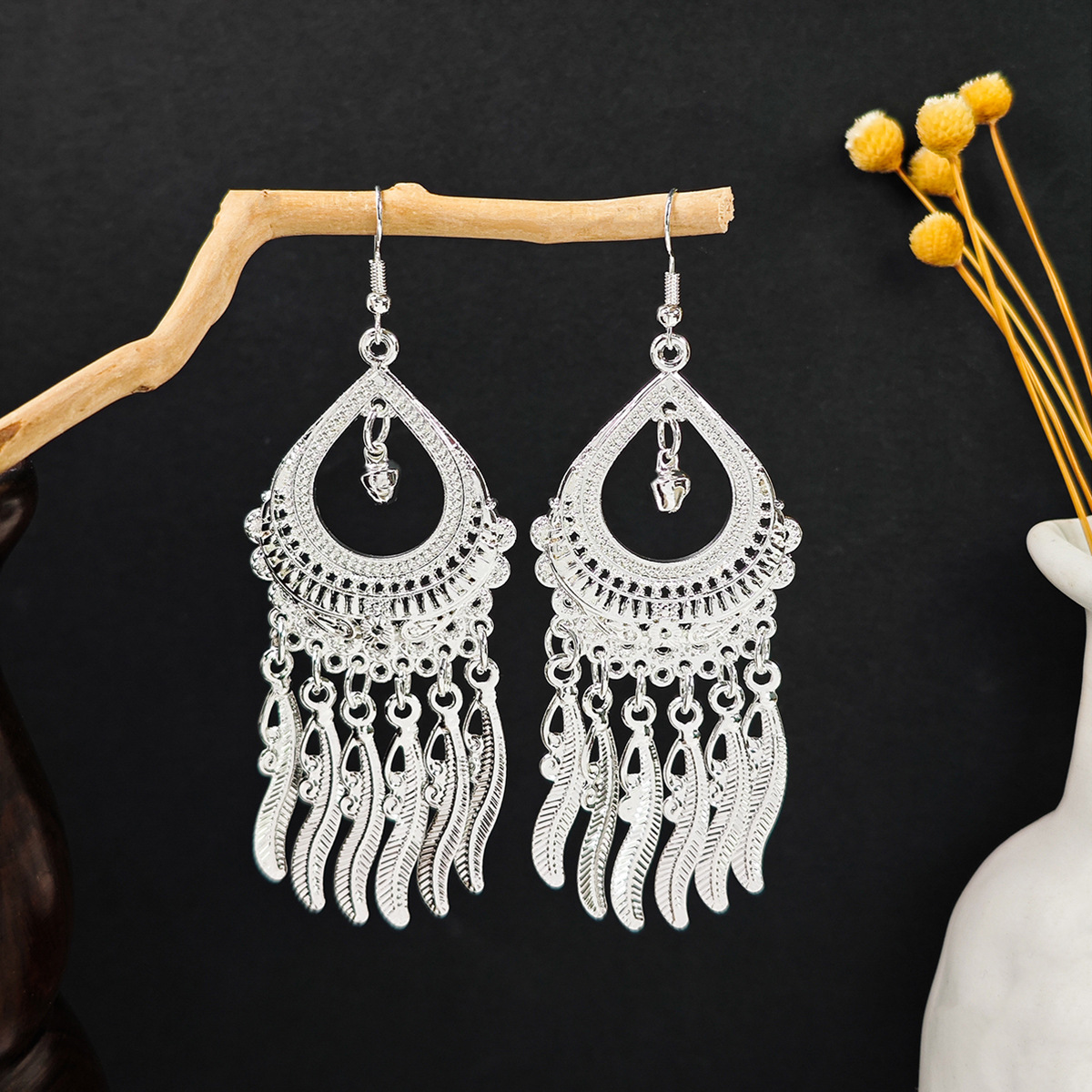 复古苗银少数民族风耳环 个性波西米亚风花朵耳坠长款流苏耳饰