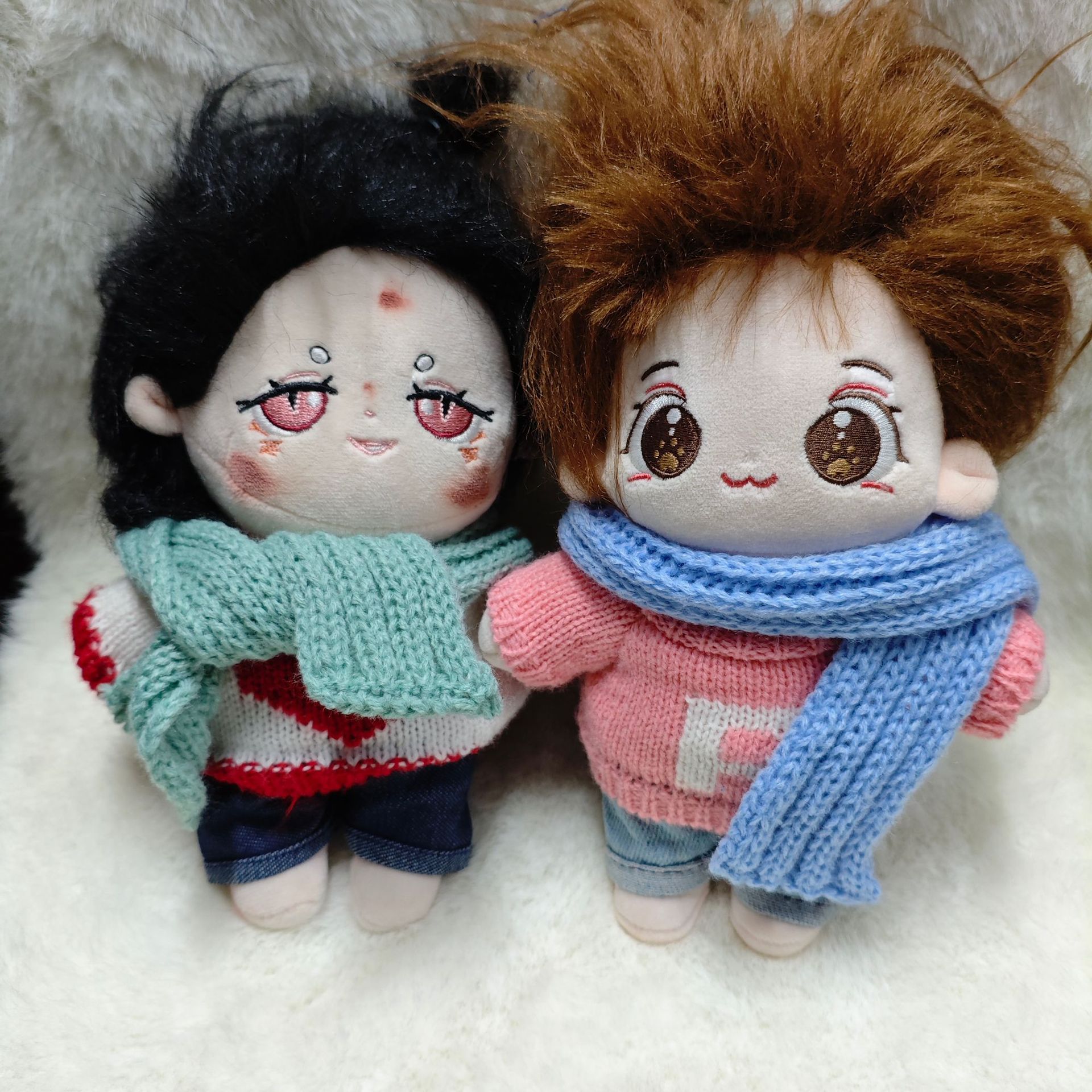 20cm棉花娃娃新款撞色针织小围巾多巴胺彩色毛线小众腊肠长条