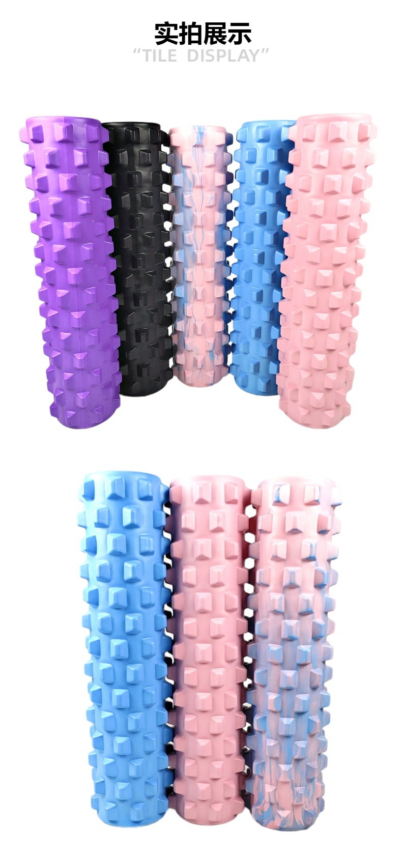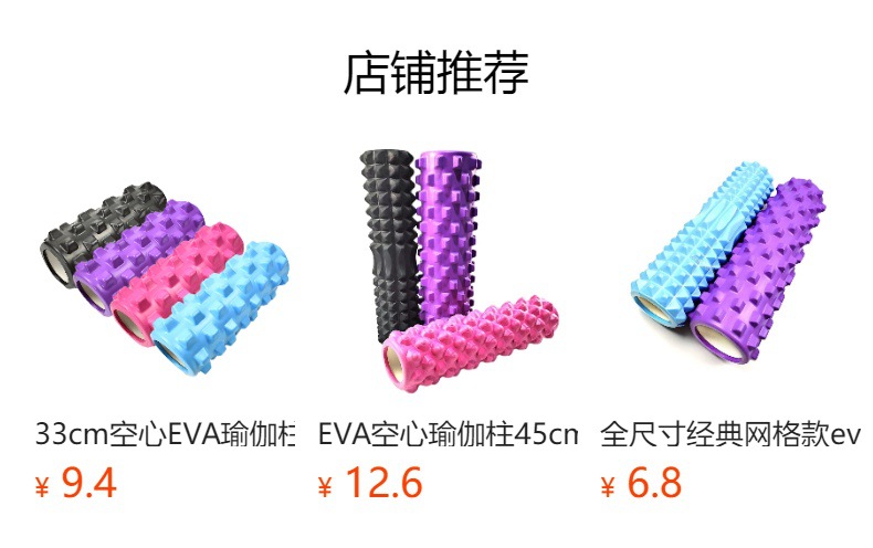 EVA彩色实心瑜伽柱45CM健身运动肌肉放松按摩棒空心狼牙泡沫滚轴