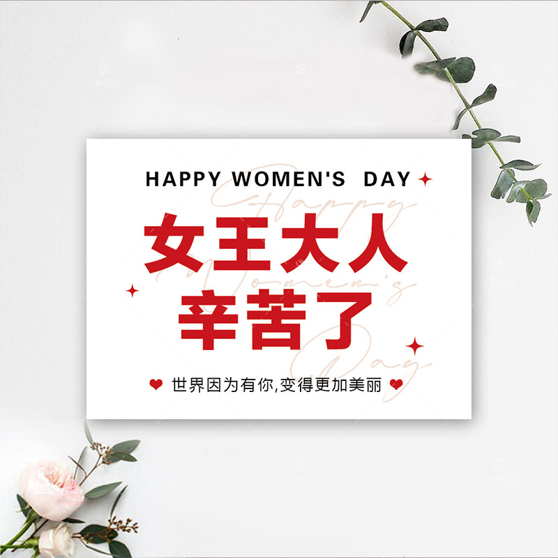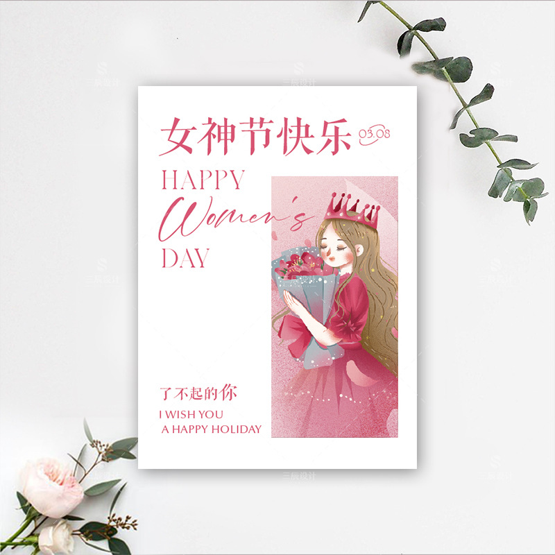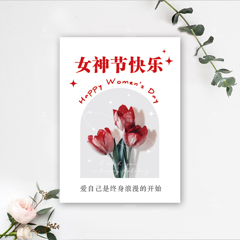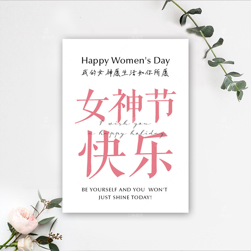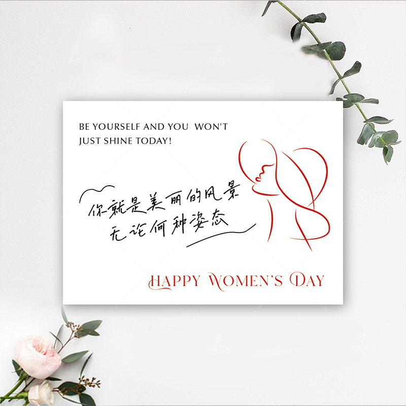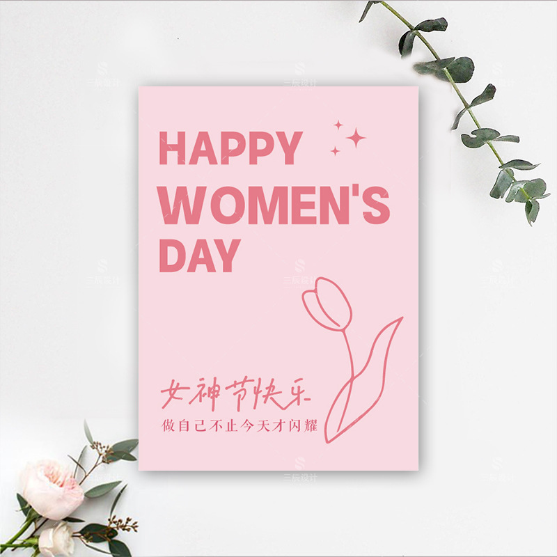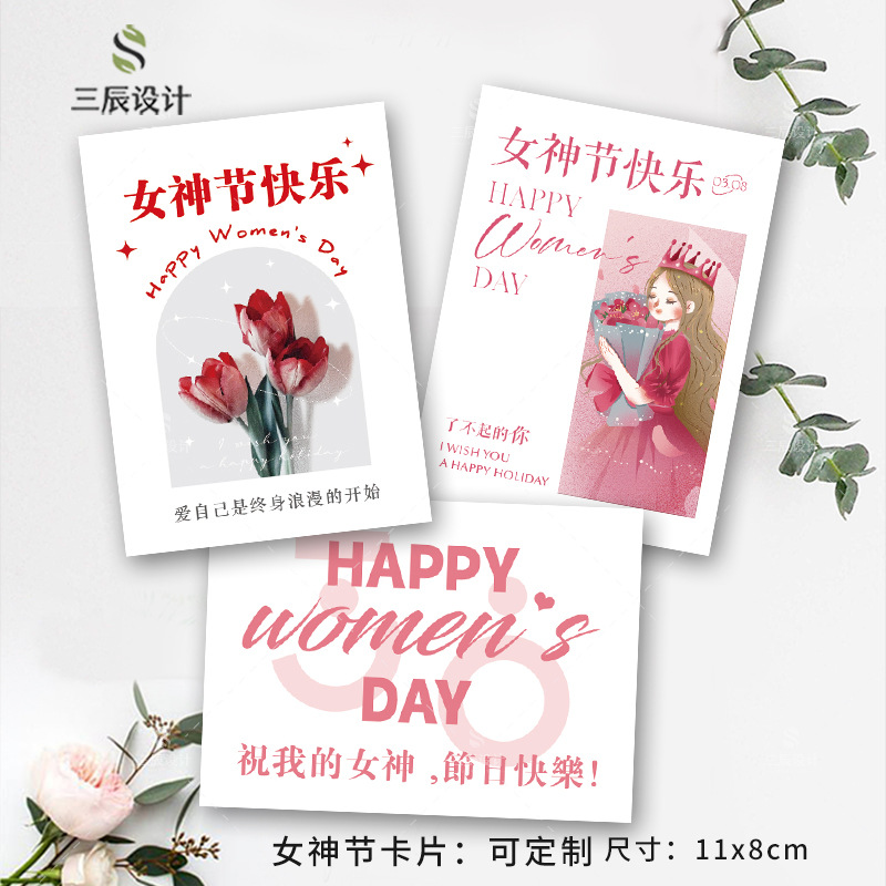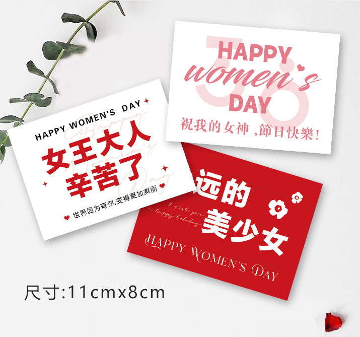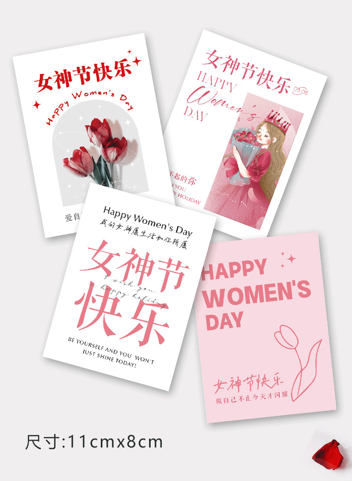新款女神节贺卡38妇女节日卡片简约款留言卡花店花束蛋糕店贺卡