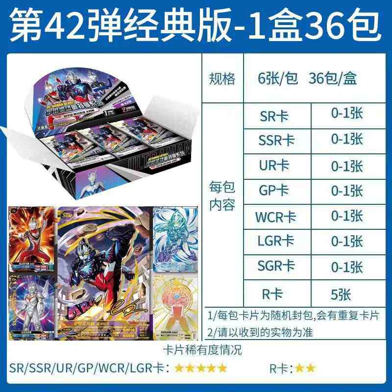 卡游正版奥特曼卡片经典版第42弹一整盒38弹豪华版1元2元包卡牌男