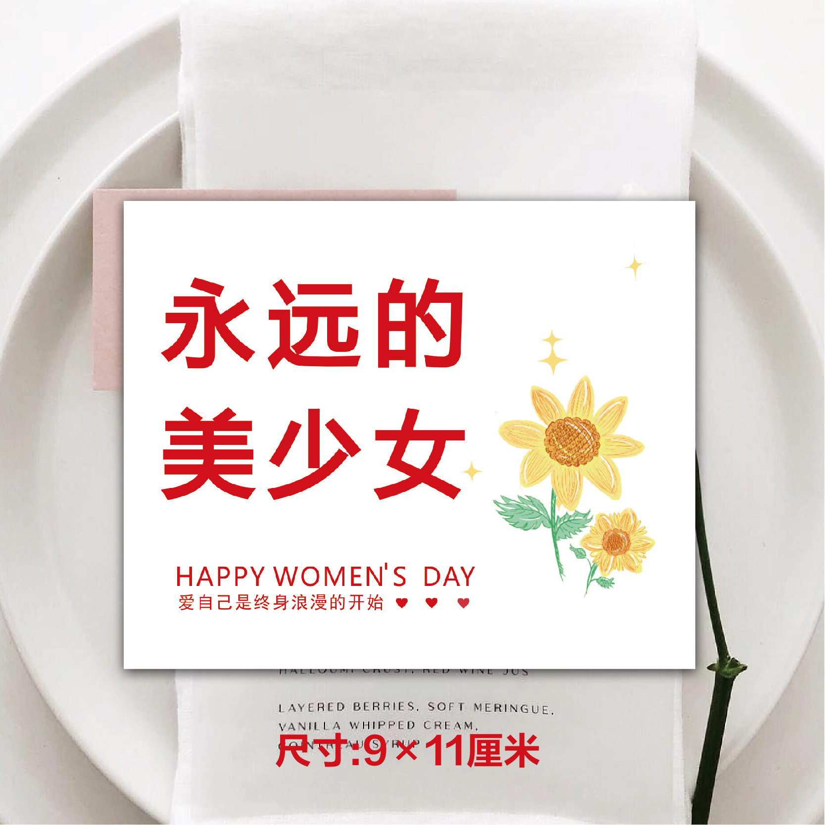 女神节贺卡通用贺卡妇女节母亲节祝福花束卡片花店烘焙送礼卡定
