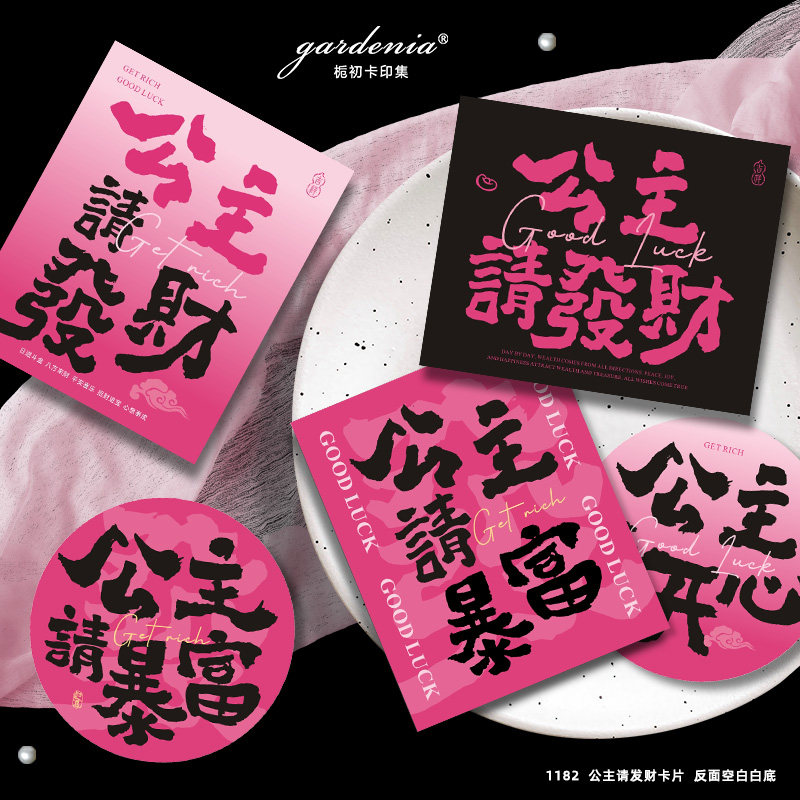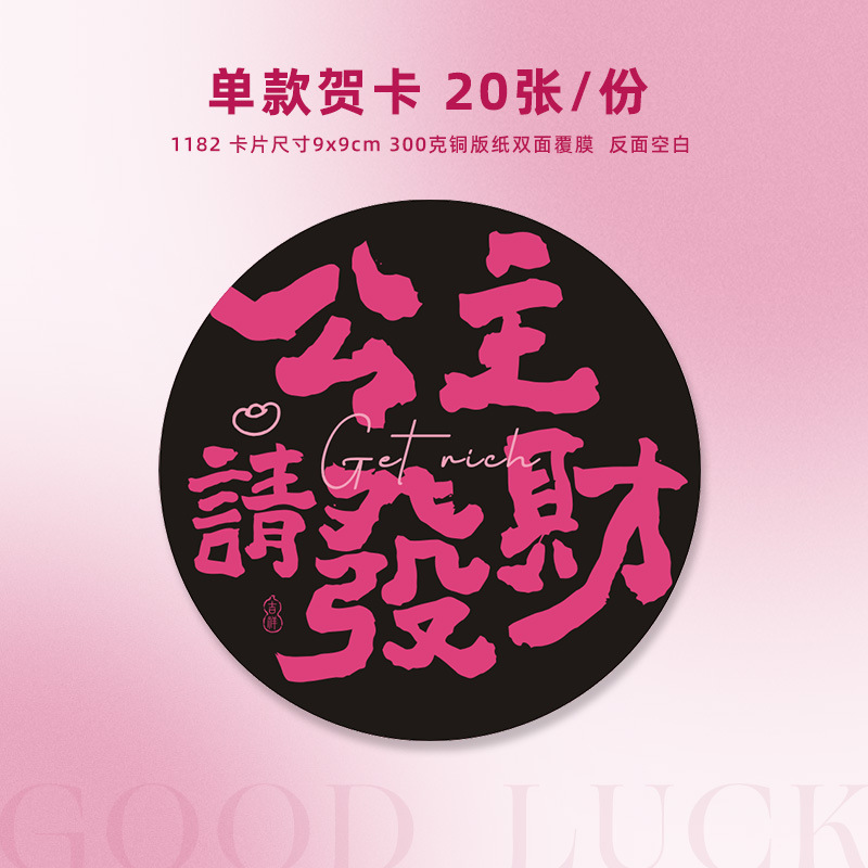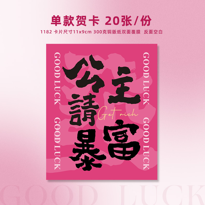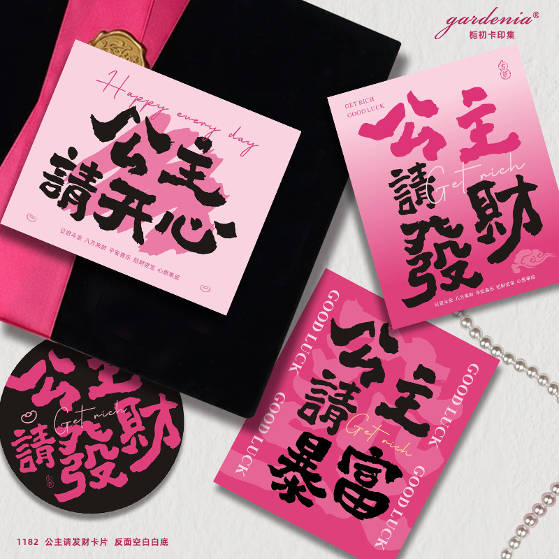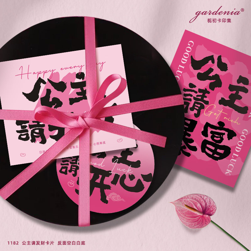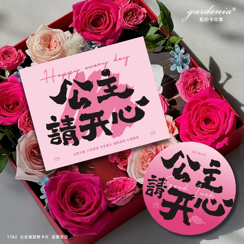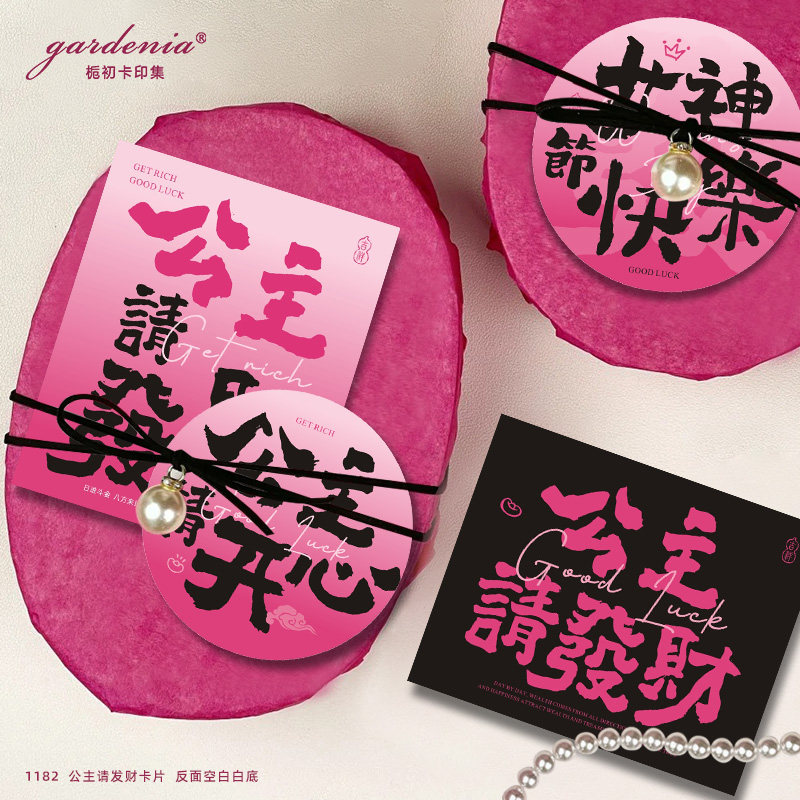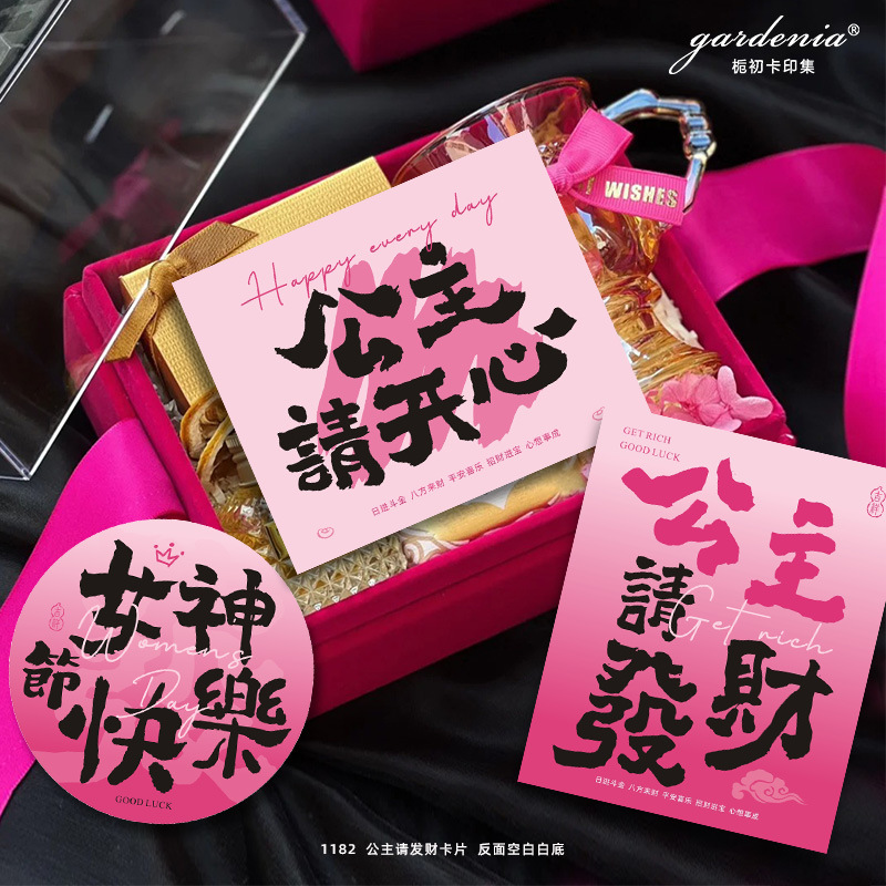 公主请发财贺卡黑玫配色甜酷风女神节祝福卡鲜花水果伴手礼装饰卡
