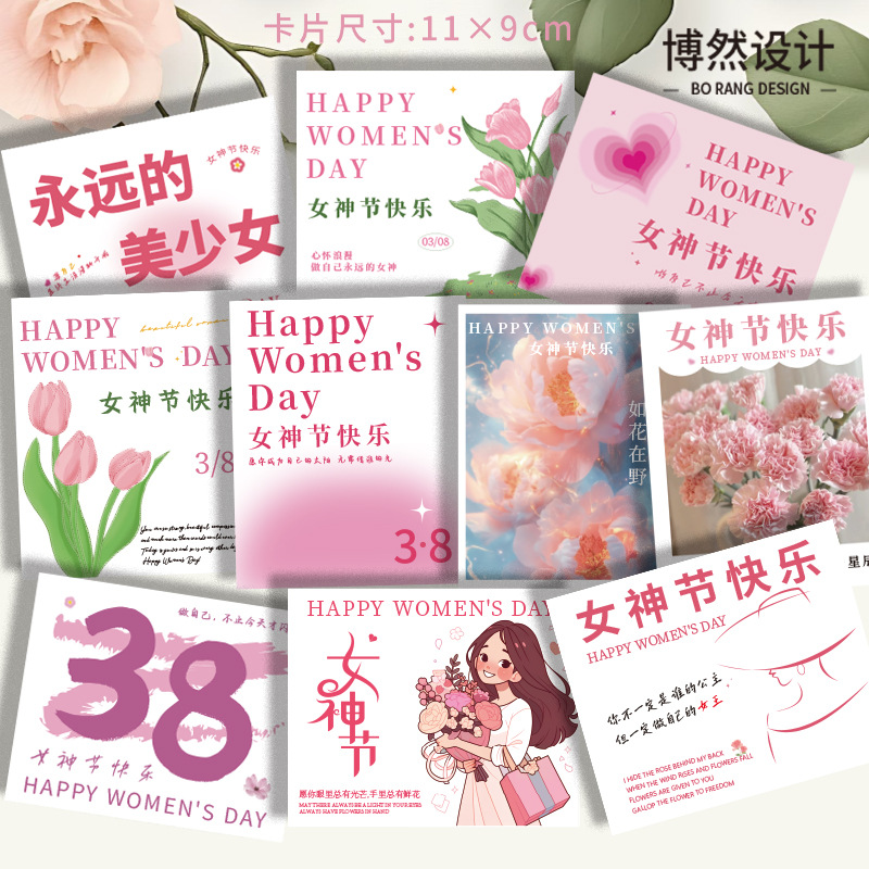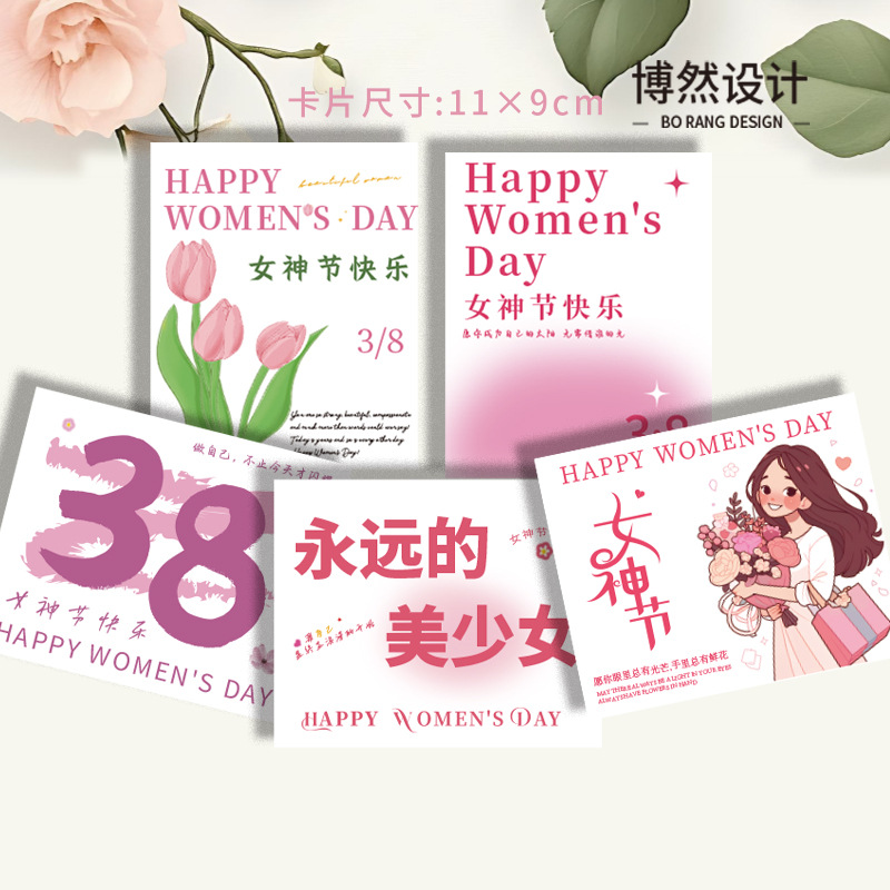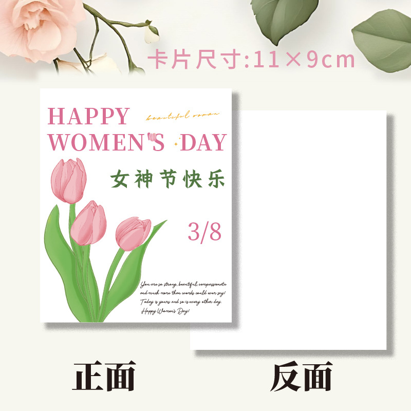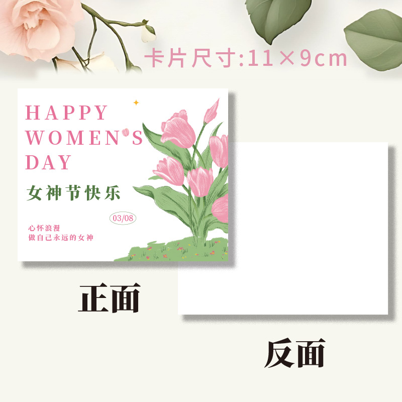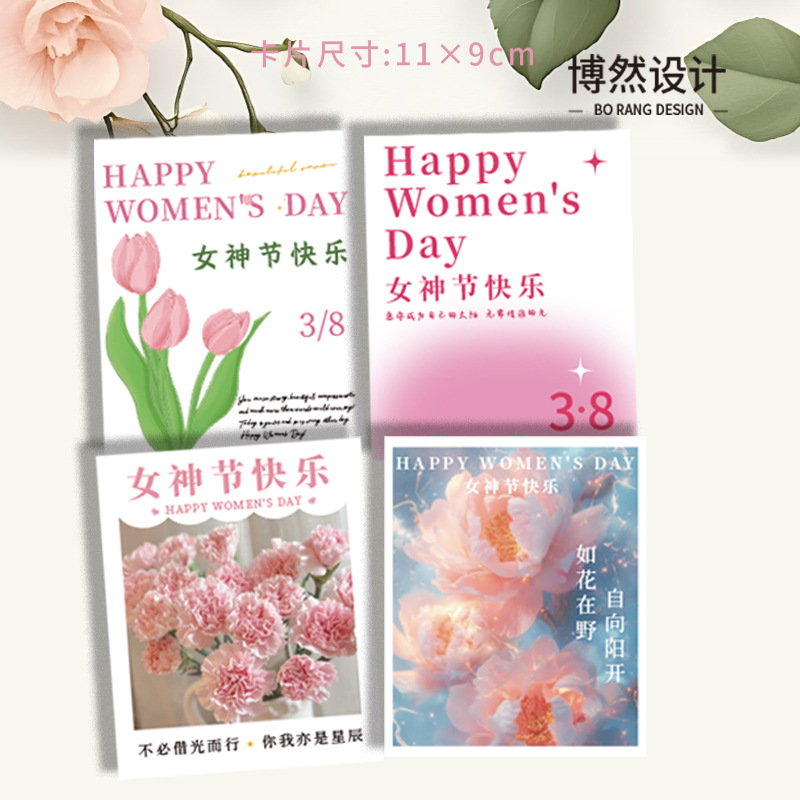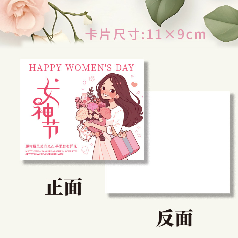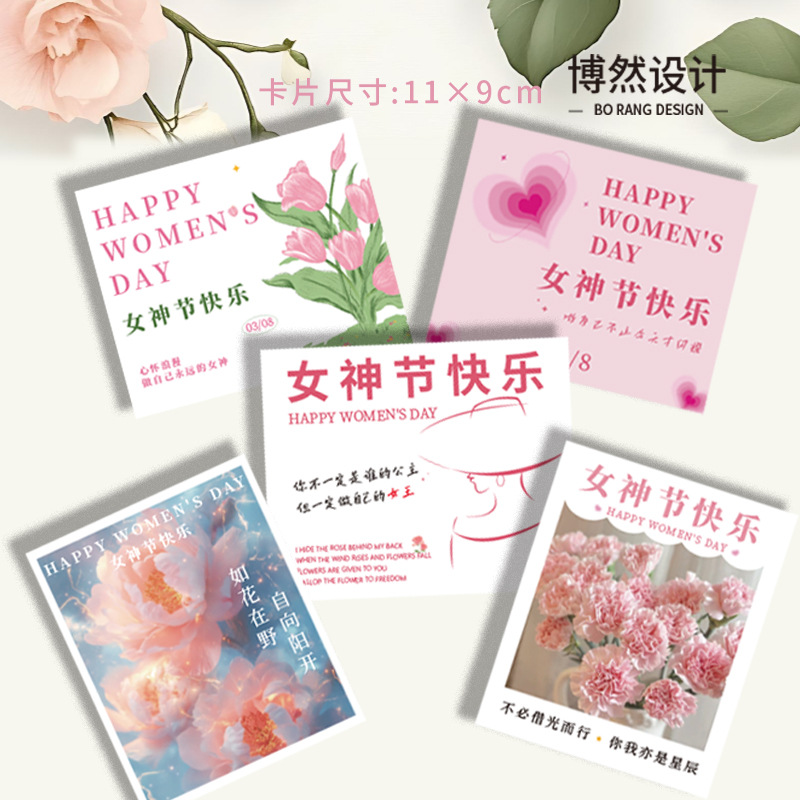 新款女神节卡片三八妇女节贺卡花束伴手礼高级感留言卡吊牌