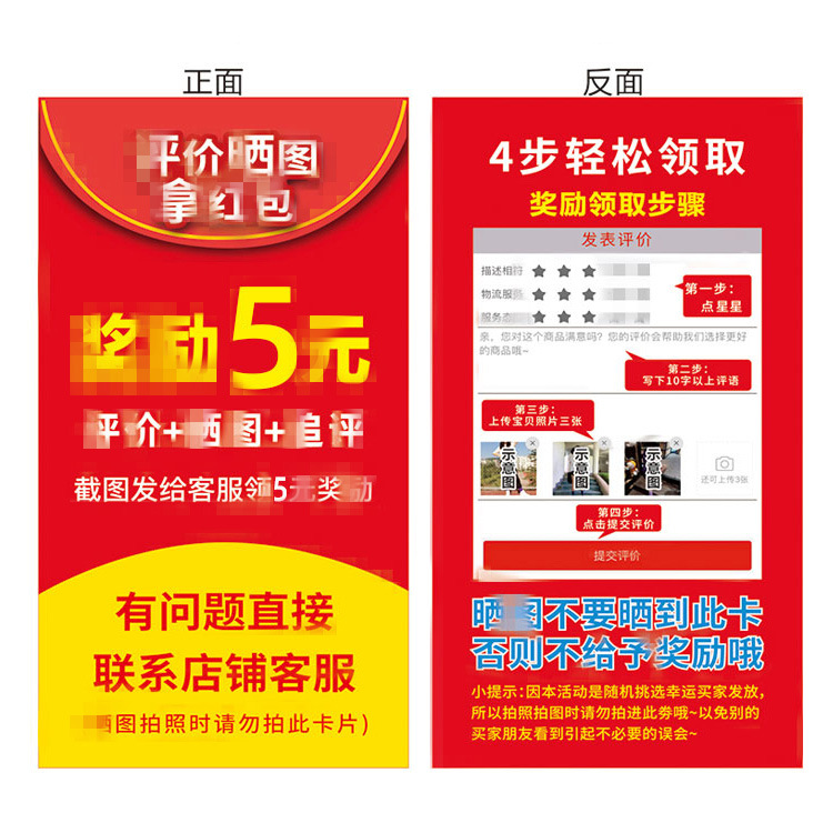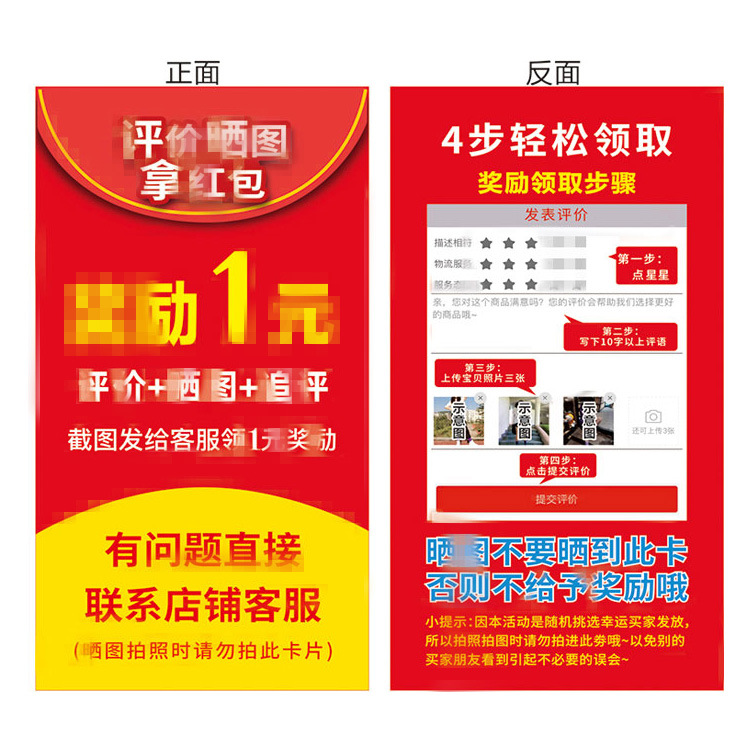 好评卡批发券售后卡感谢外卖晒图多多评价卡定作印刷制评论做卡片