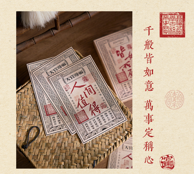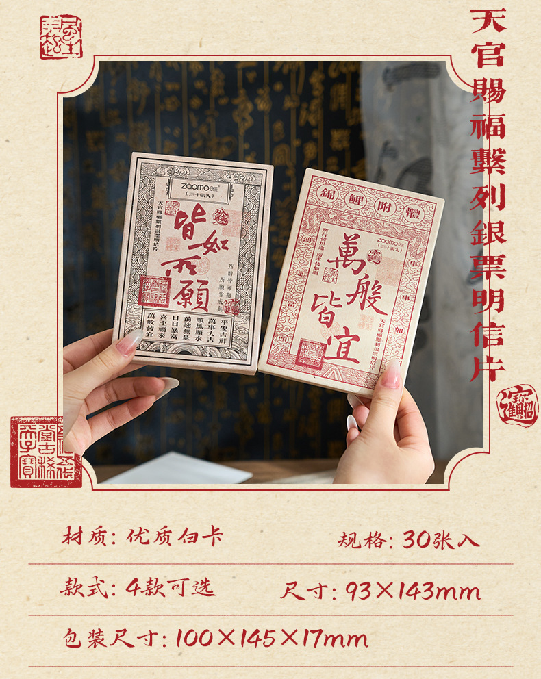 早沫银票明信片 天官赐福系列 寓意文字礼物留言祝福语贺卡片