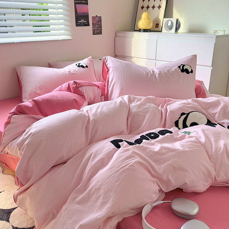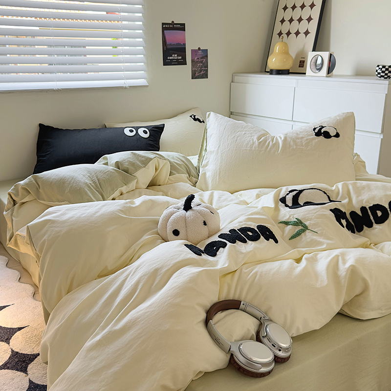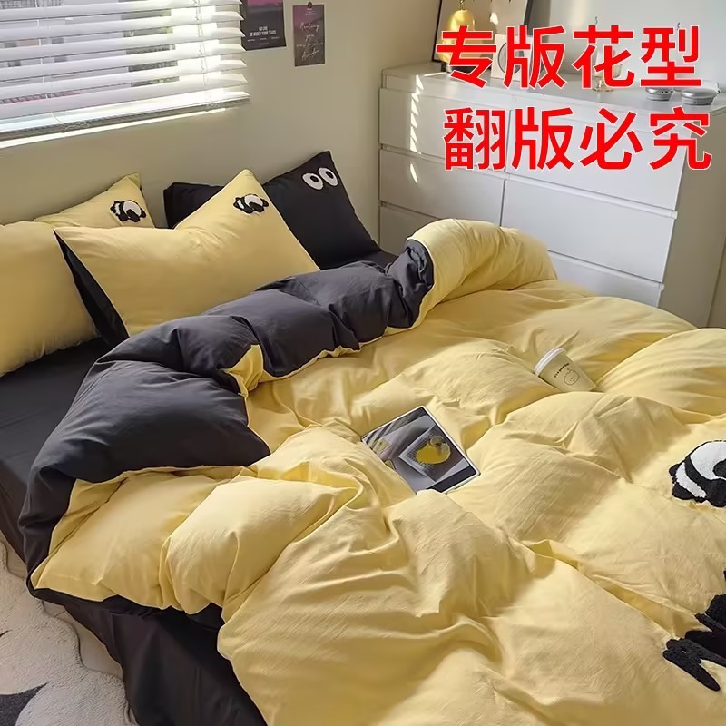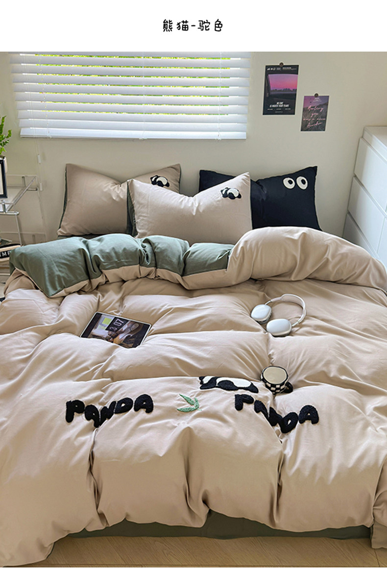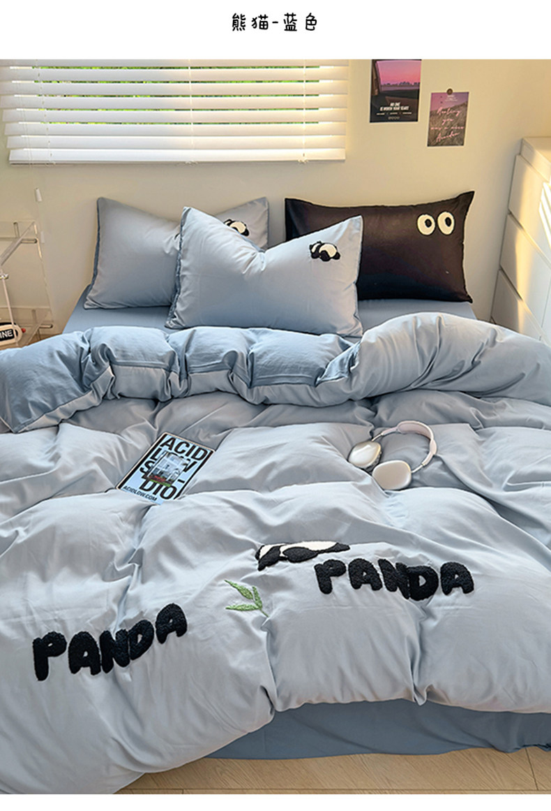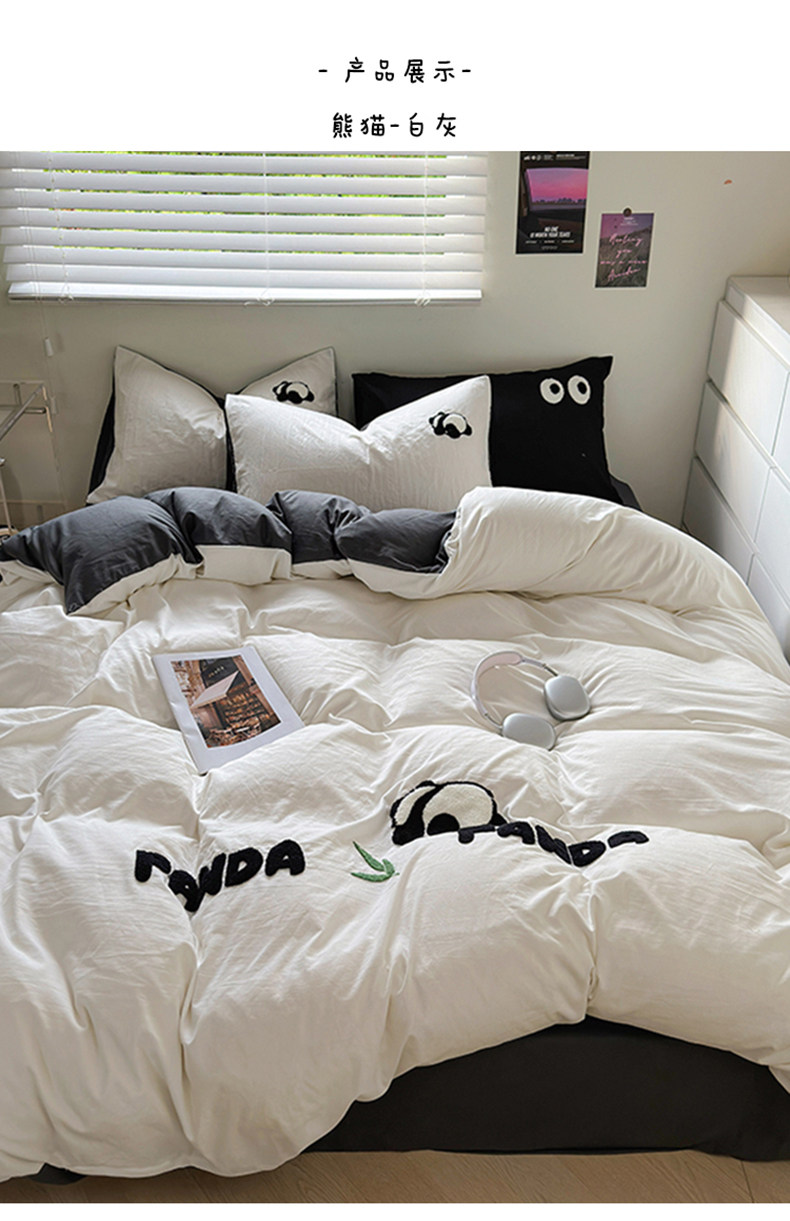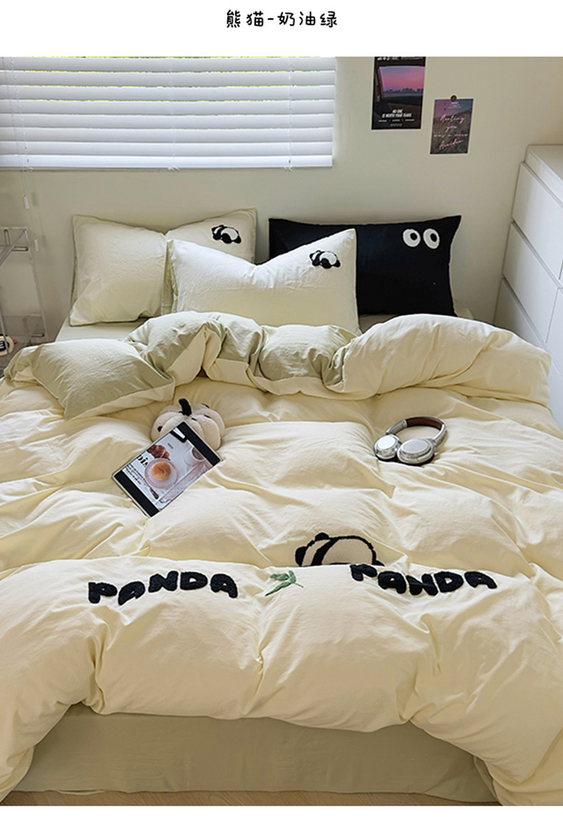 水洗纯棉四件套a类母婴级全棉毛巾绣被套款柔软亲肤ins风床单床笠