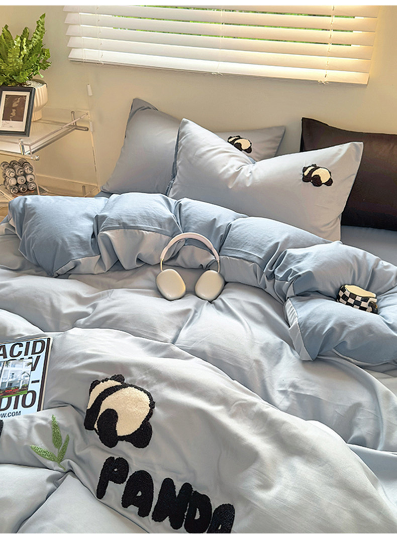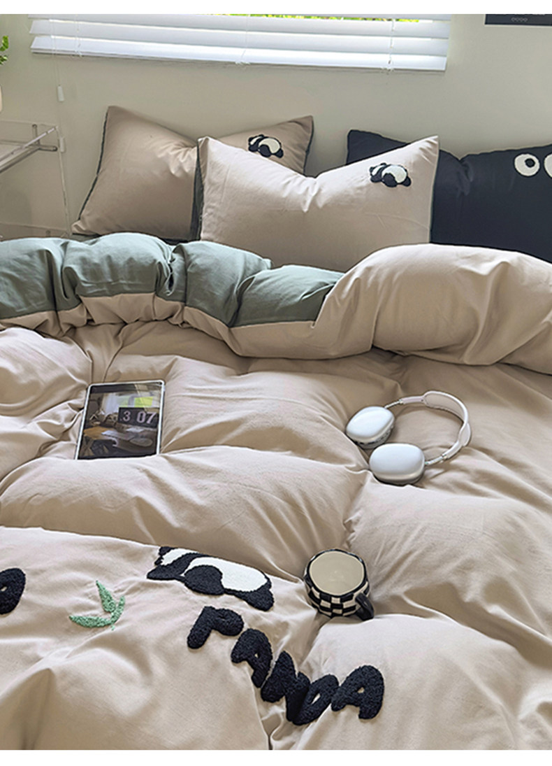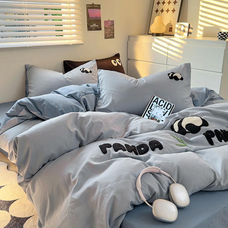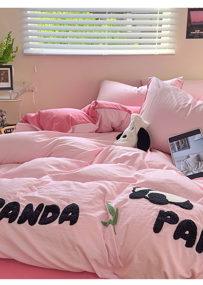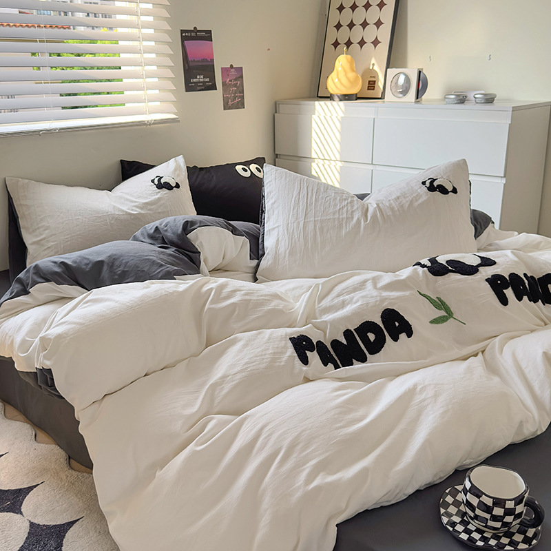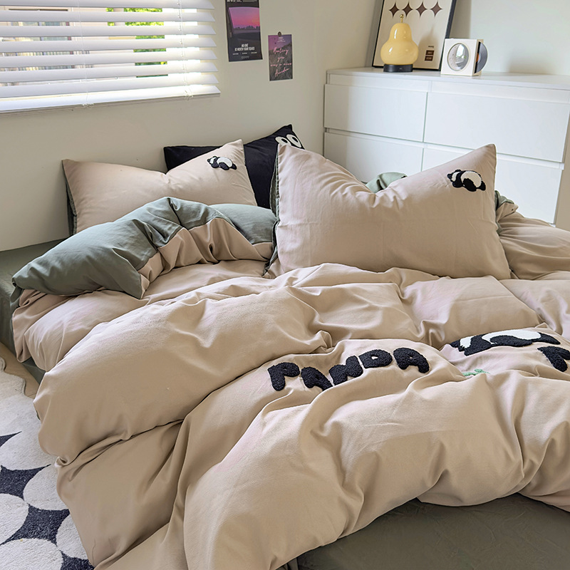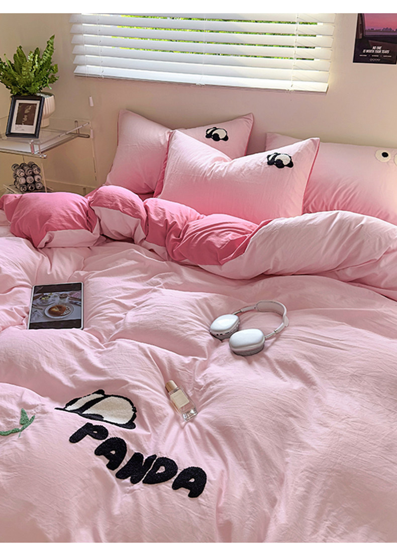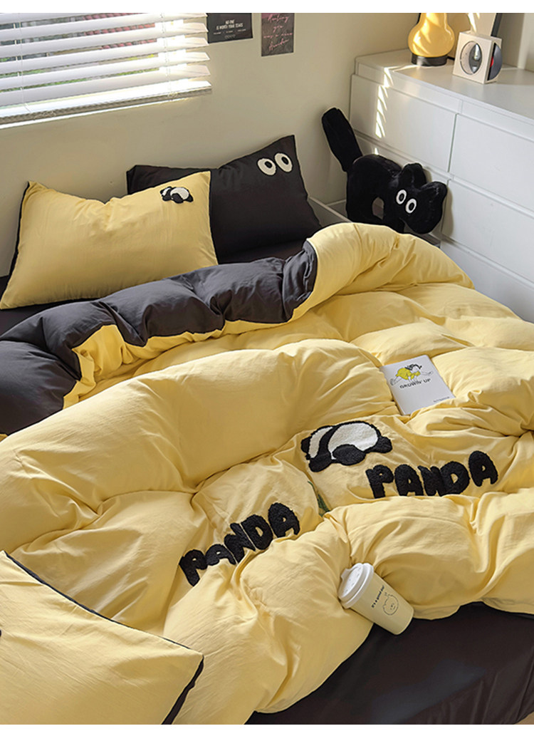 水洗纯棉四件套a类母婴级全棉毛巾绣被套款柔软亲肤ins风床单床笠