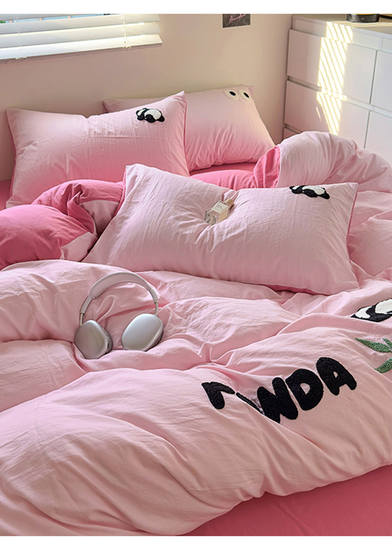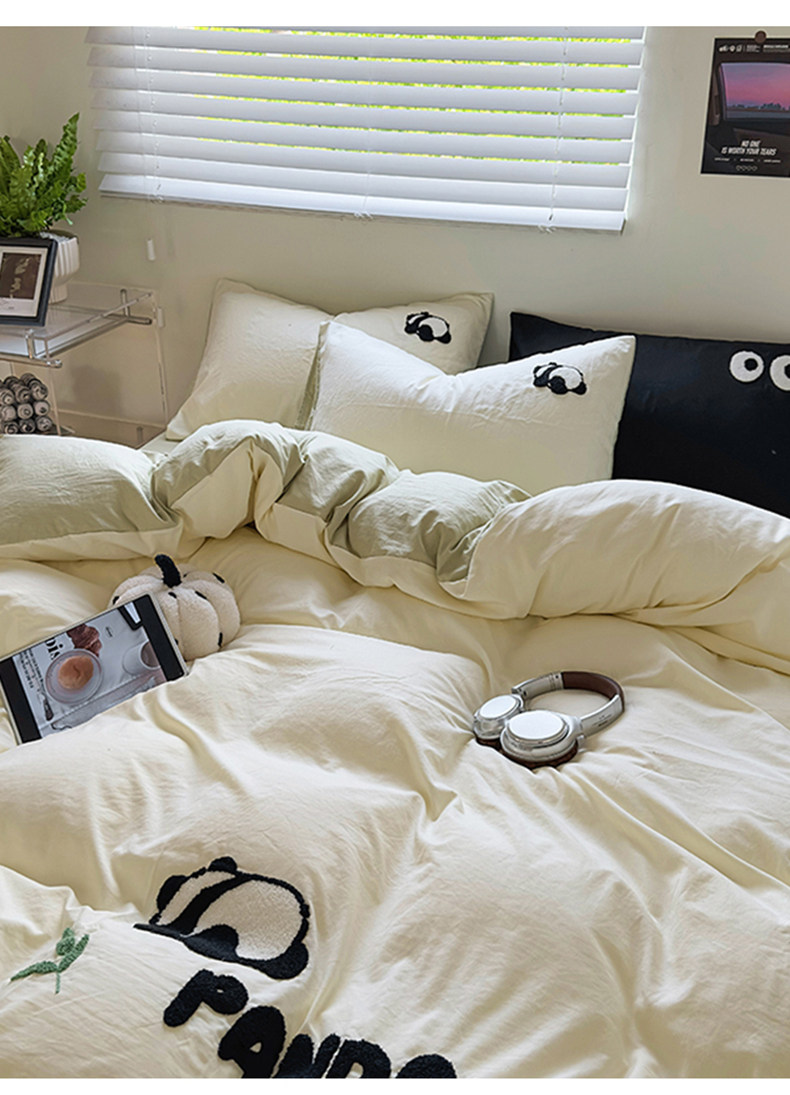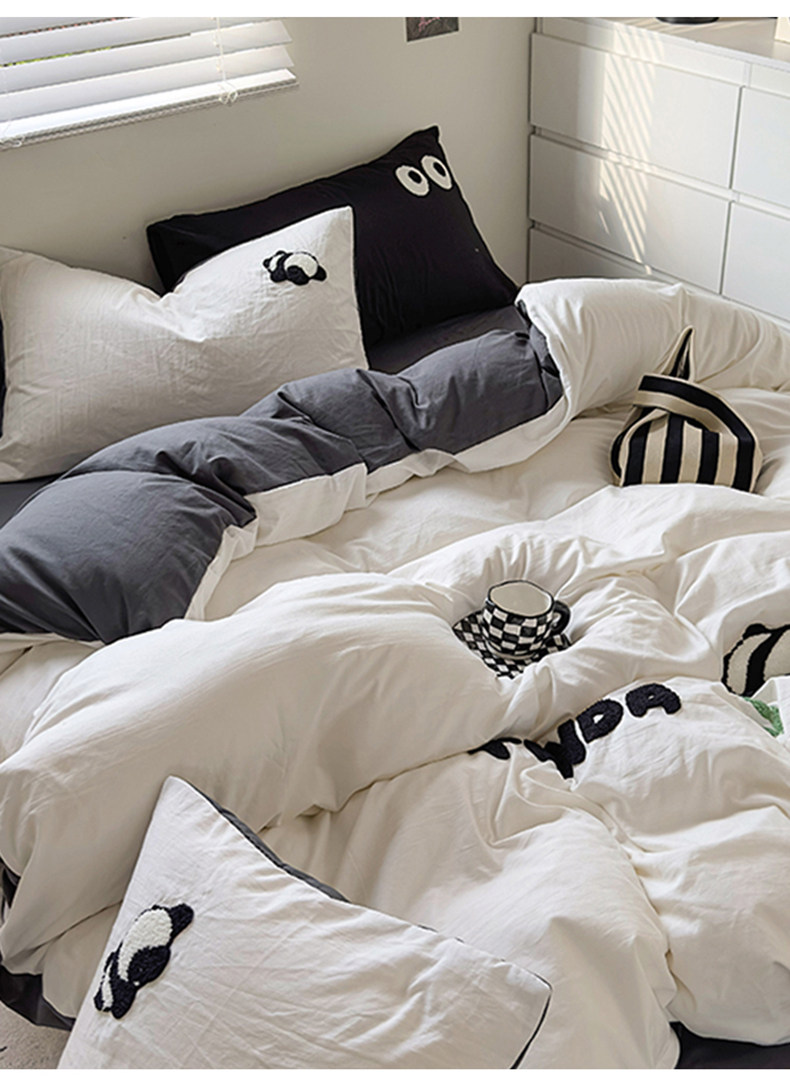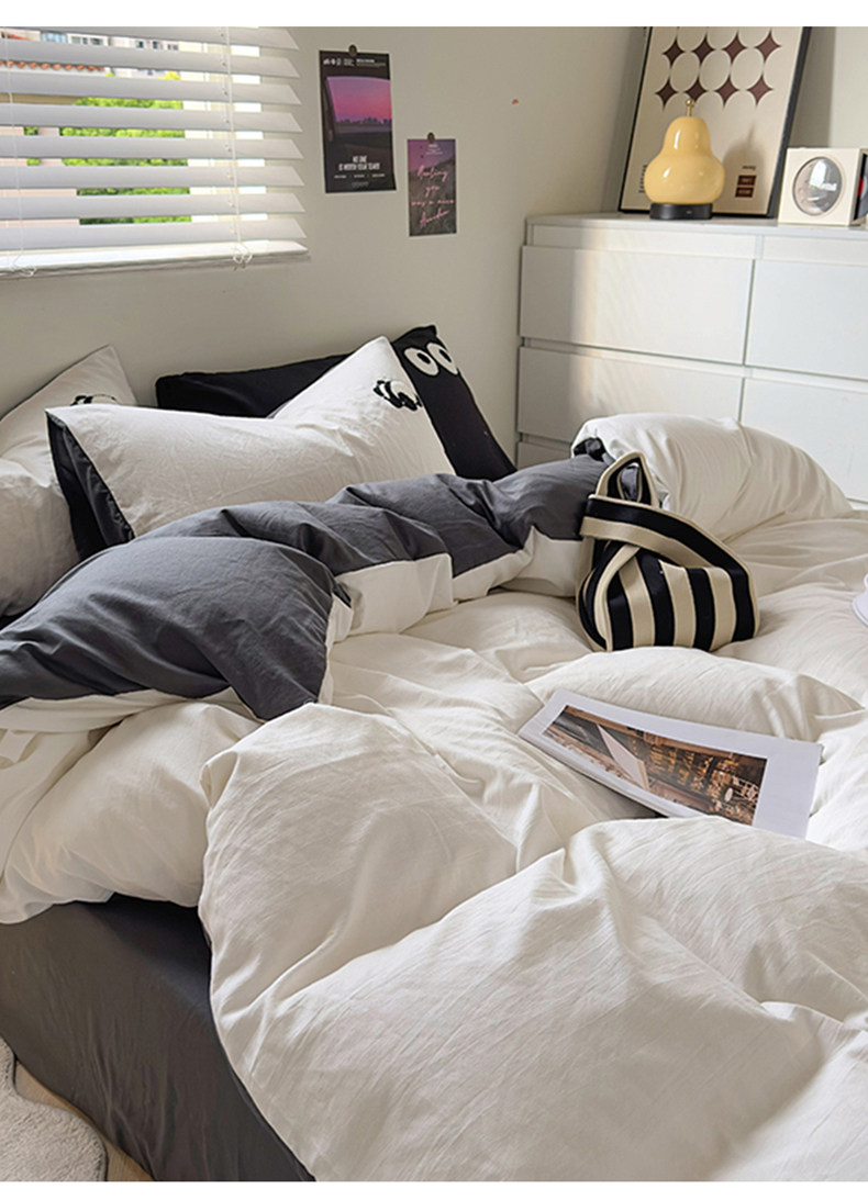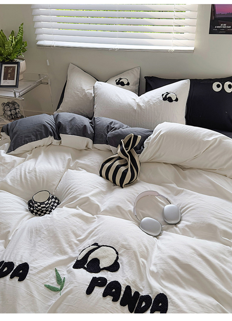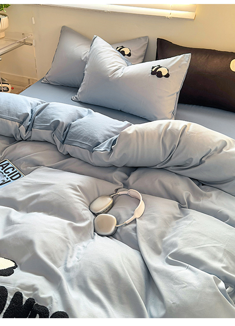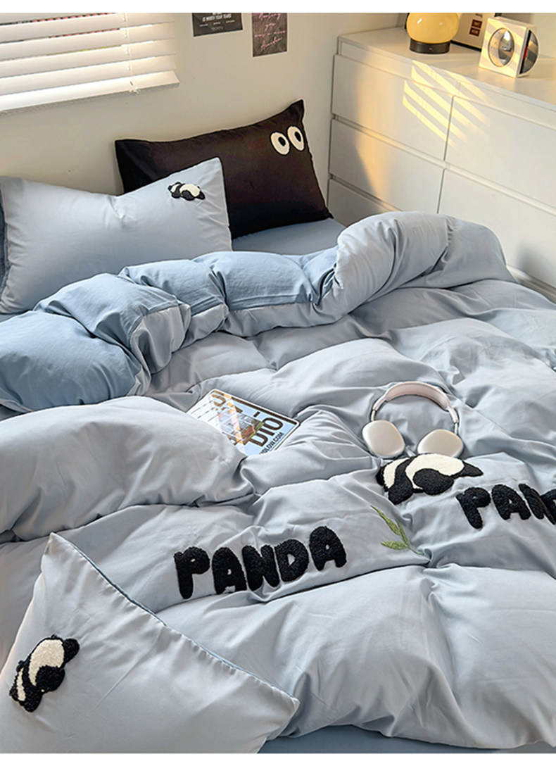 水洗纯棉四件套a类母婴级全棉毛巾绣被套款柔软亲肤ins风床单床笠