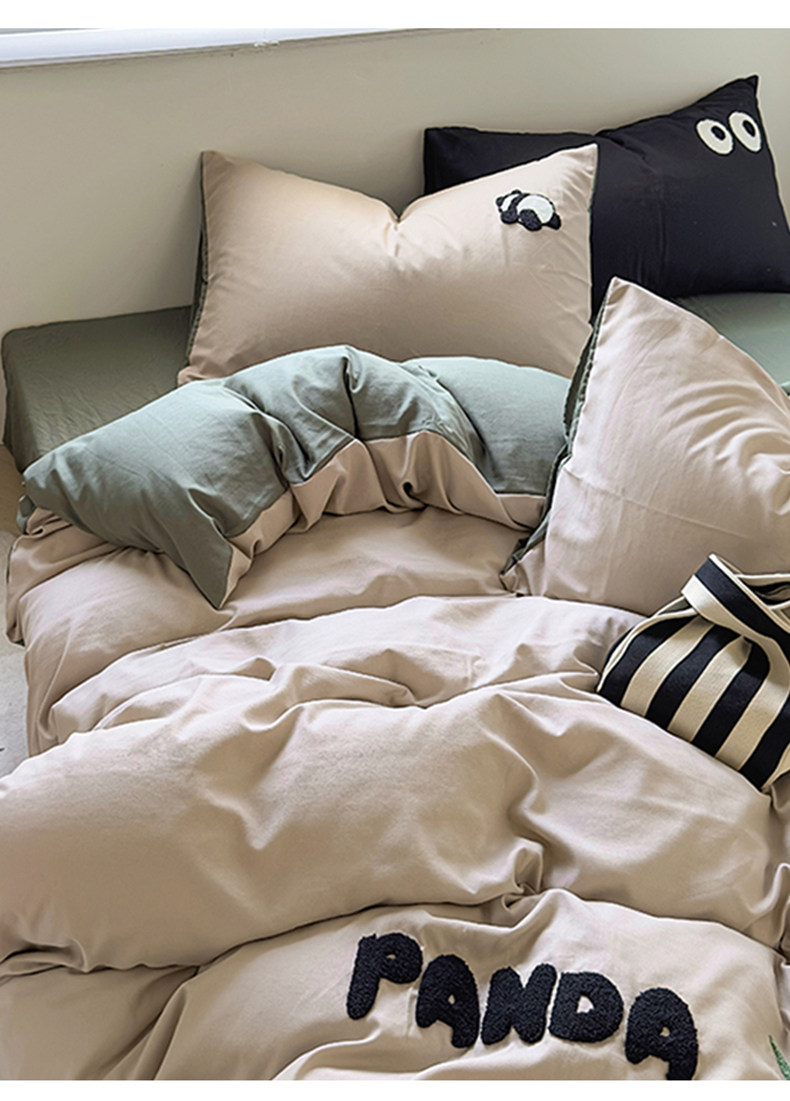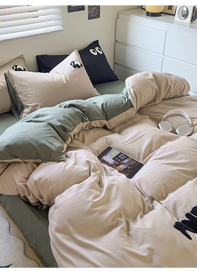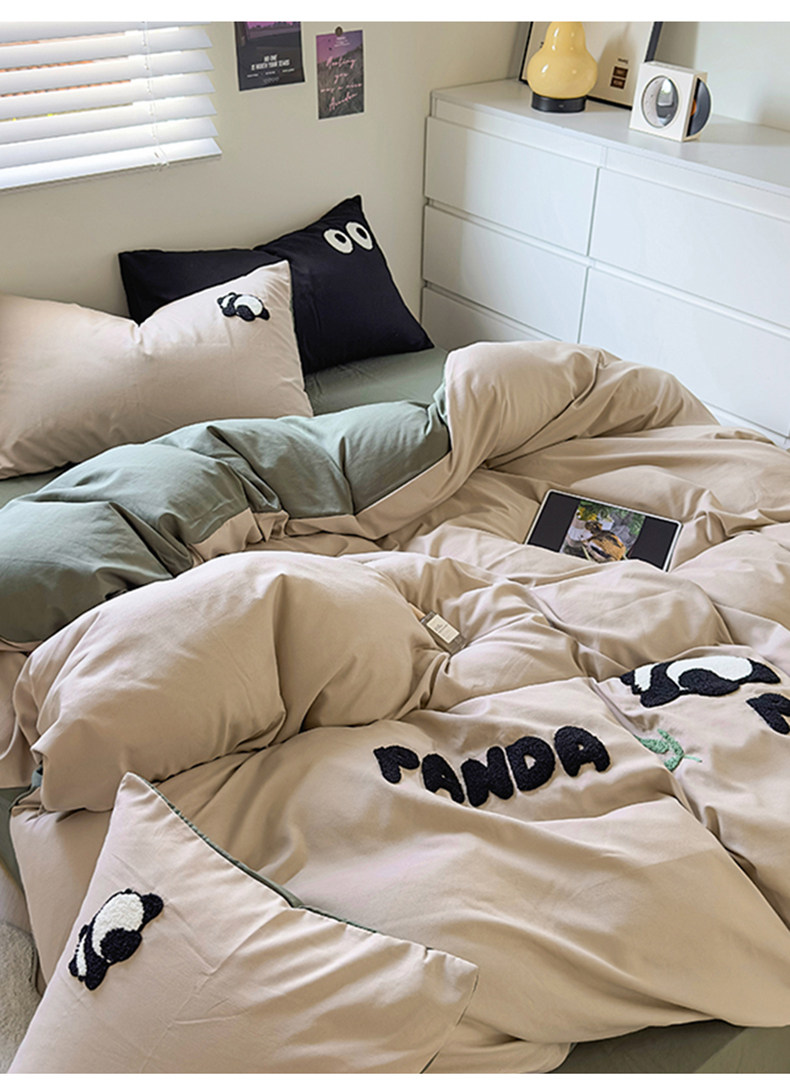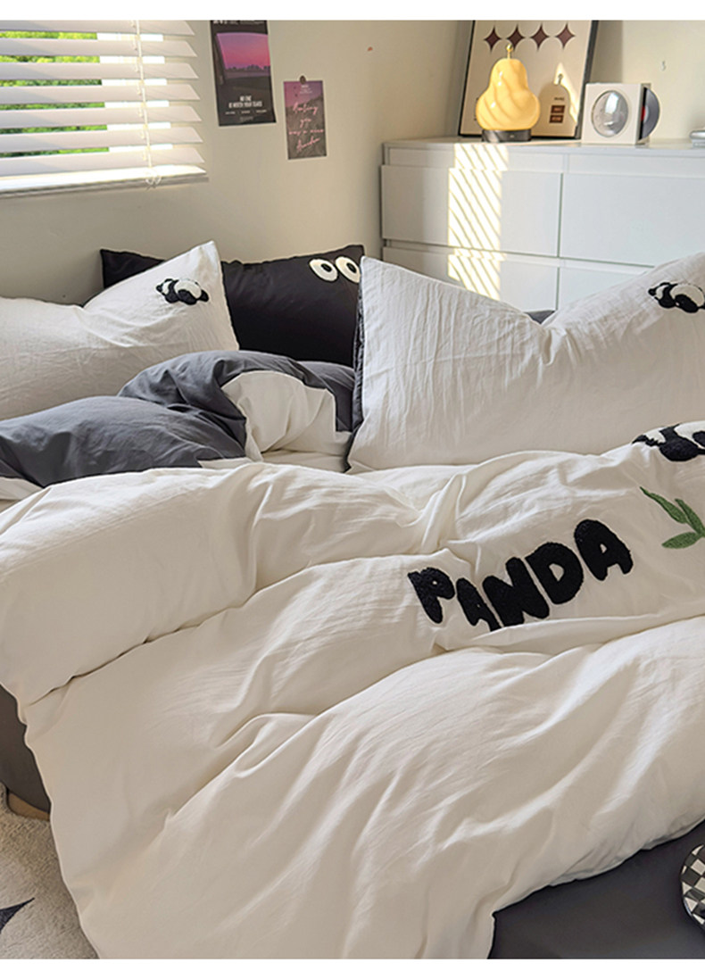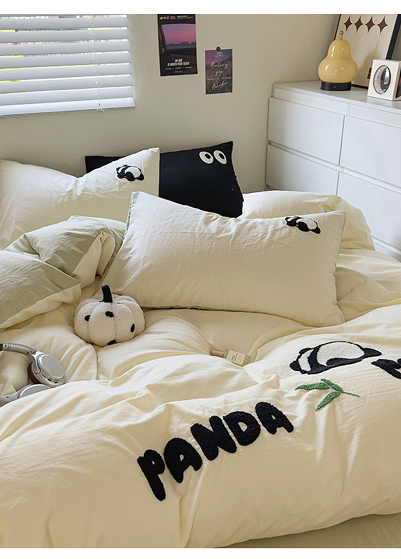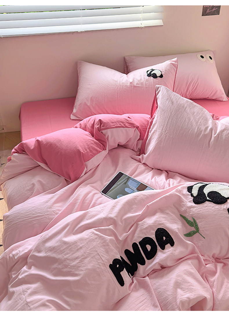 水洗纯棉四件套a类母婴级全棉毛巾绣被套款柔软亲肤ins风床单床笠