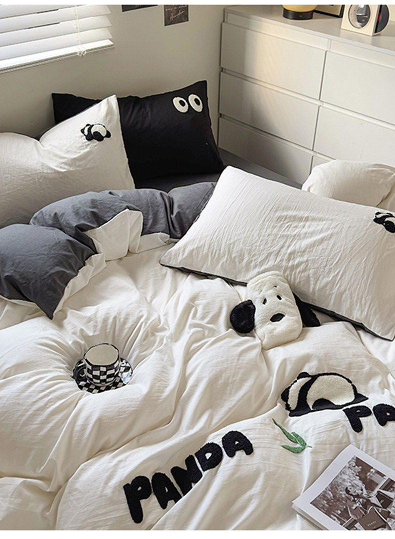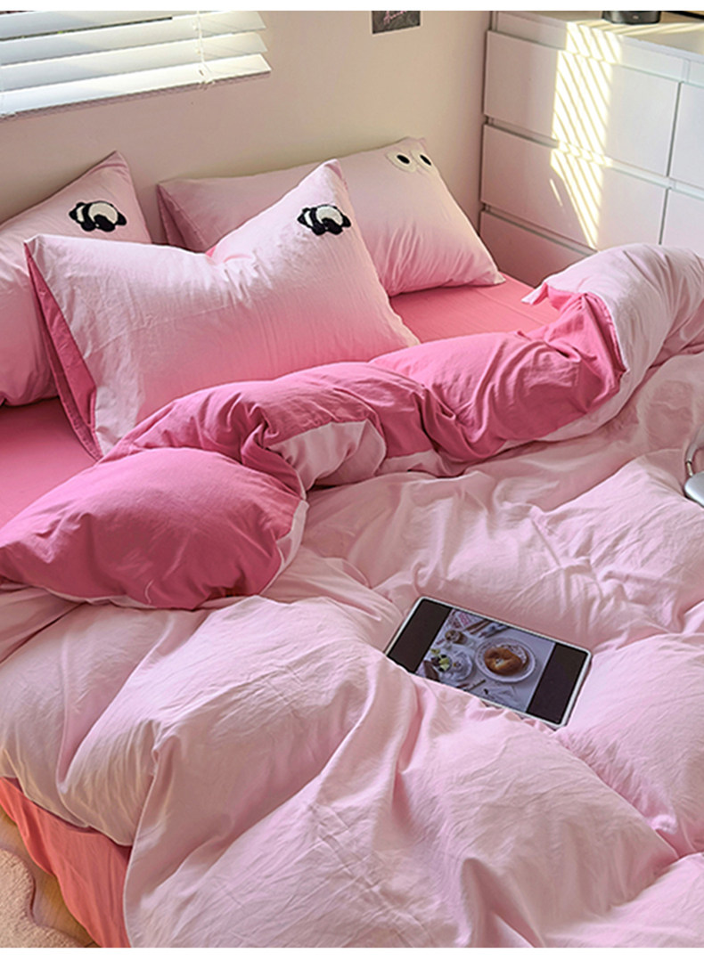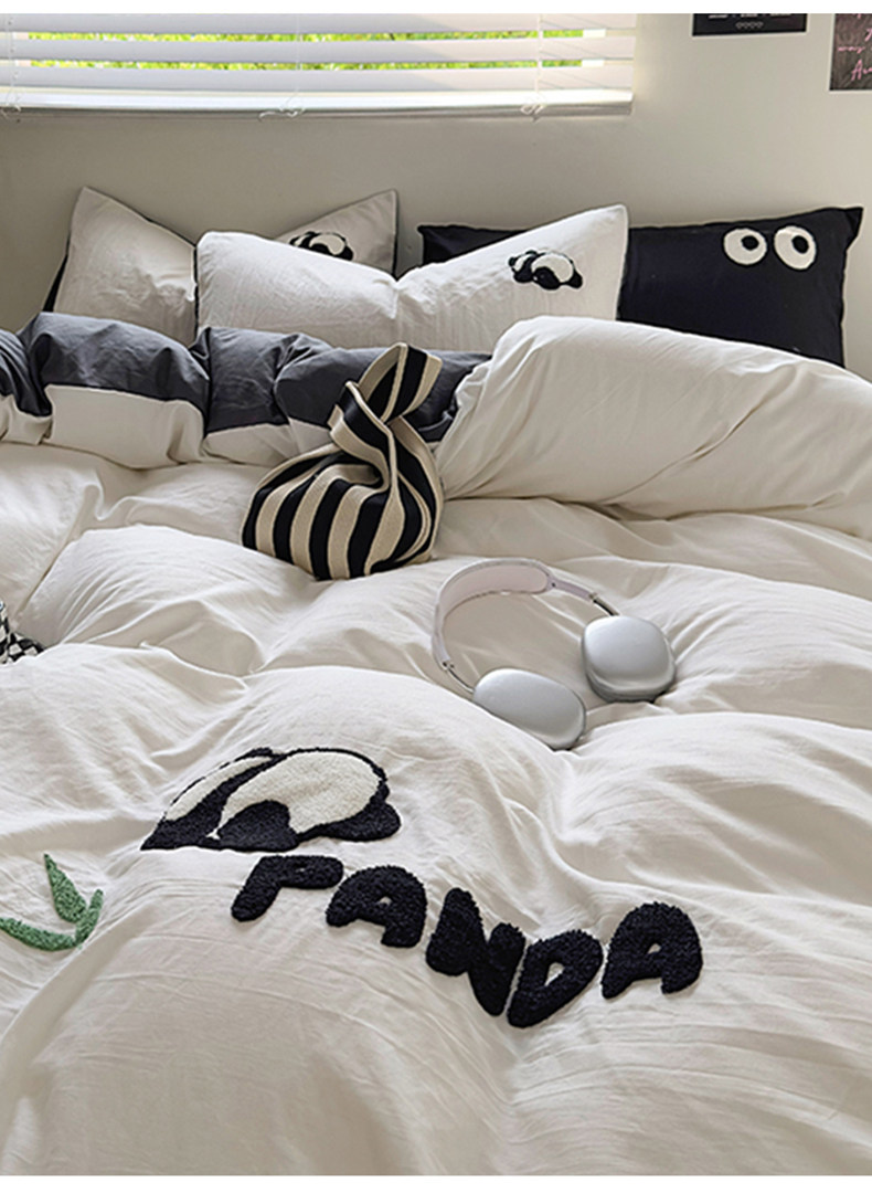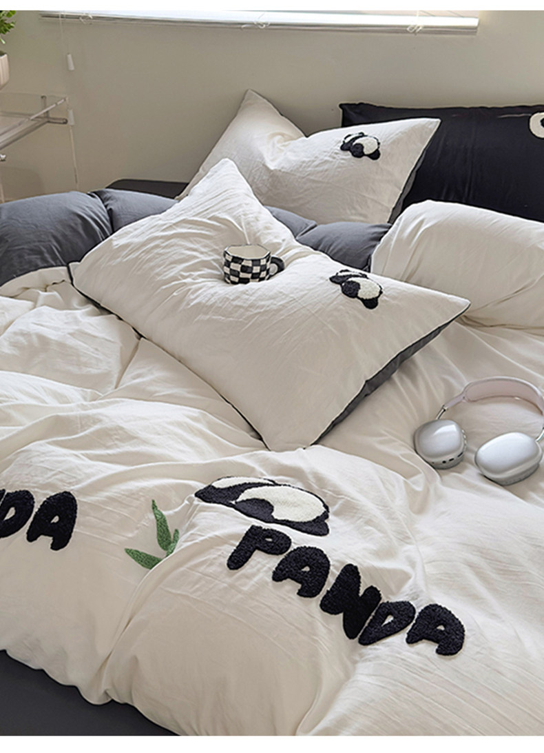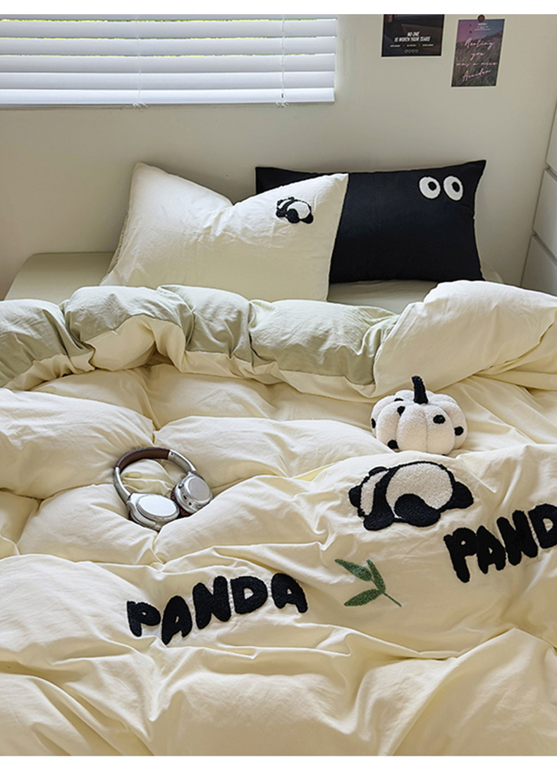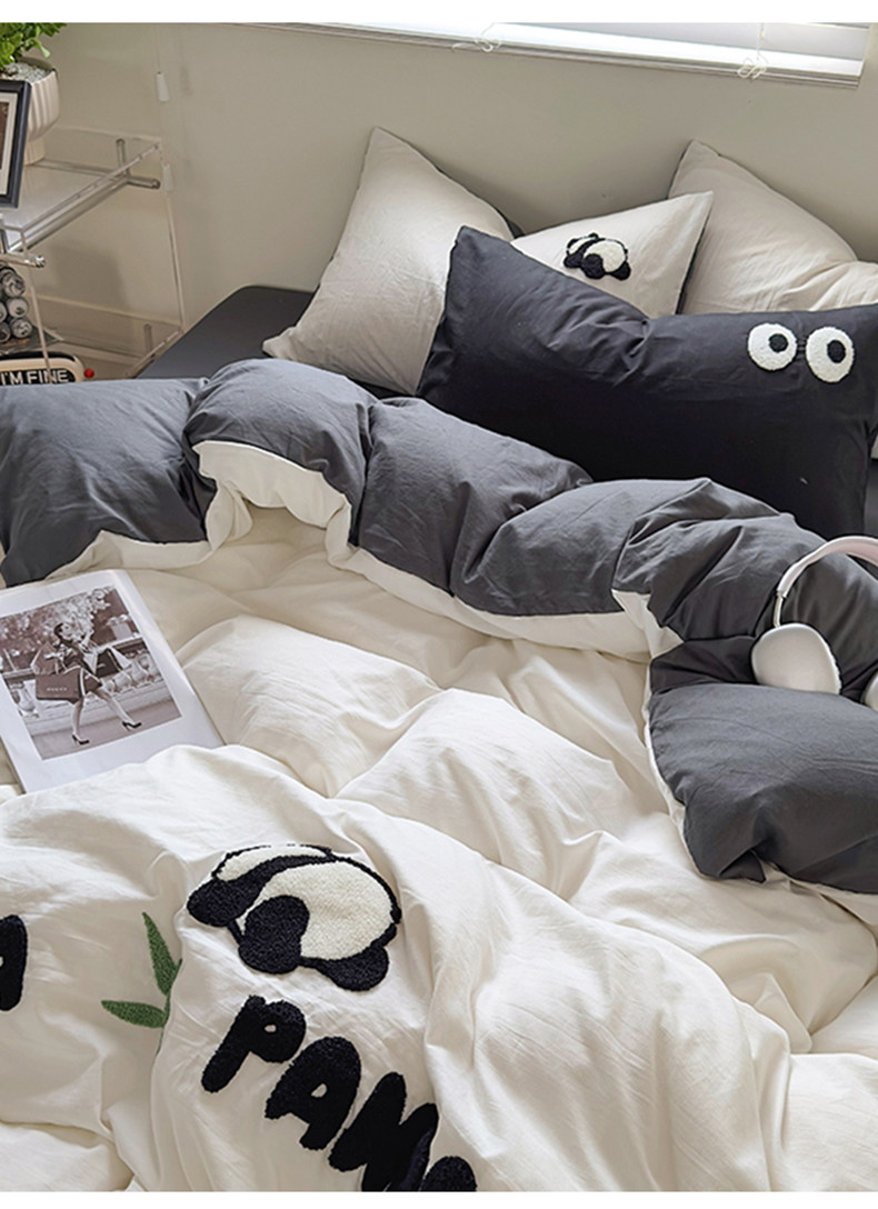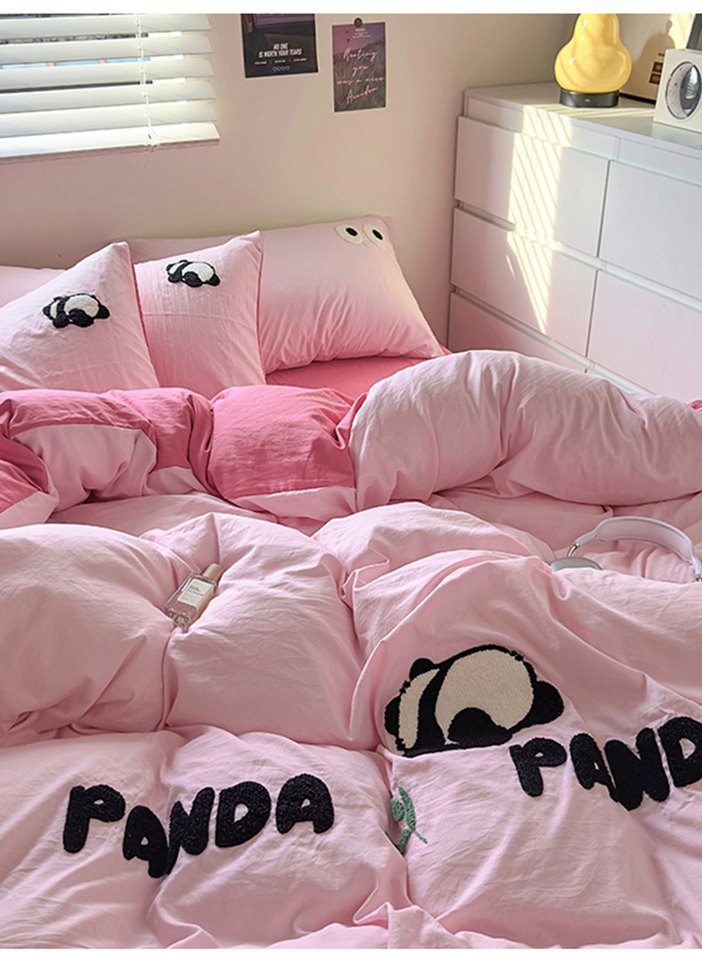 水洗纯棉四件套a类母婴级全棉毛巾绣被套款柔软亲肤ins风床单床笠