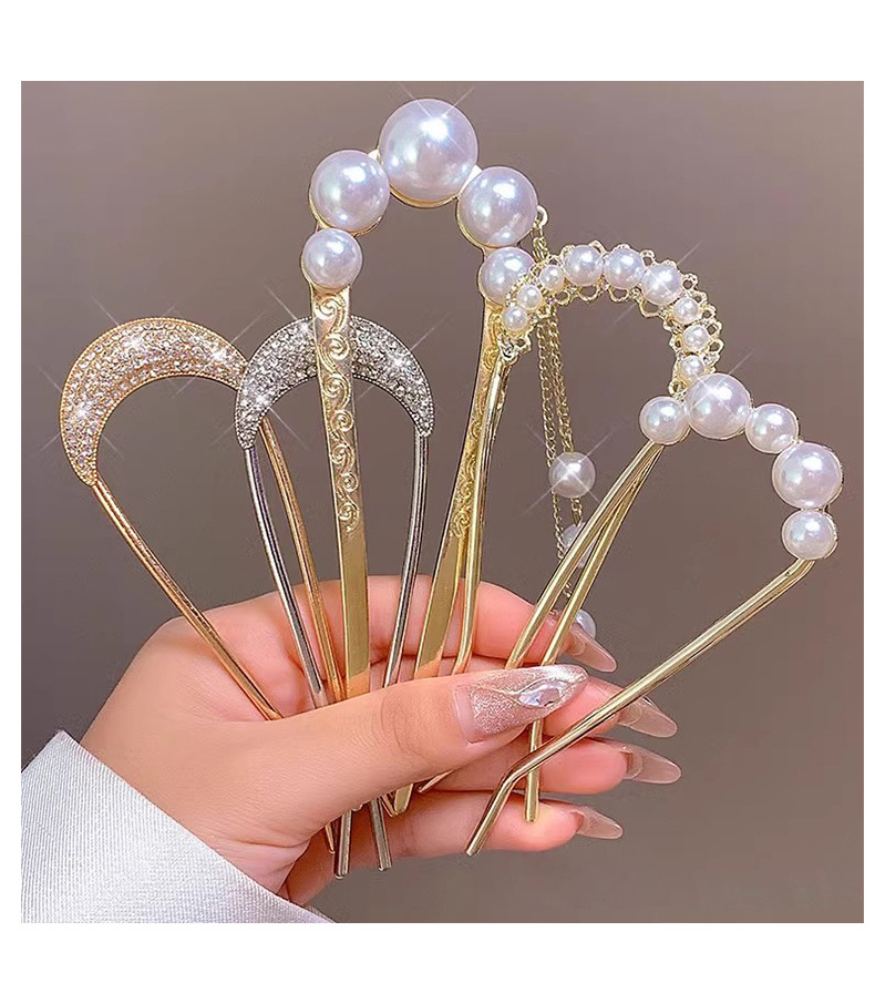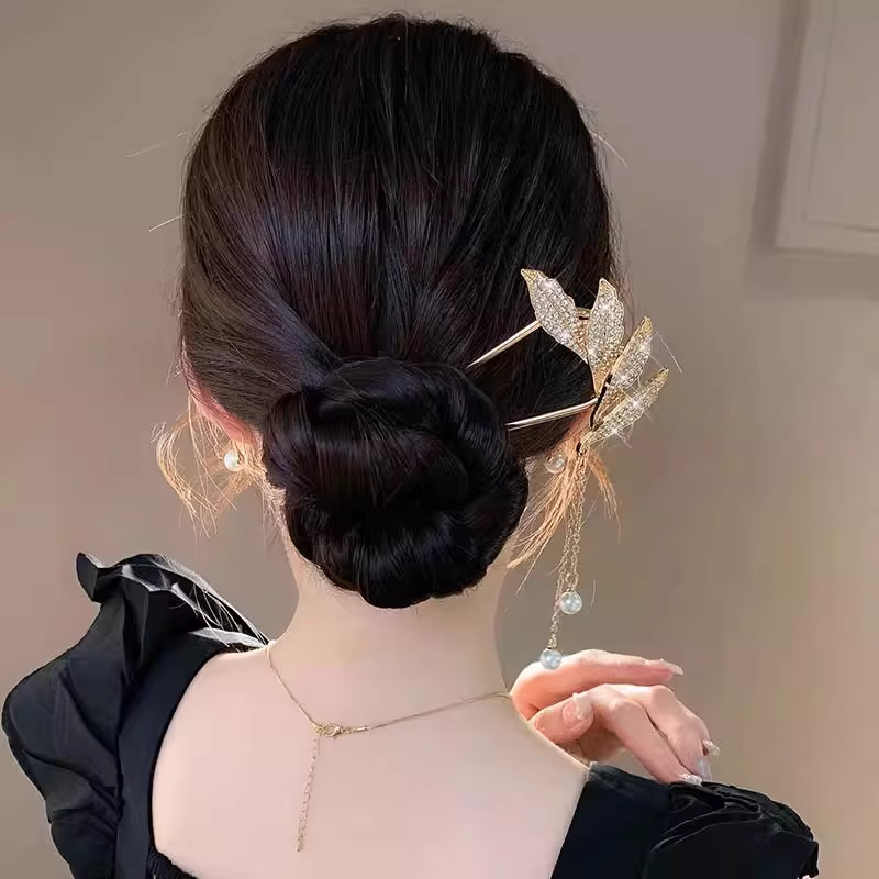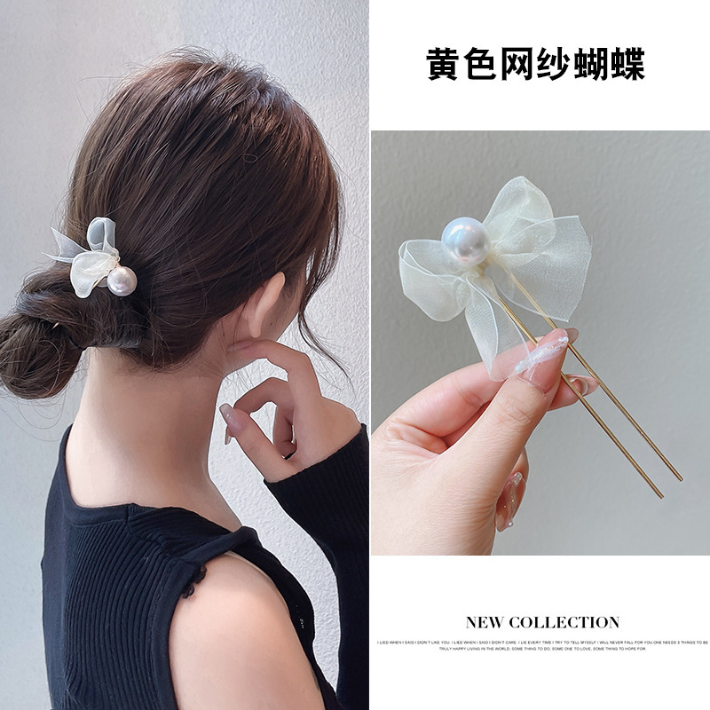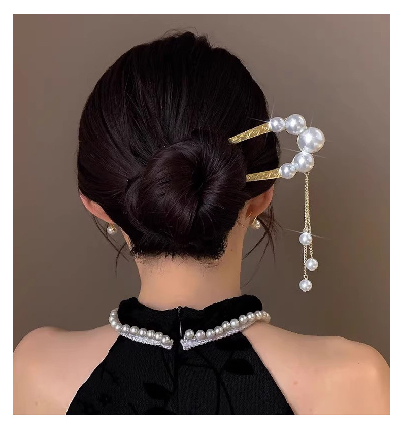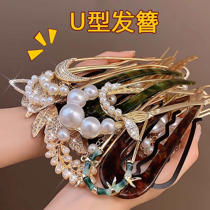 国风珍珠流苏u型发簪女高级感新中式古风步摇簪子发钗马面裙头饰