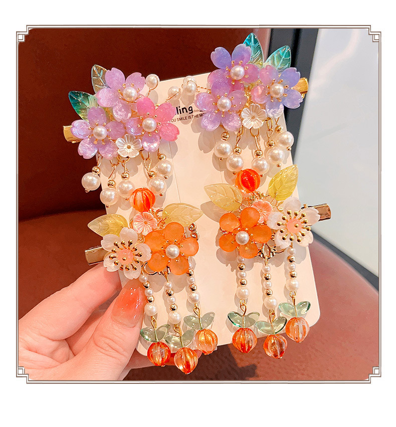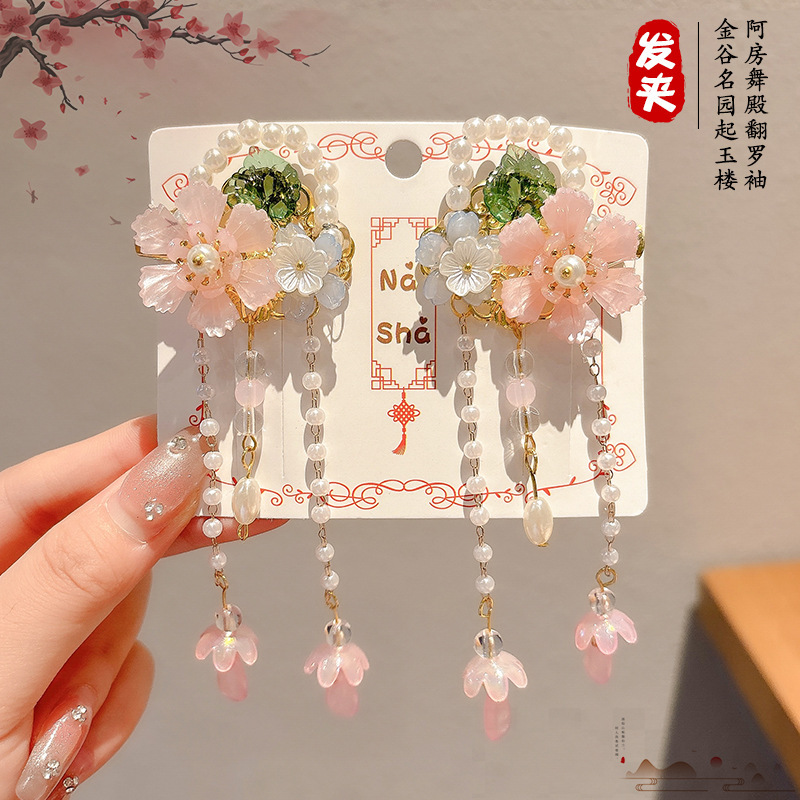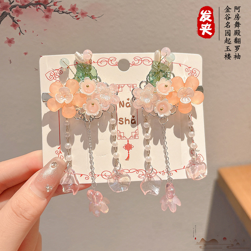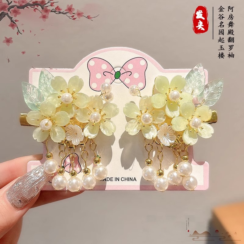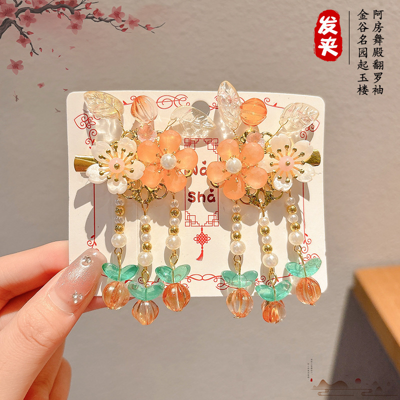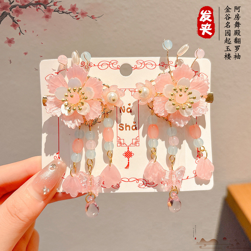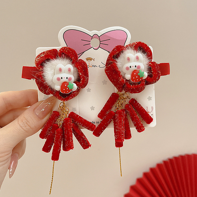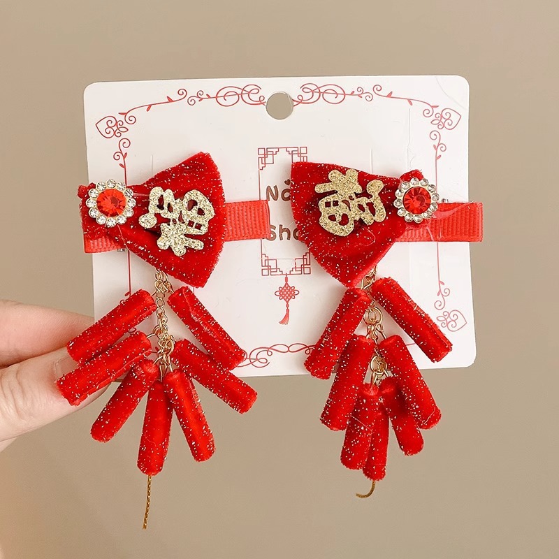 儿童中国风红色发夹侧边高级感头饰发卡宝宝过年流苏汉服古风发饰