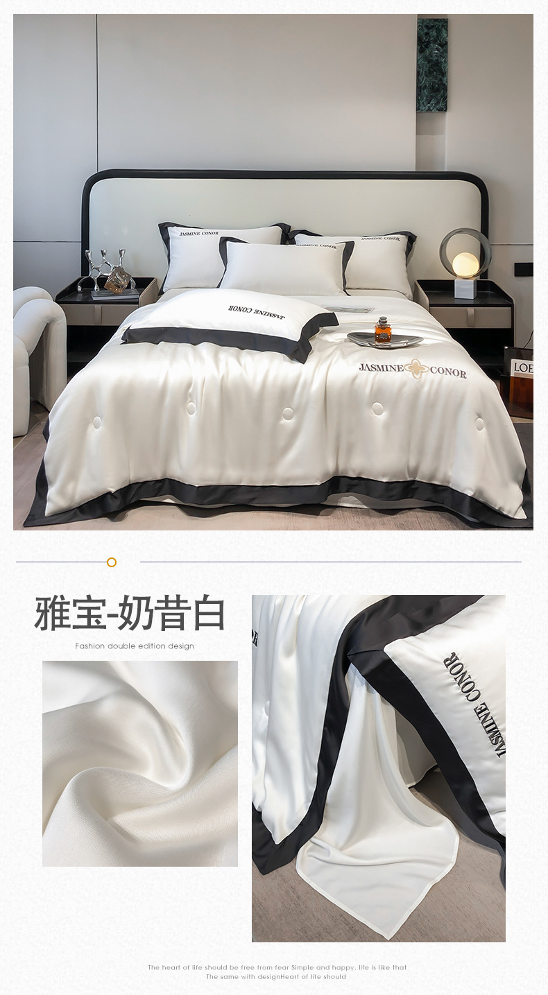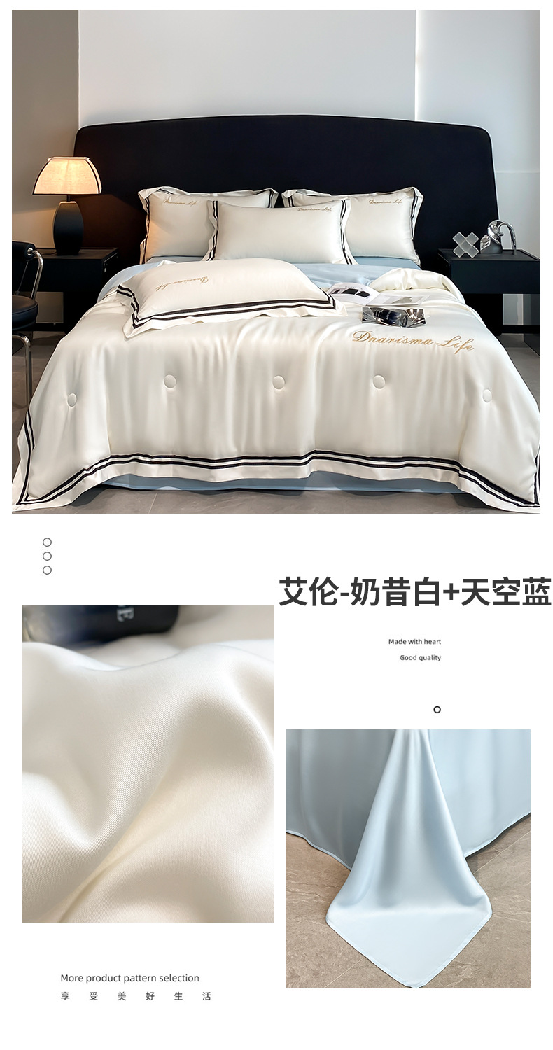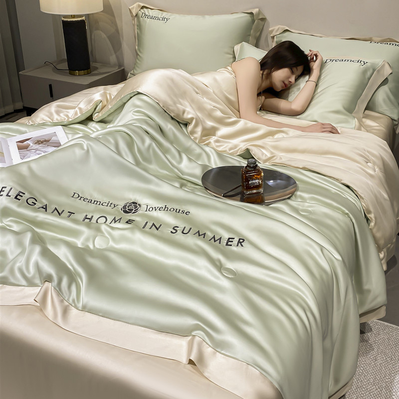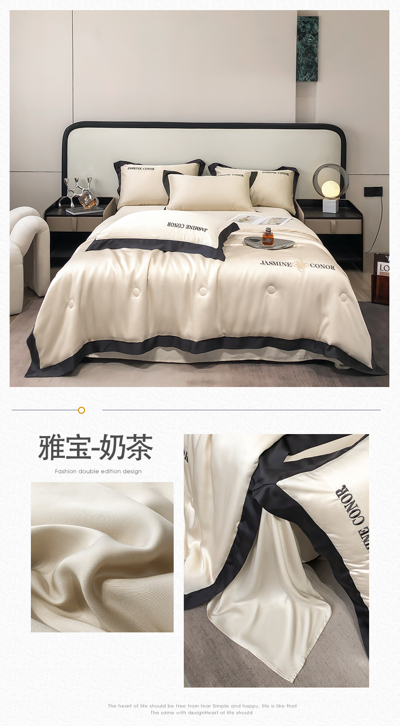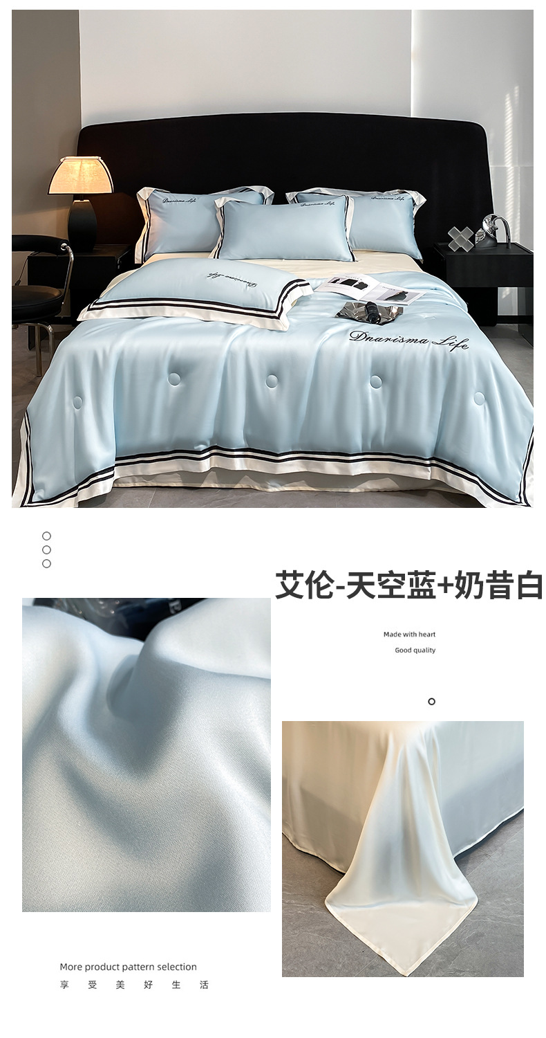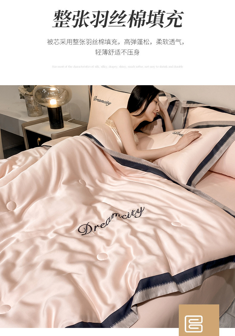 爆款轻奢数码宽边冰丝刺绣夏被可机洗丝滑裸睡夏被四件套礼品批发