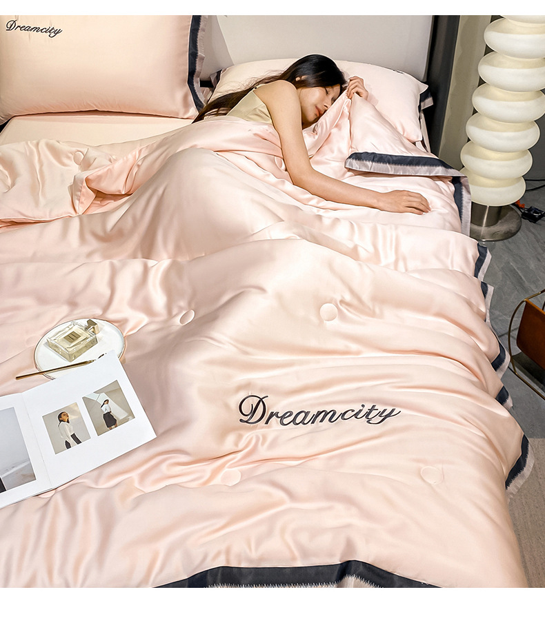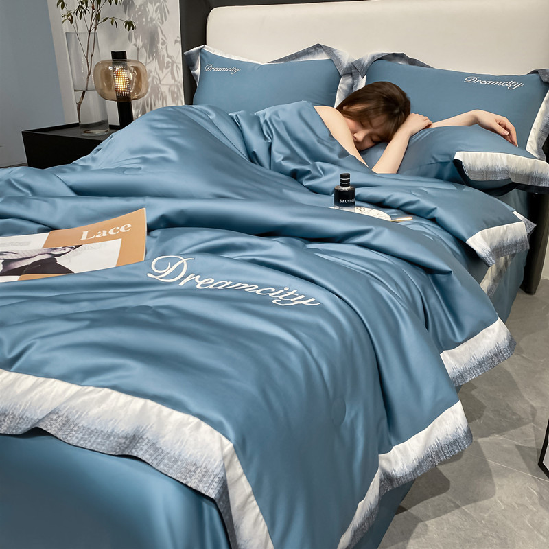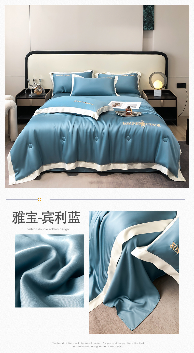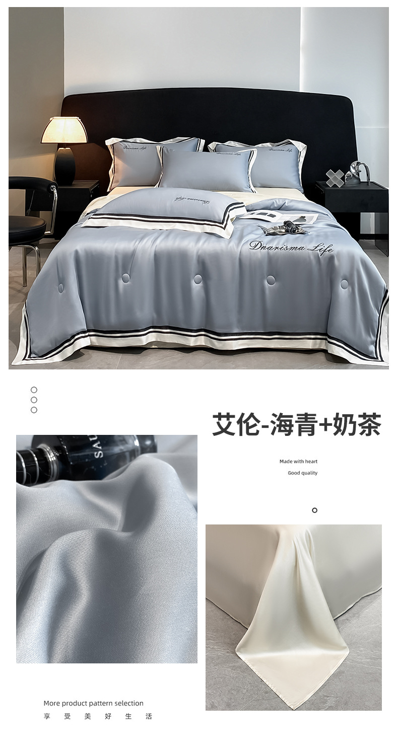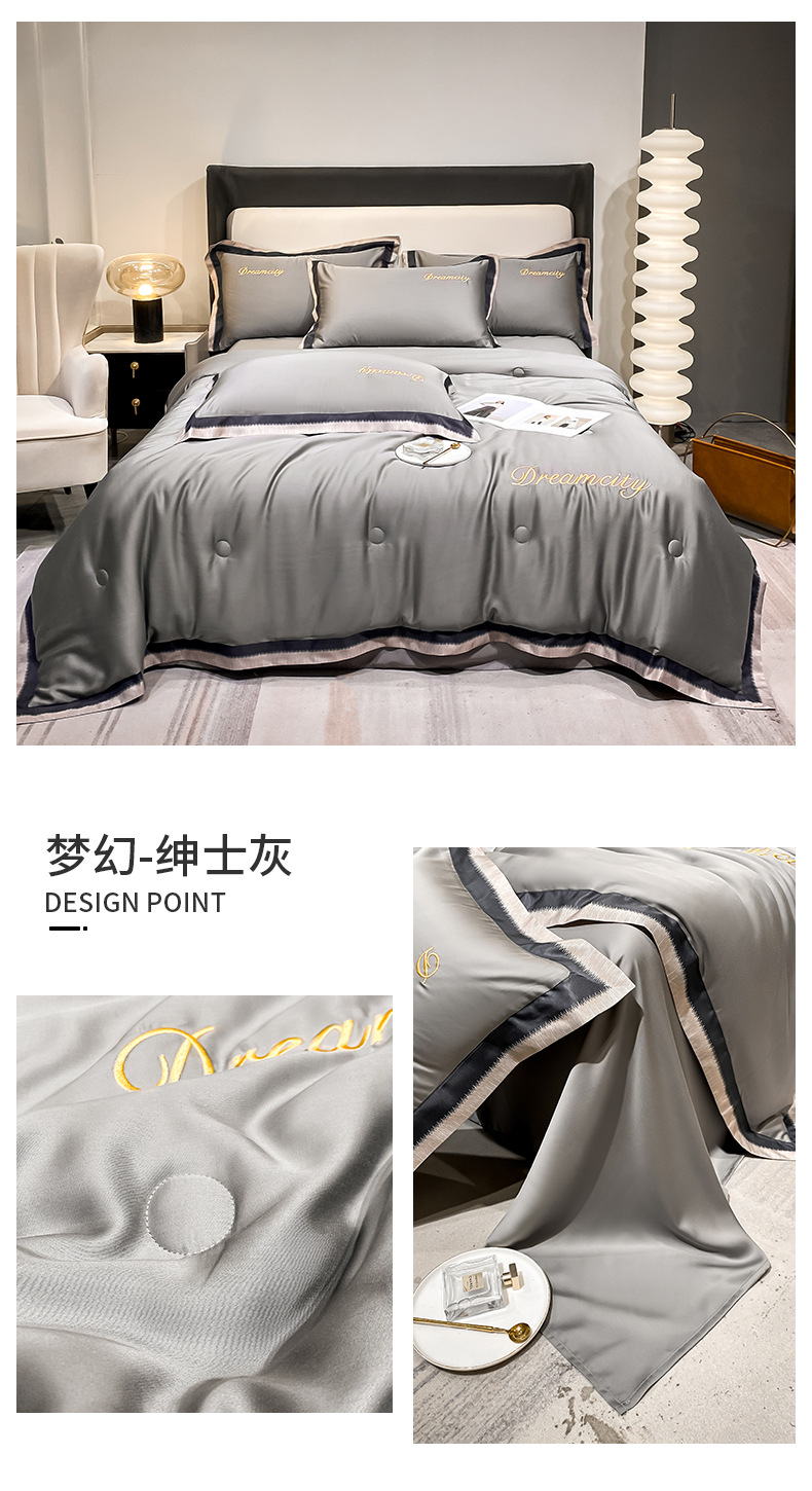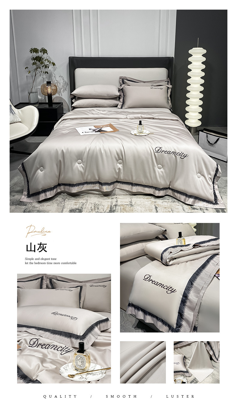 爆款轻奢数码宽边冰丝刺绣夏被可机洗丝滑裸睡夏被四件套礼品批发
