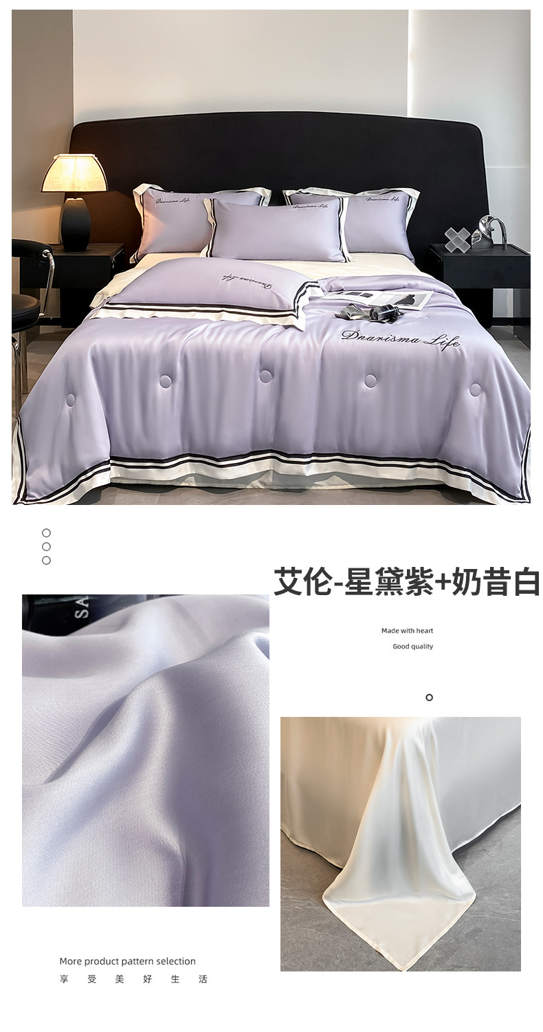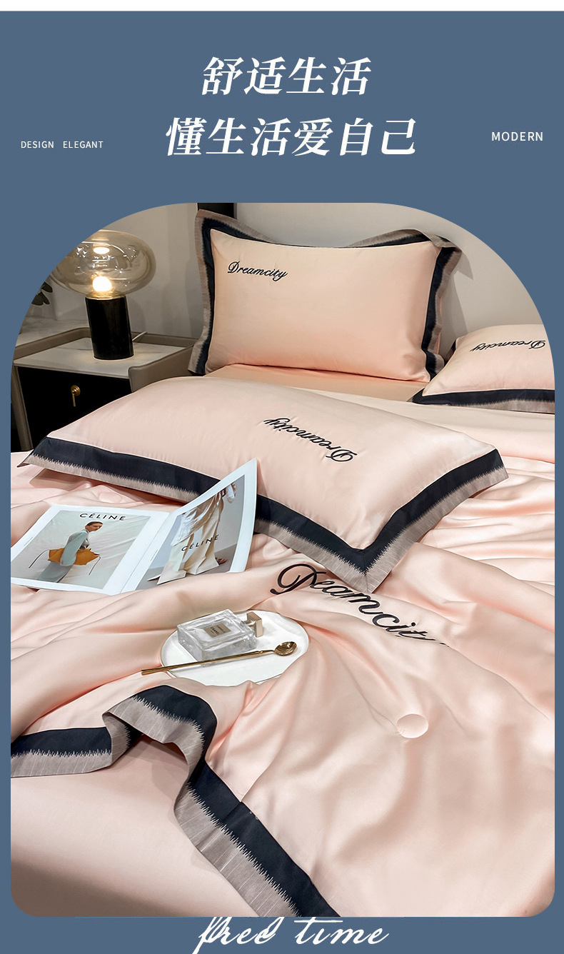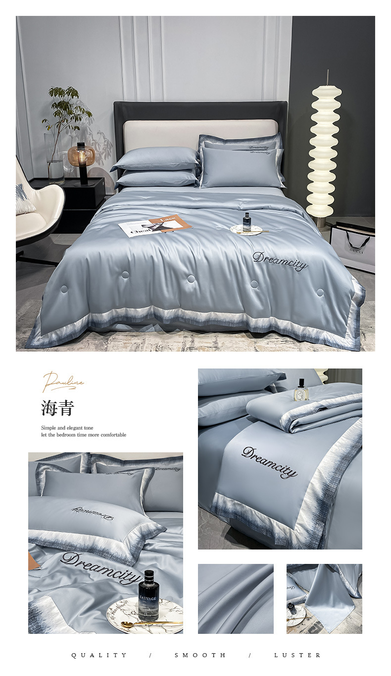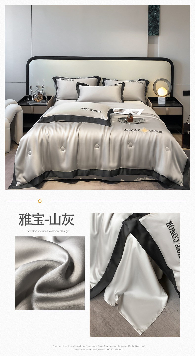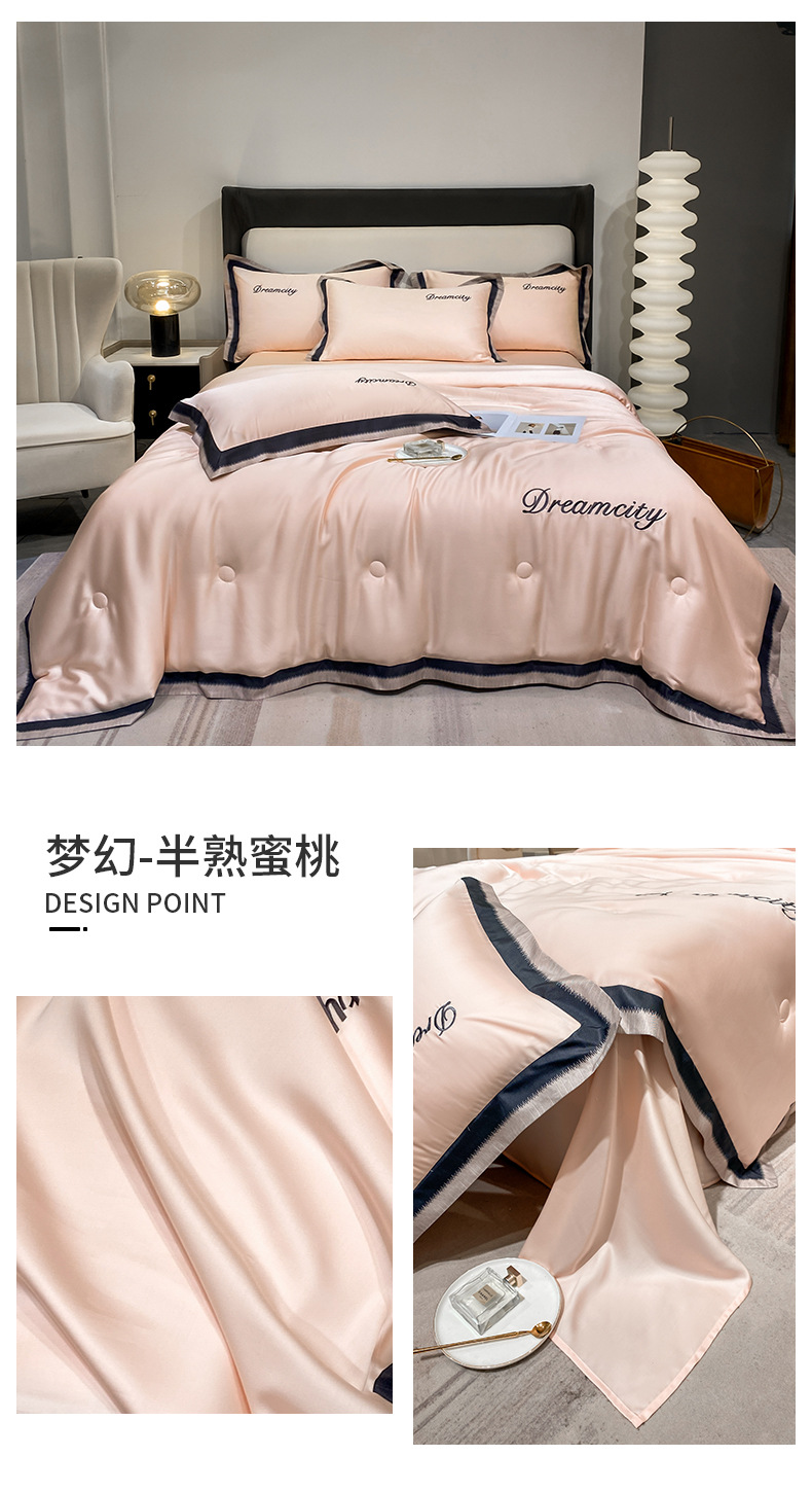 爆款轻奢数码宽边冰丝刺绣夏被可机洗丝滑裸睡夏被四件套礼品批发