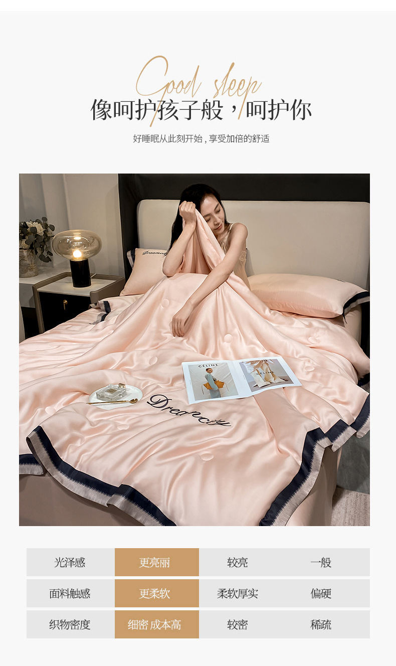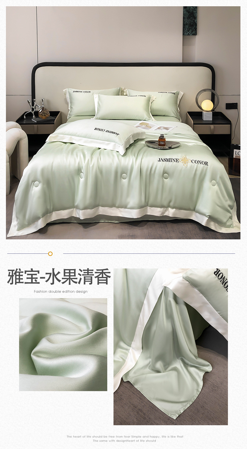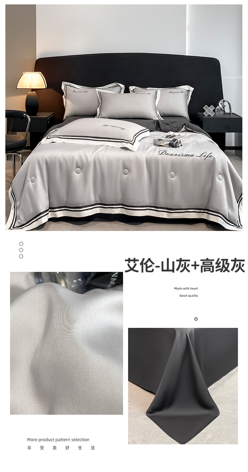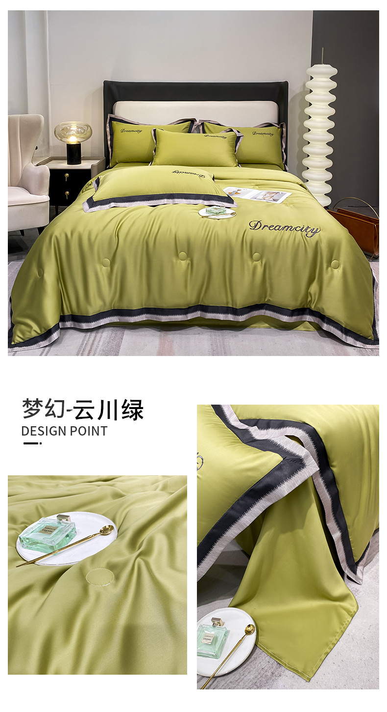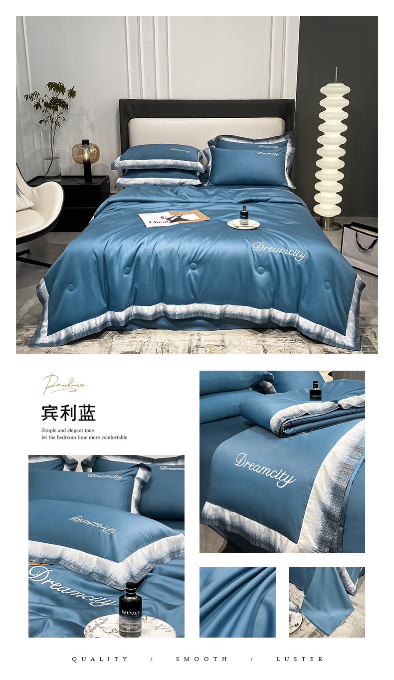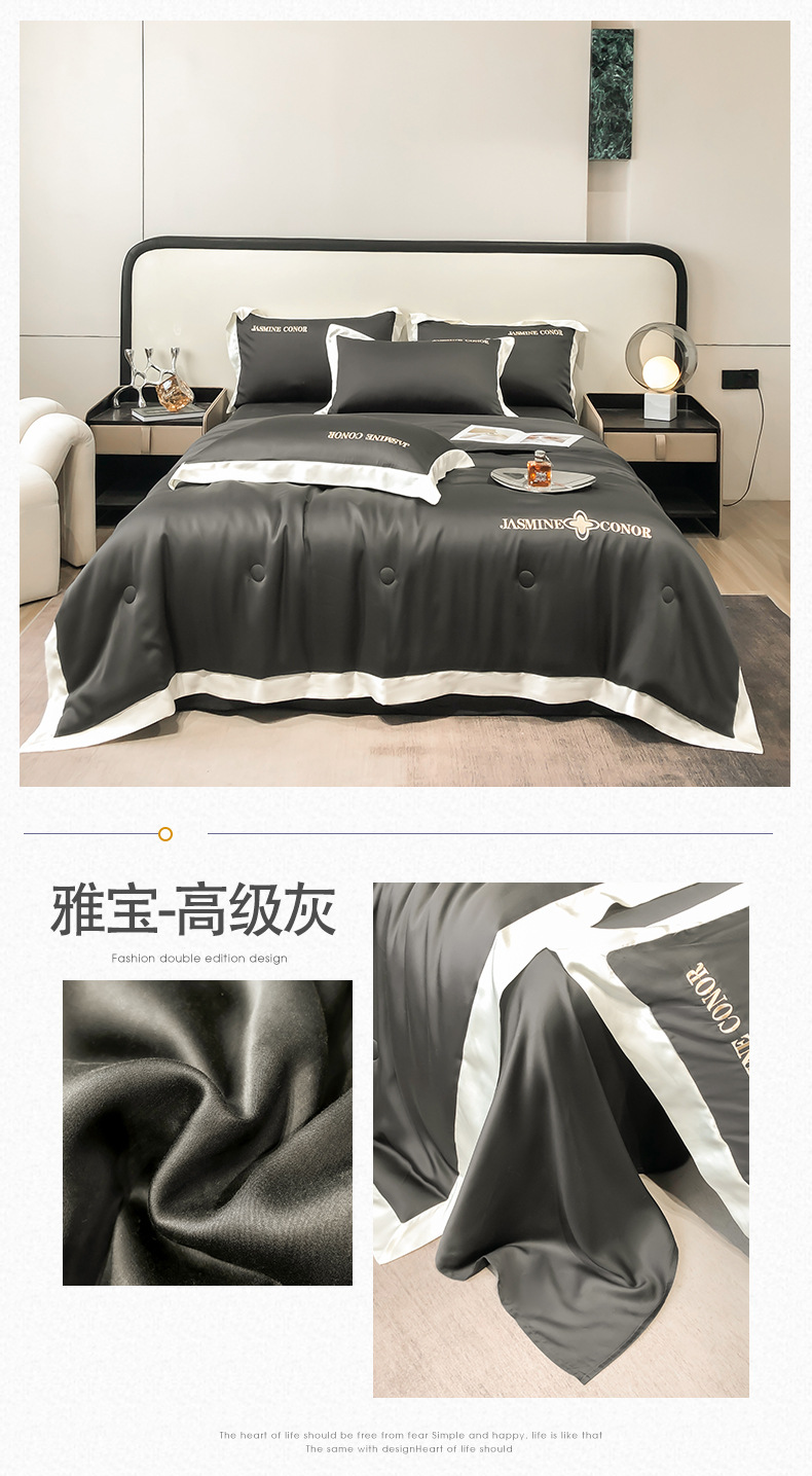 爆款轻奢数码宽边冰丝刺绣夏被可机洗丝滑裸睡夏被四件套礼品批发