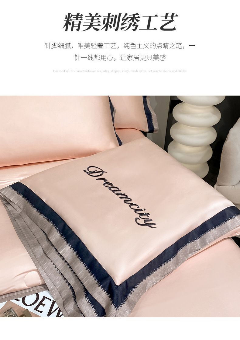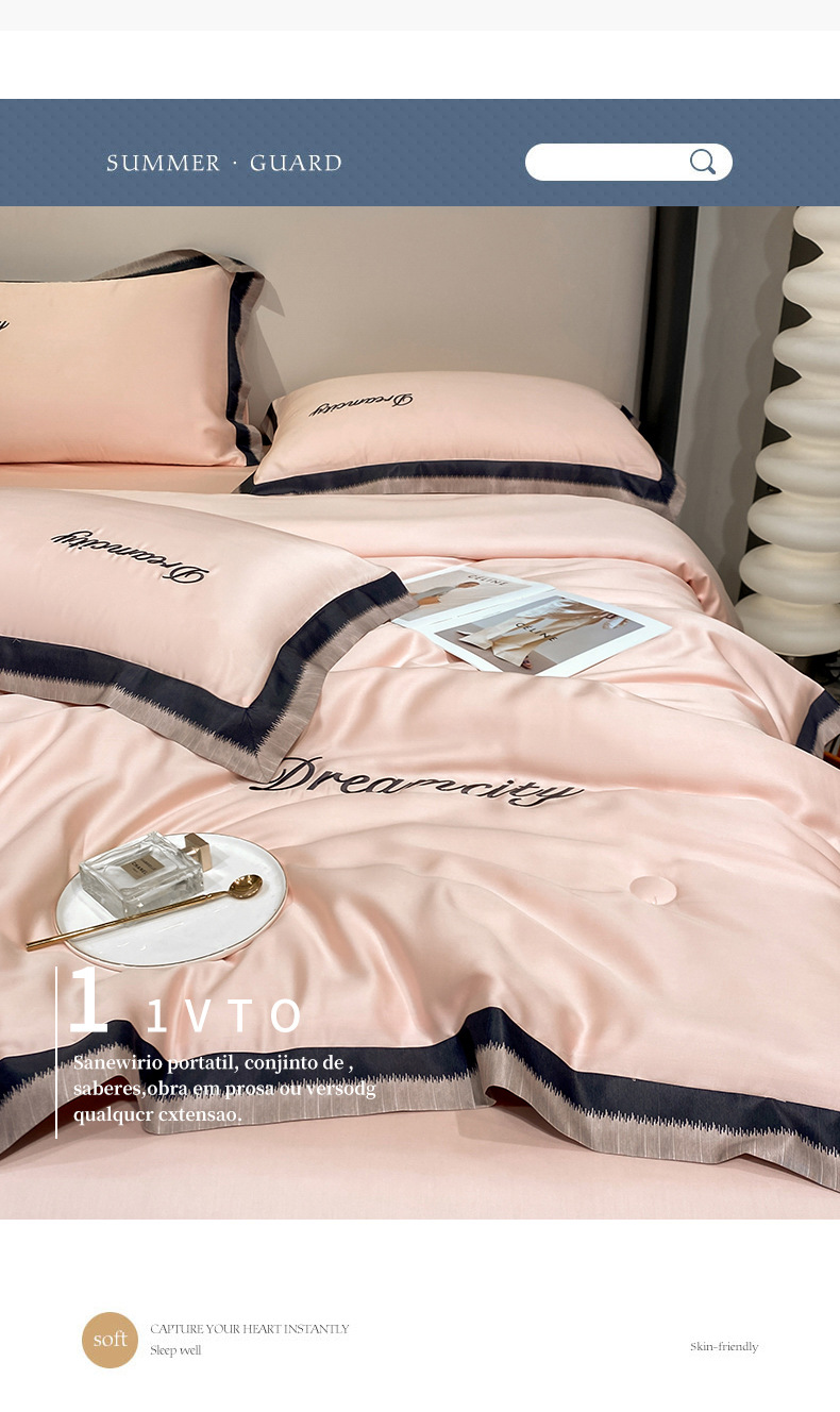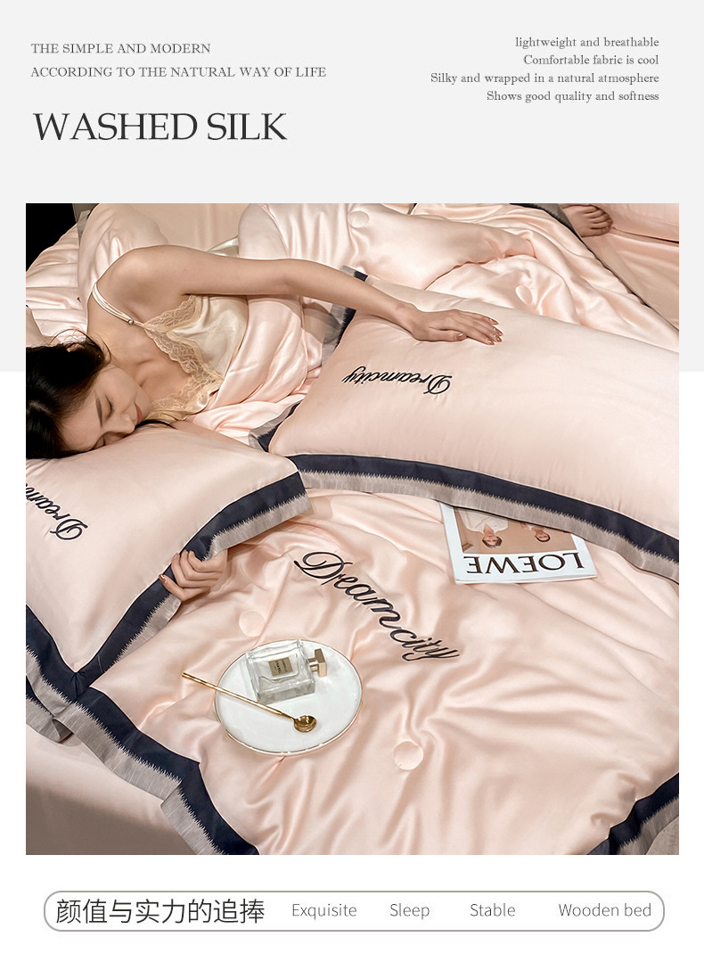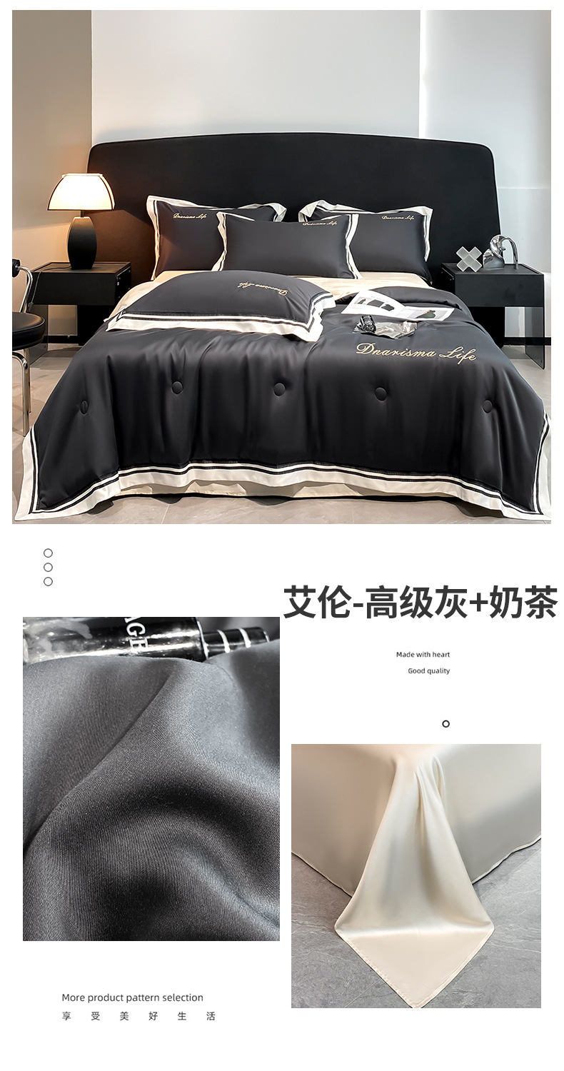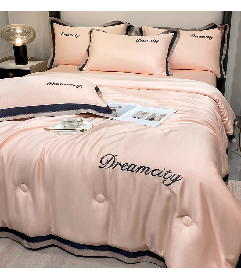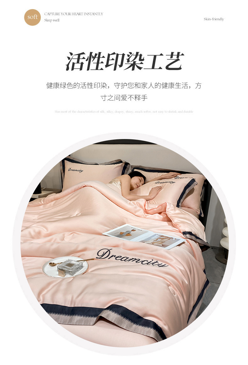 爆款轻奢数码宽边冰丝刺绣夏被可机洗丝滑裸睡夏被四件套礼品批发