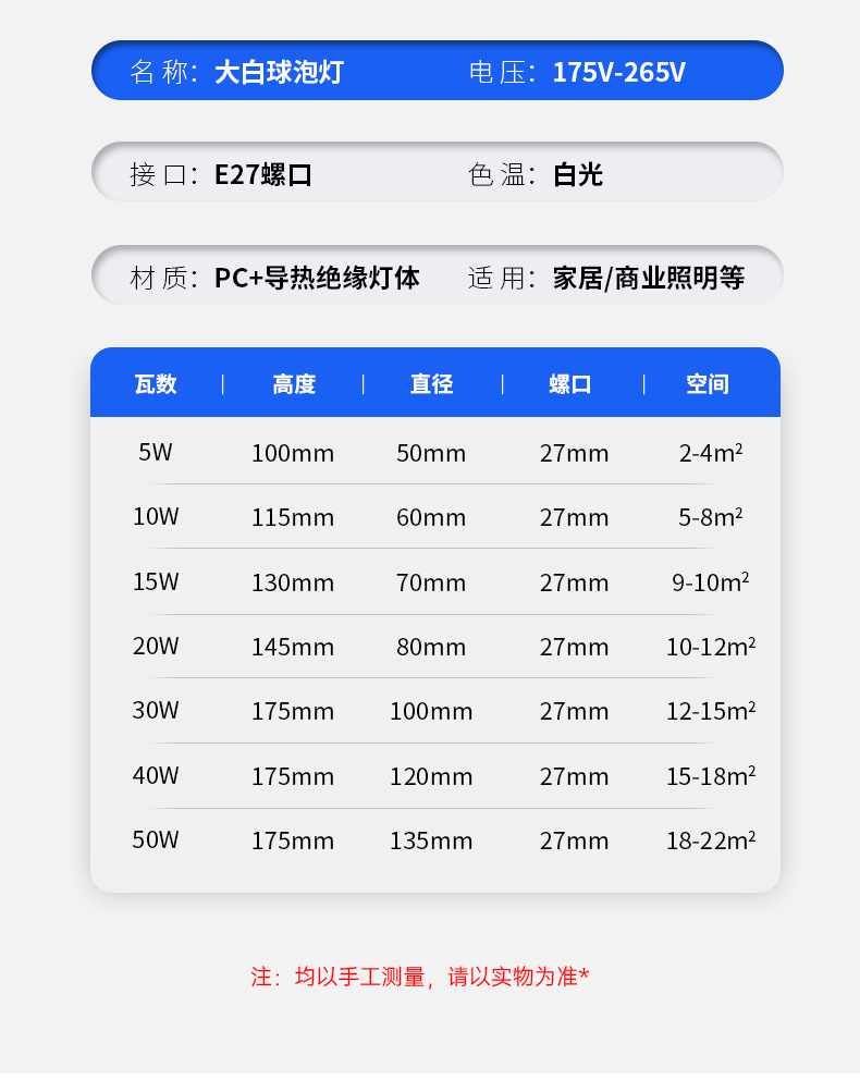 | screw e27 [bare light] white bulb(螺口E27【裸灯】大白球泡灯) | USD $1.39 | 43934 piece available |