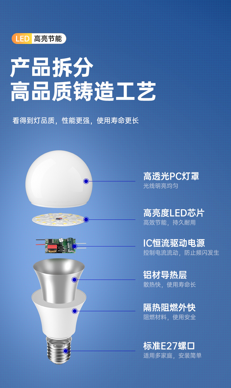 led灯泡批发e27螺口跨境电商节能球泡灯家用照明恒流110v宽压灯泡