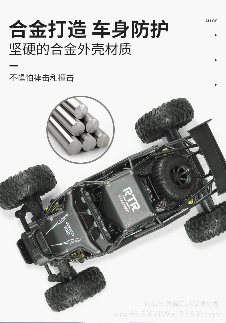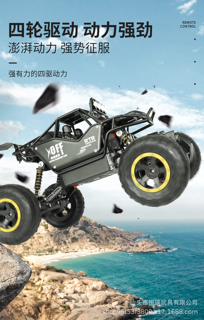 1:16合金攀爬山地大脚怪四驱五通遥控车 2.4G灯光攀岩越野模型车