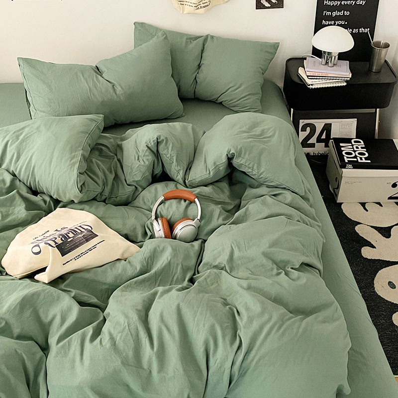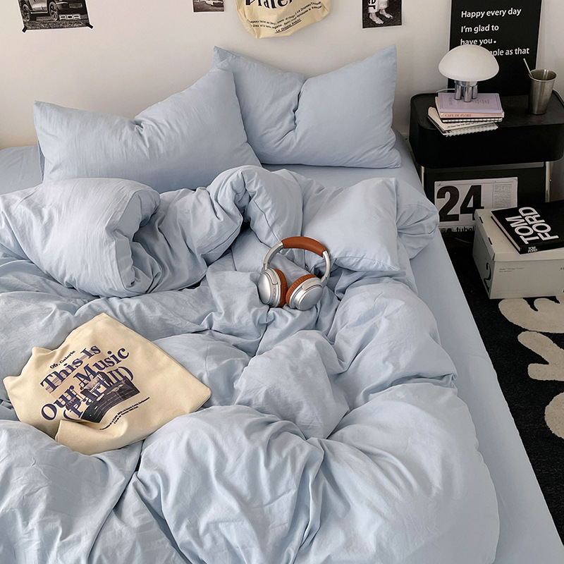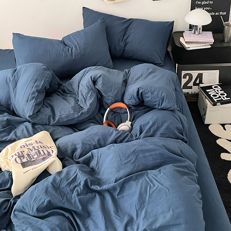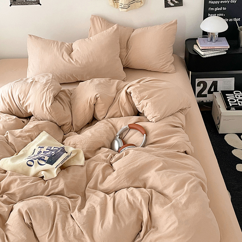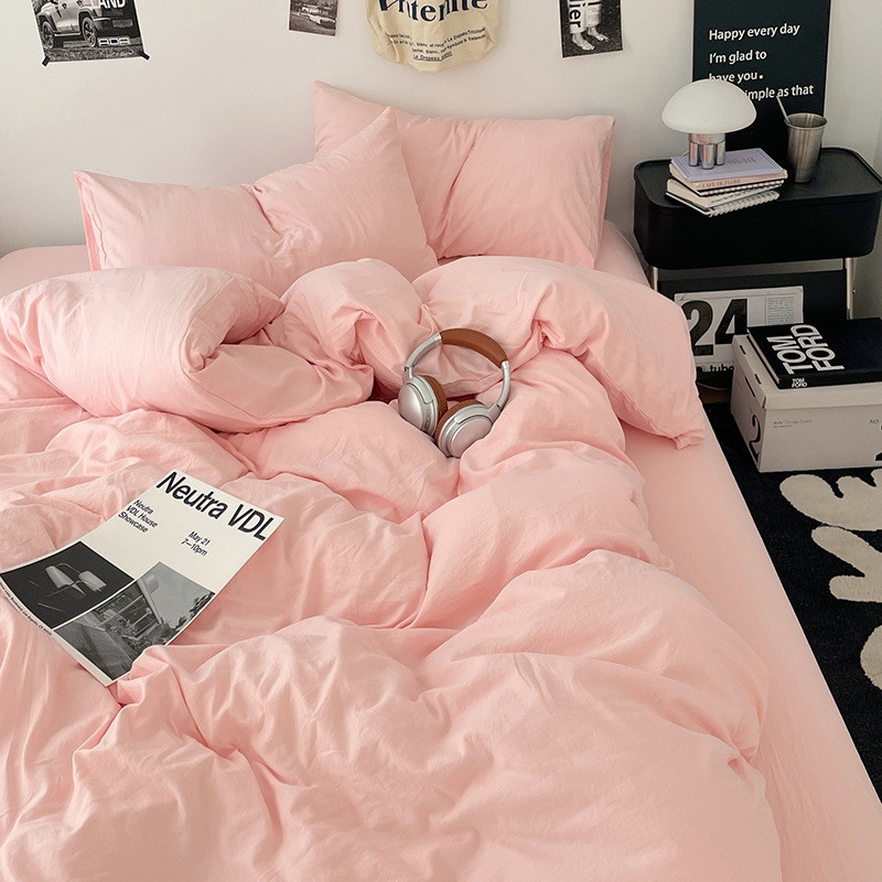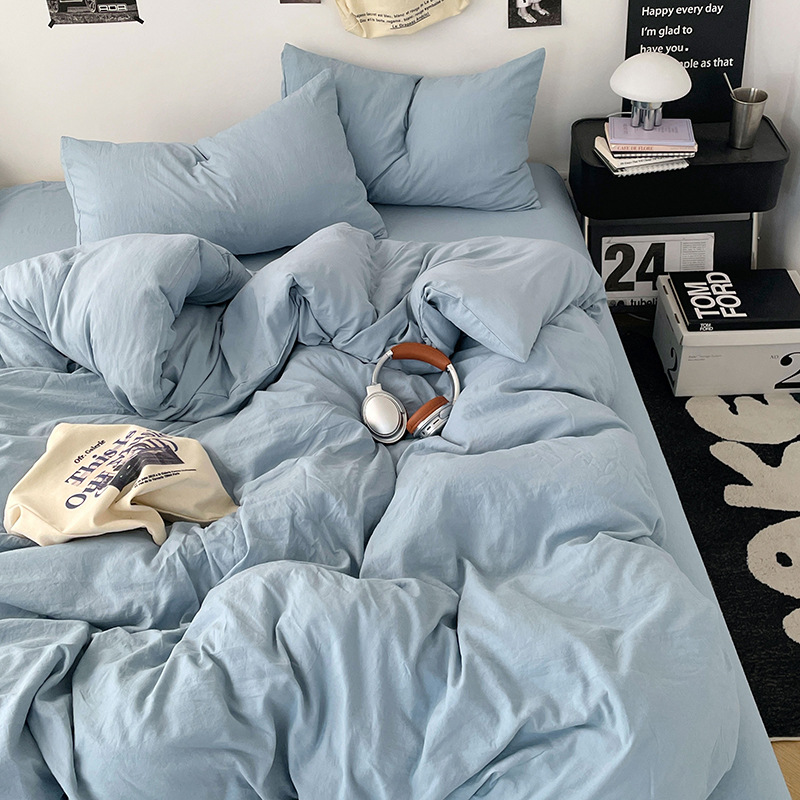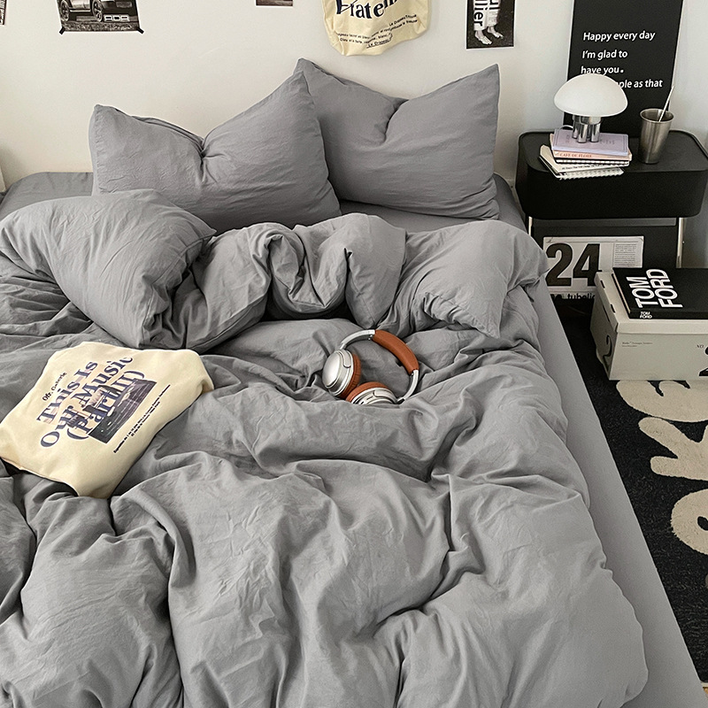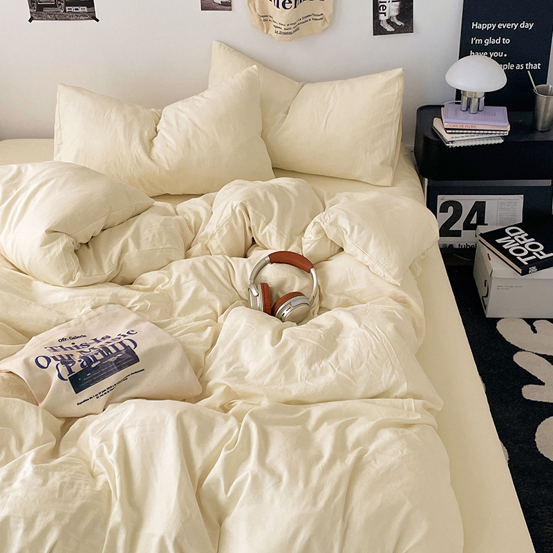 日式无印水洗棉四件套裸睡良品床单被套学生宿舍床上三件套床笠款