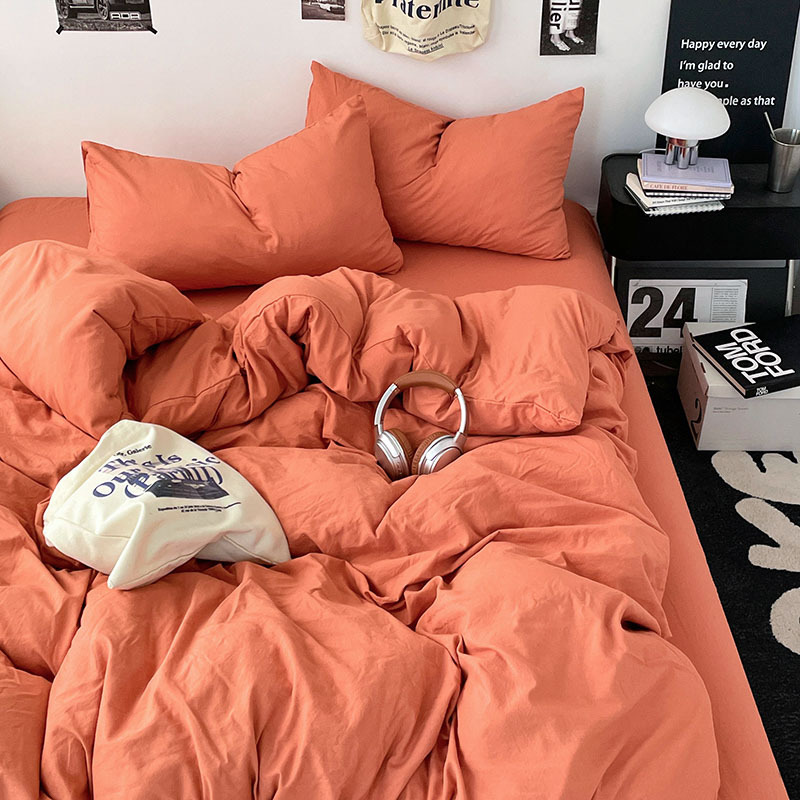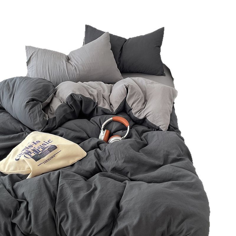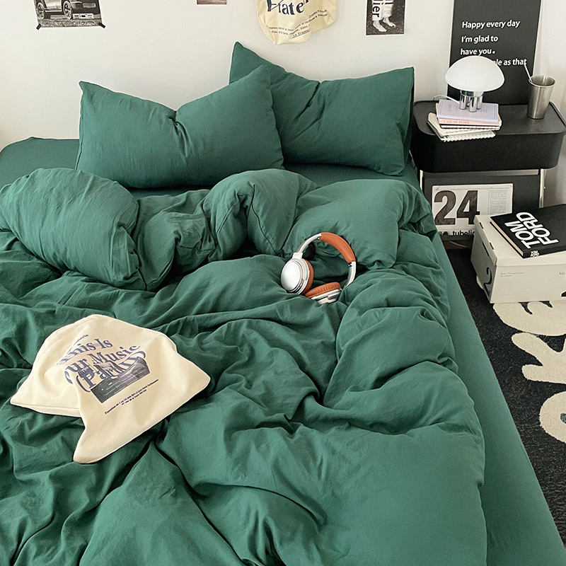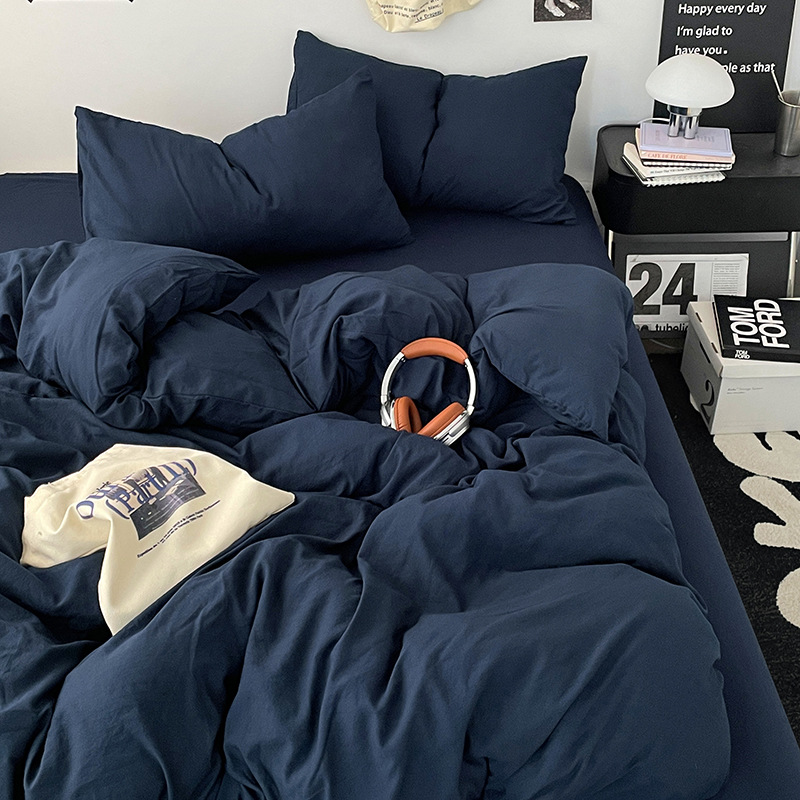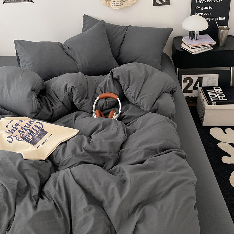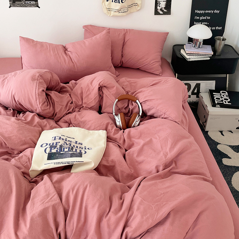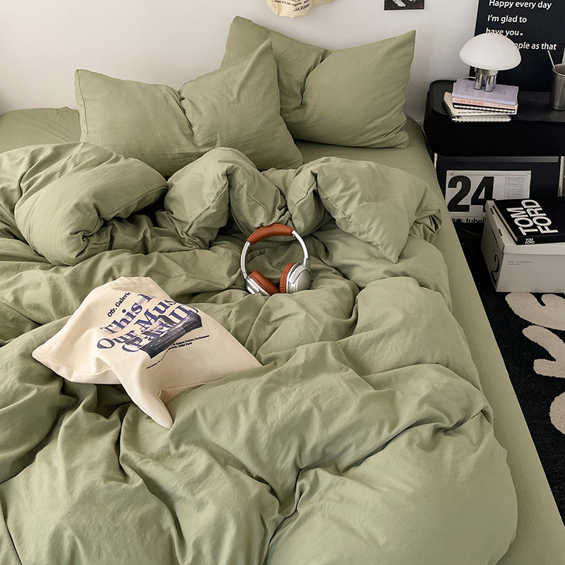 日式无印水洗棉四件套裸睡良品床单被套学生宿舍床上三件套床笠款