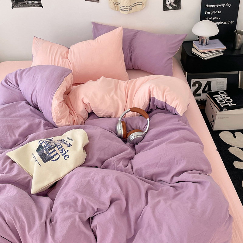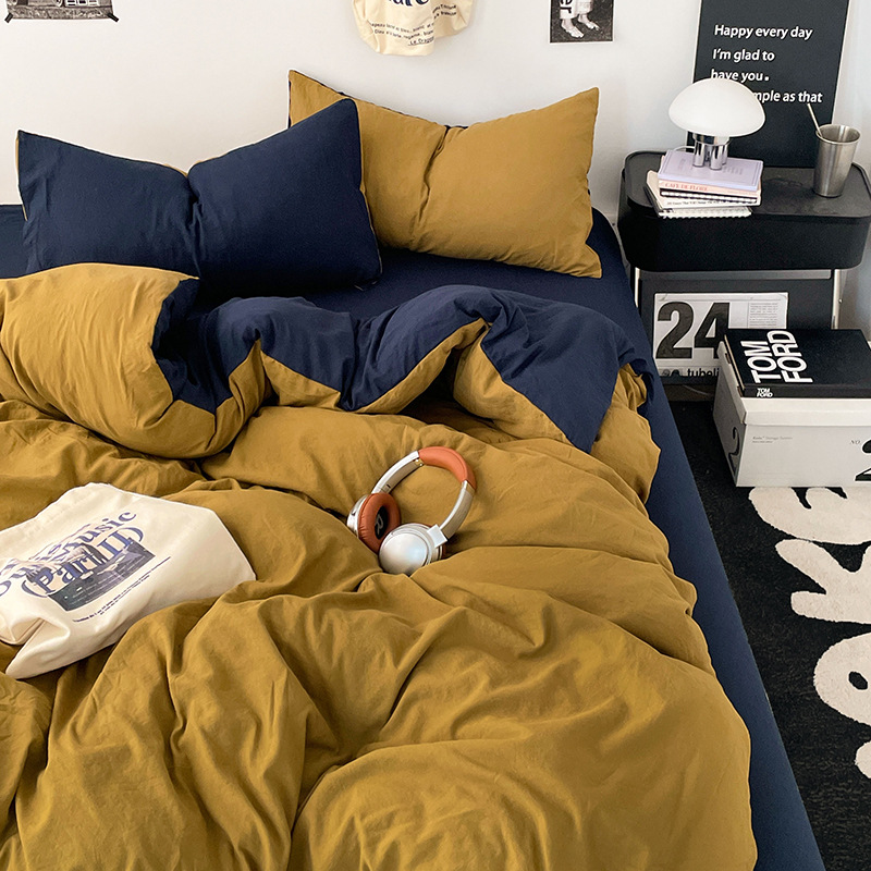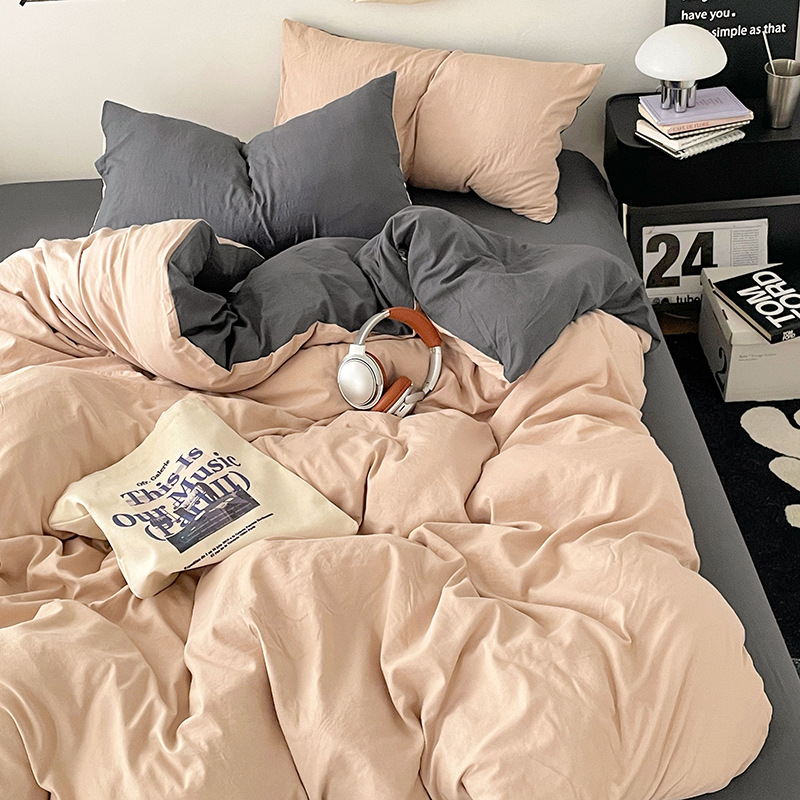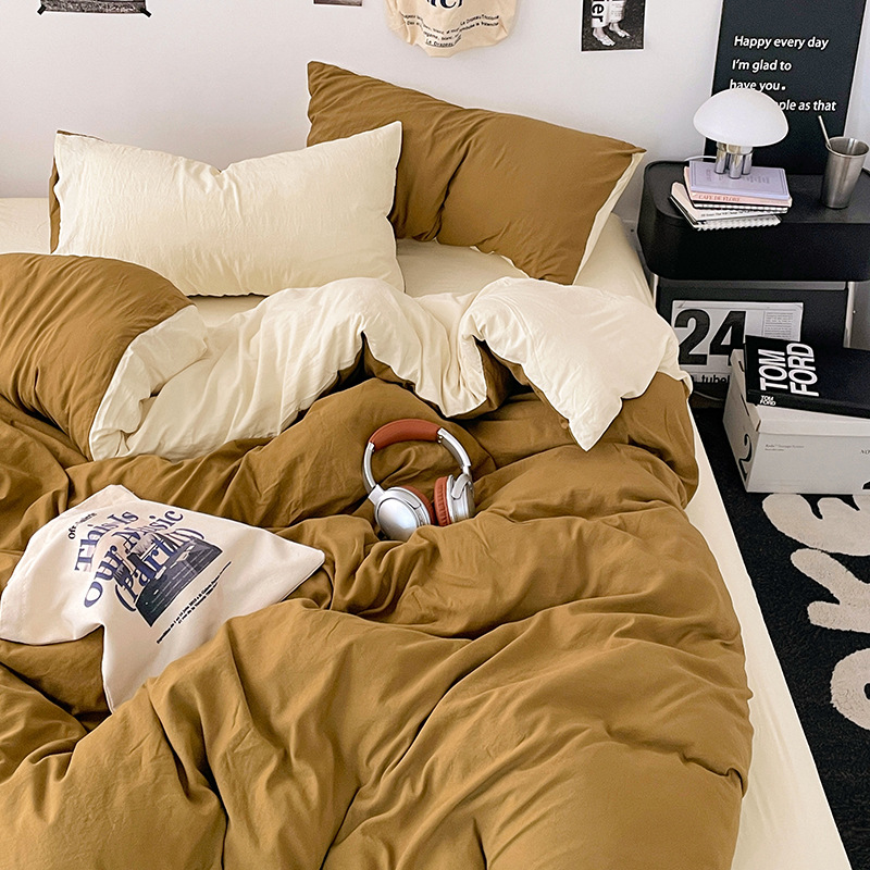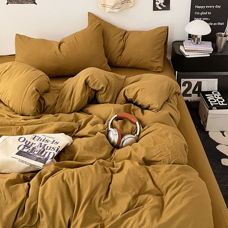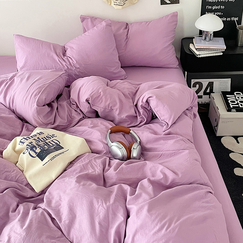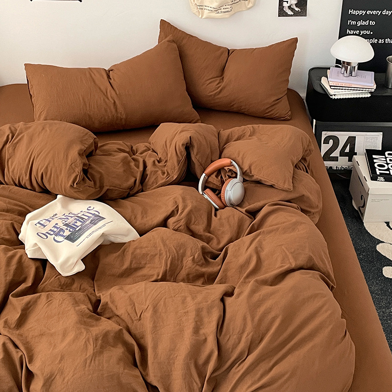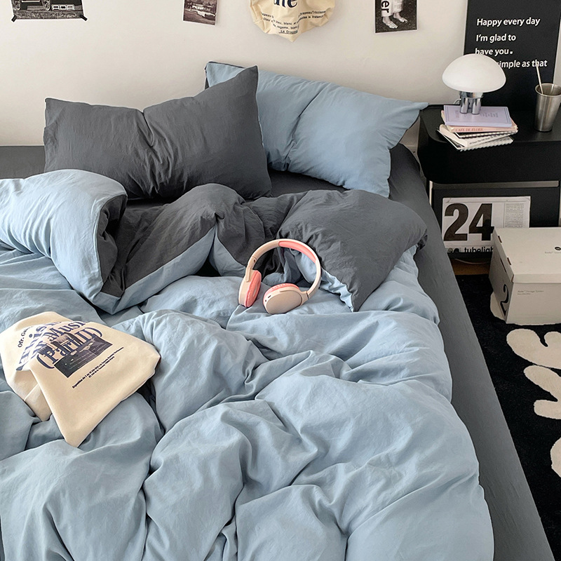 日式无印水洗棉四件套裸睡良品床单被套学生宿舍床上三件套床笠款
