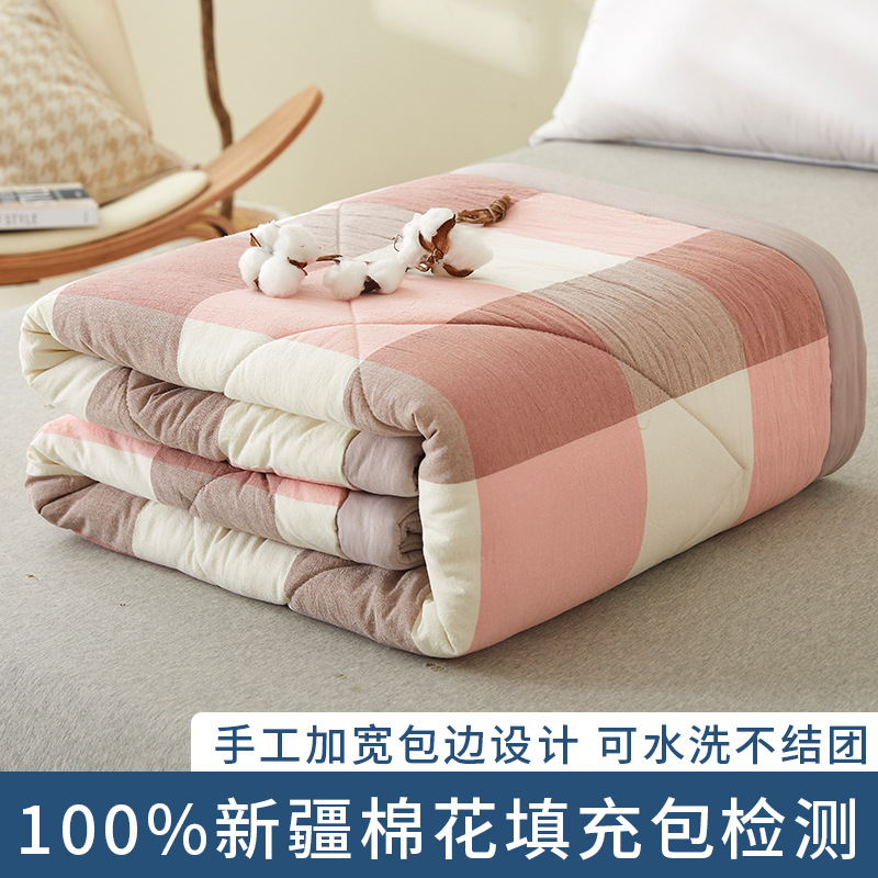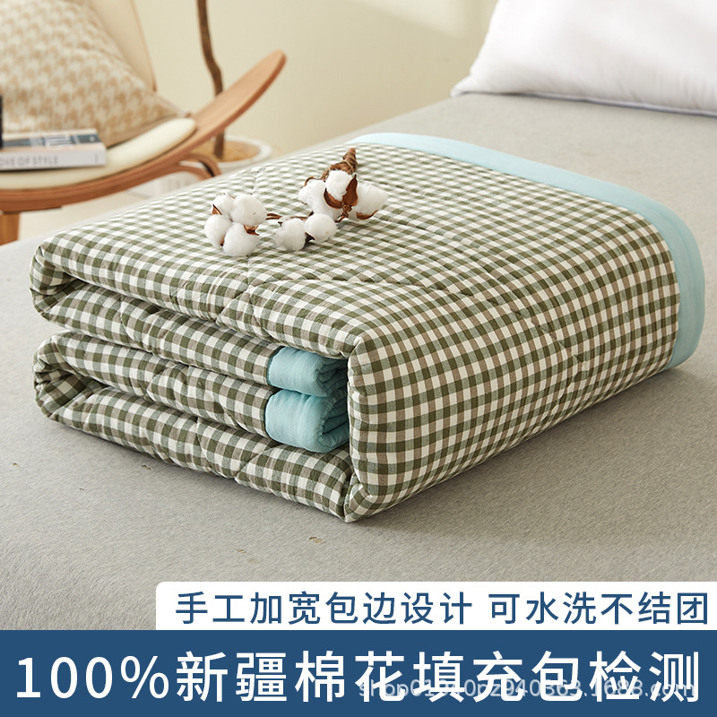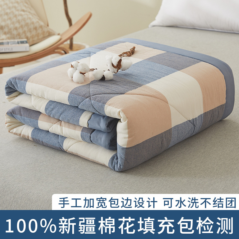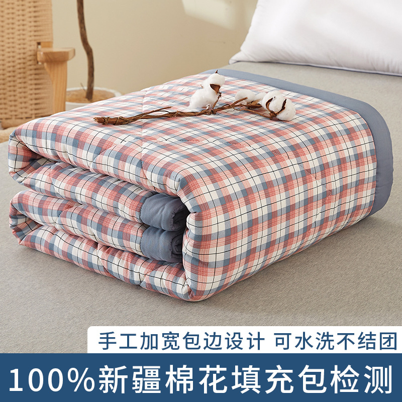 100%新疆纯棉花宽边日式无印款水洗棉空调被夏季可机洗双人夏凉被