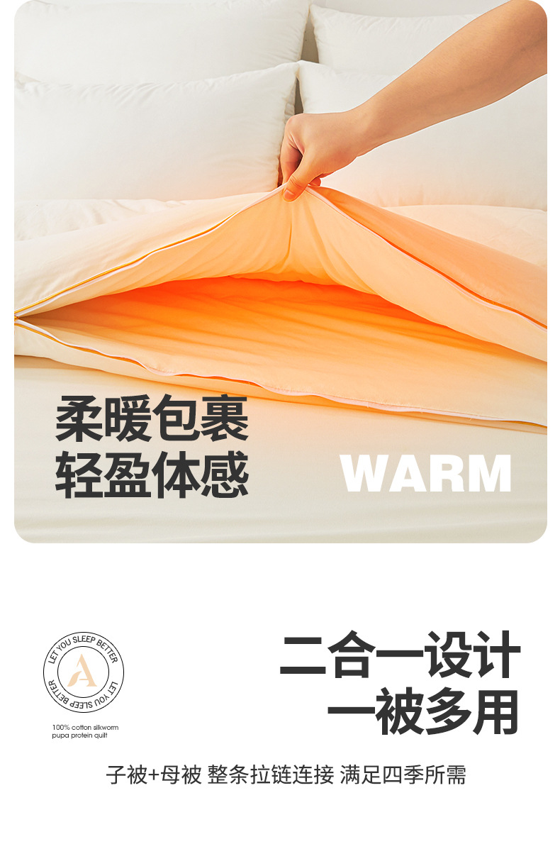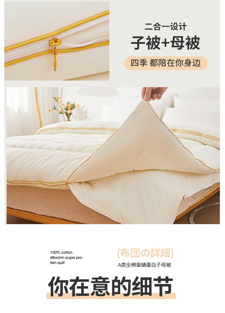 A类蚕丝被二合一拉链款子母被四季棉被加厚被子冬被被芯 空调夏被