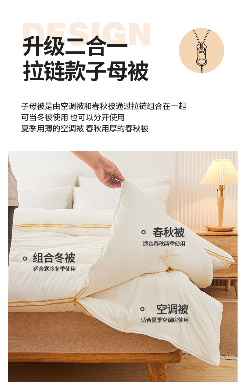 | 180x220cm 4斤+6斤拉链款子母被 | USD $39.01 | 57889 bed available |